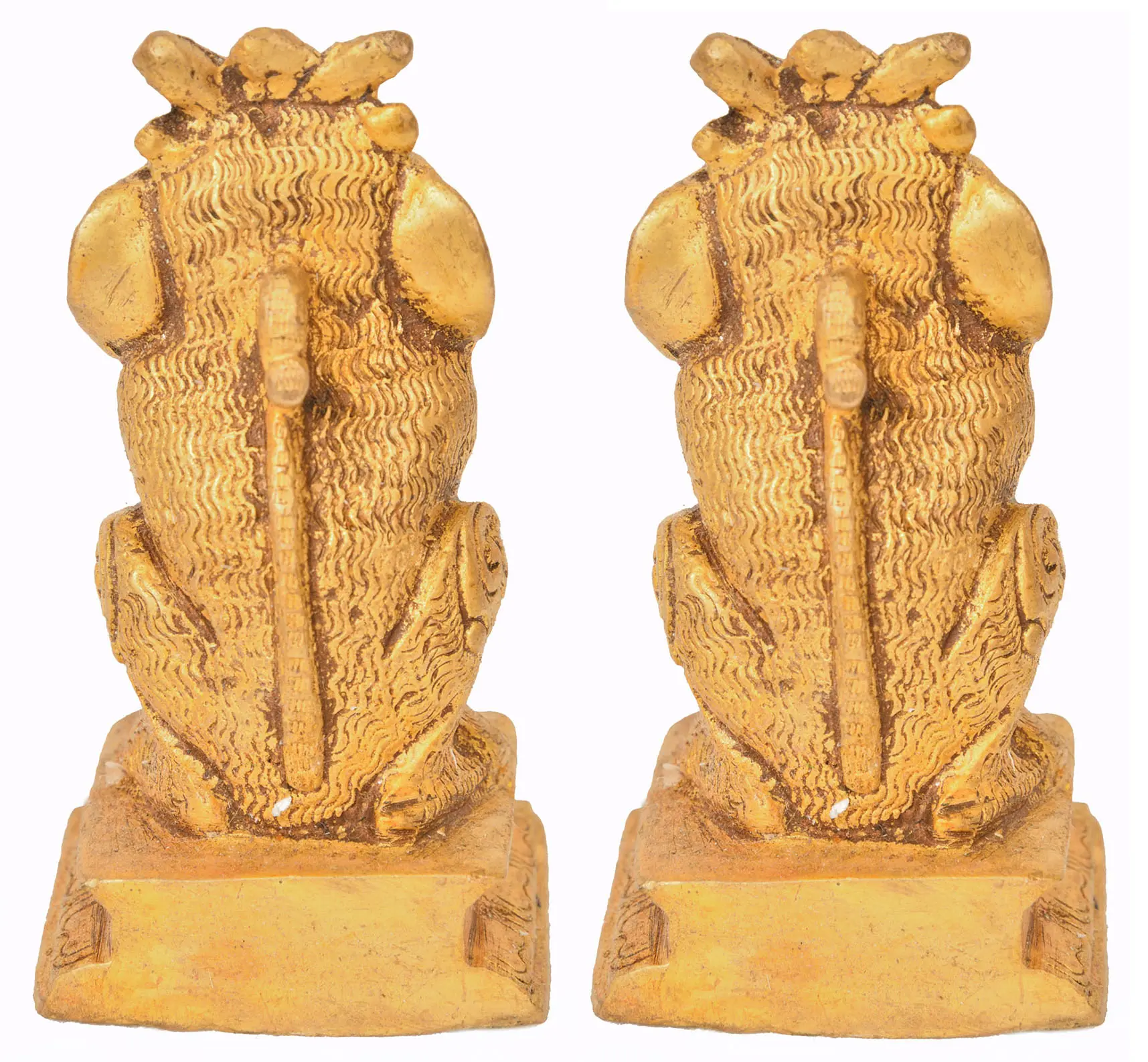 This pair of Yali, revered as temple guardians, showcases exquisite craftsmanship in brass. Their elegant and regal presence is enhanced by their distinct Double Chola color, which accentuates their intricate detailing and striking features. These mythical creatures, often seen at the entrances of temples, possess the body of a lion with the head of an elephant, symbolizing strength and wisdom. As protectors of sacred spaces, these Yali exude a sense of authority and grace. Their captivating appearance not only adds to the aesthetic charm of any setting but also imparts a sense of security and reverence. Displaying this brass pair brings an aura of tradition and spirituality to your space.
