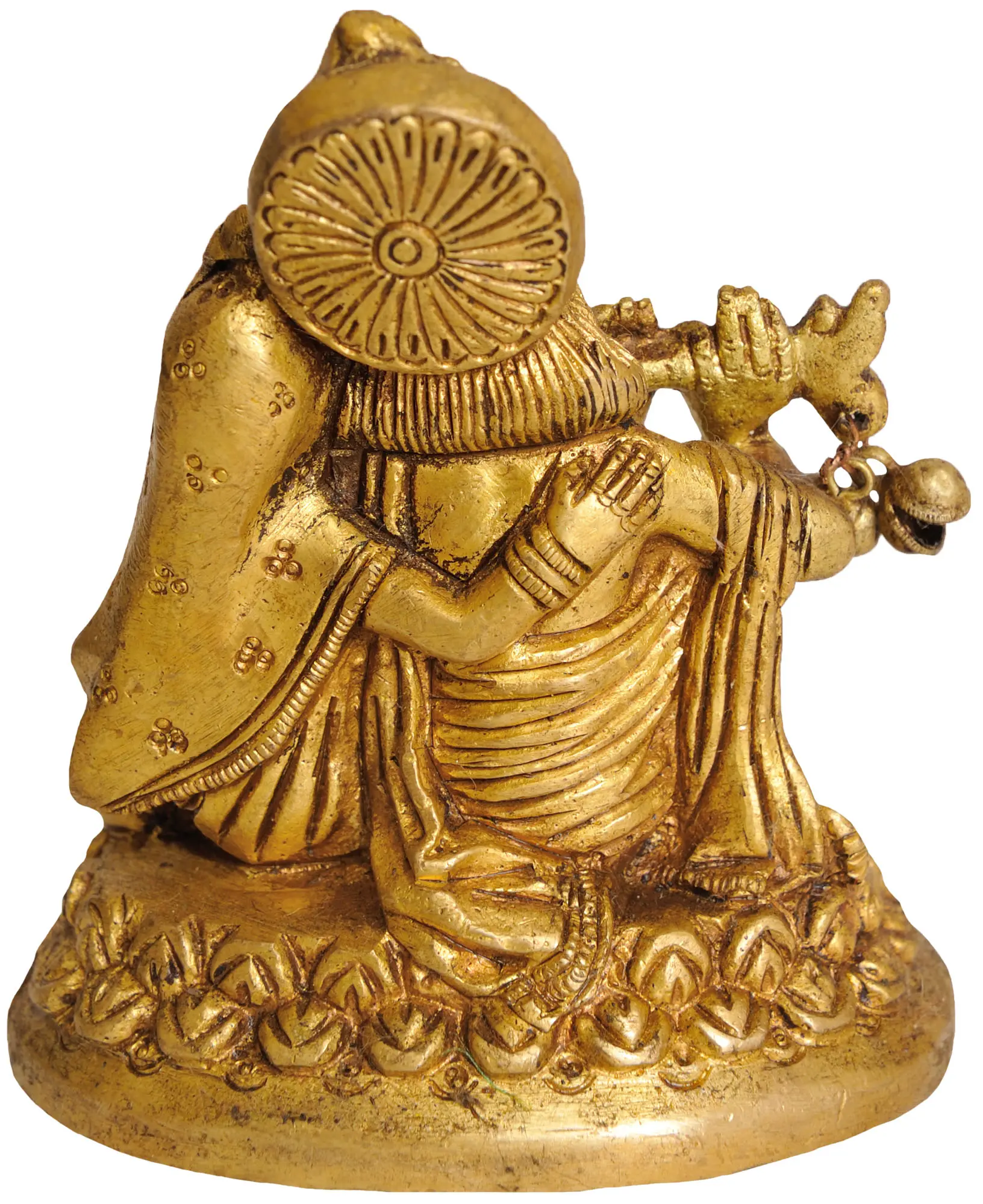 Immerse yourself in the divine love story of Radha and Krishna with this small brass statue. Radha and Krishna, the divine lovers, epitomise the unbreakable connection between the human soul and the divine. This exquisite sculpture showcases the endearing beauty of their love in a compact form. According to Hindu philosophy, the love between Radha and Krishna symbolises the ultimate spiritual connection between the individual soul and the divine. This brass sculpture is not just a work of art; it's a testament to the power of love and devotion, and it brings the essence of this profound philosophy into your home, filling your space with the energy of divine love.