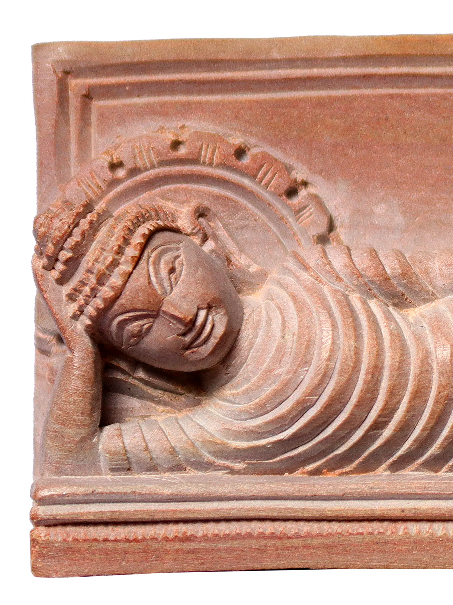 Parinirvana is the ultimate liberation of Lord Buddha from the cycle of birth and death. is depicted through the serene and radiant form of the Buddha lying peacefully in the Mahaparinirvana pose, signifying his passing into final nirvana. It is a reminder of the impermanence of life and the imperishable nature of the enlightened soul brought to you in the riches of Pink stone.