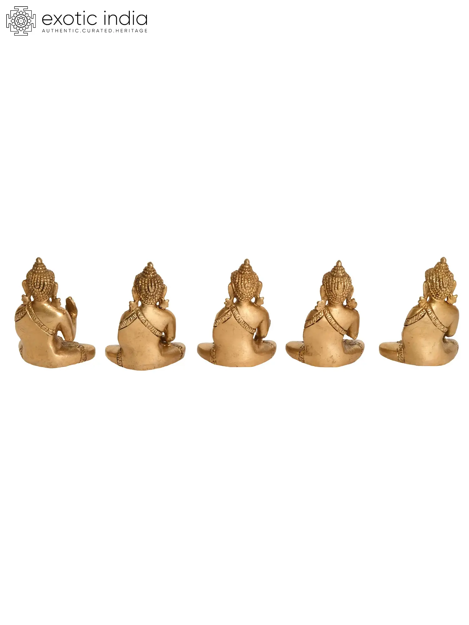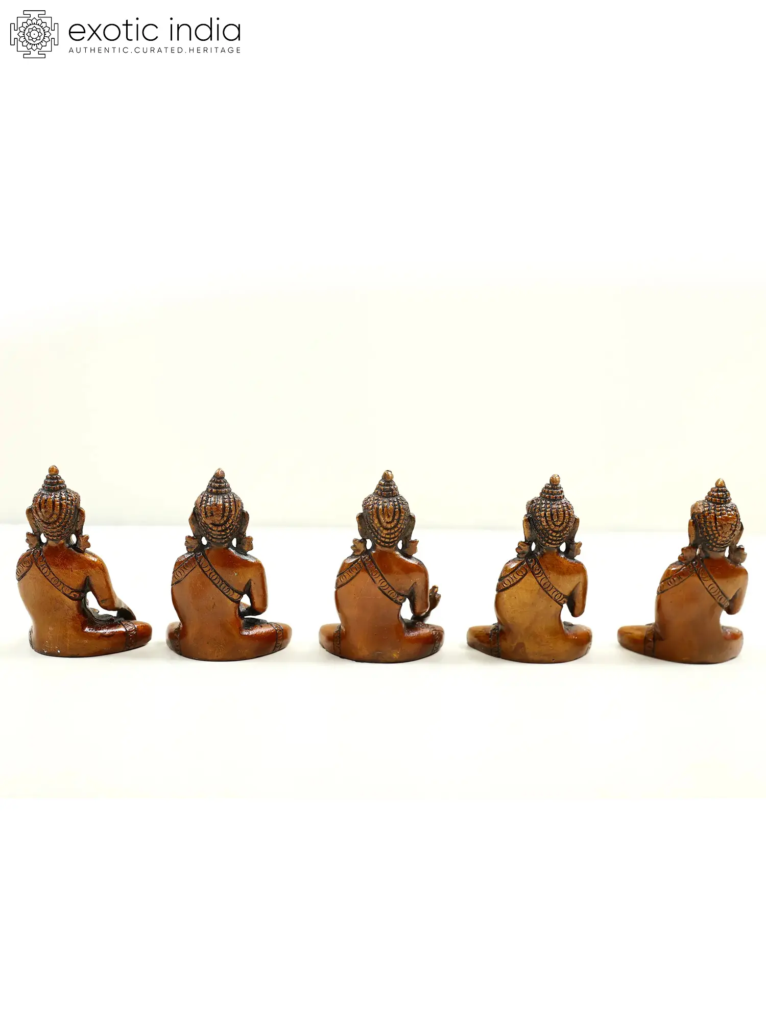 Enter the serene world of Tibetan Buddhism with our Set of Five Dhyani Buddhas, cast from fine Brass. This exquisite ensemble brings together the wisdom and compassion of the Dhyani Buddhas, also known as the Five Wisdom Buddhas, who guide seekers on the path to enlightenment. Meticulously crafted in brass, these sculptures serve as tangible embodiments of inner peace, transformation, and spiritual awakening.