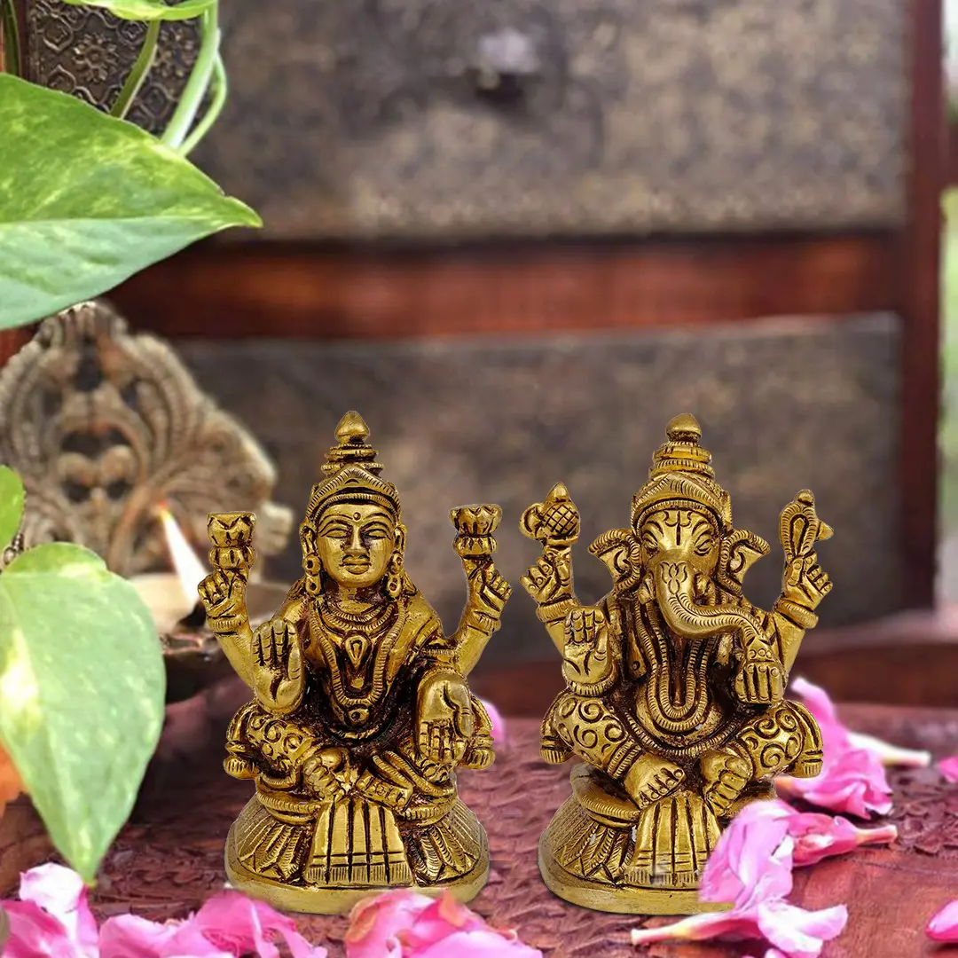 One bestows auspicious beginnings and the other blesses her devotees with eternal fortune- Sri Ganesha and Devi Lakshmi in these brass statues are the sources of supreme fortuitousness in life. Adorned with their characteristic attributes- Chaturbhuja (four-armed), ornaments, and lotus thrones, these forms of Ganesha and Lakshmi are idols to be established in a Puja ghar to attract sacredness in life.