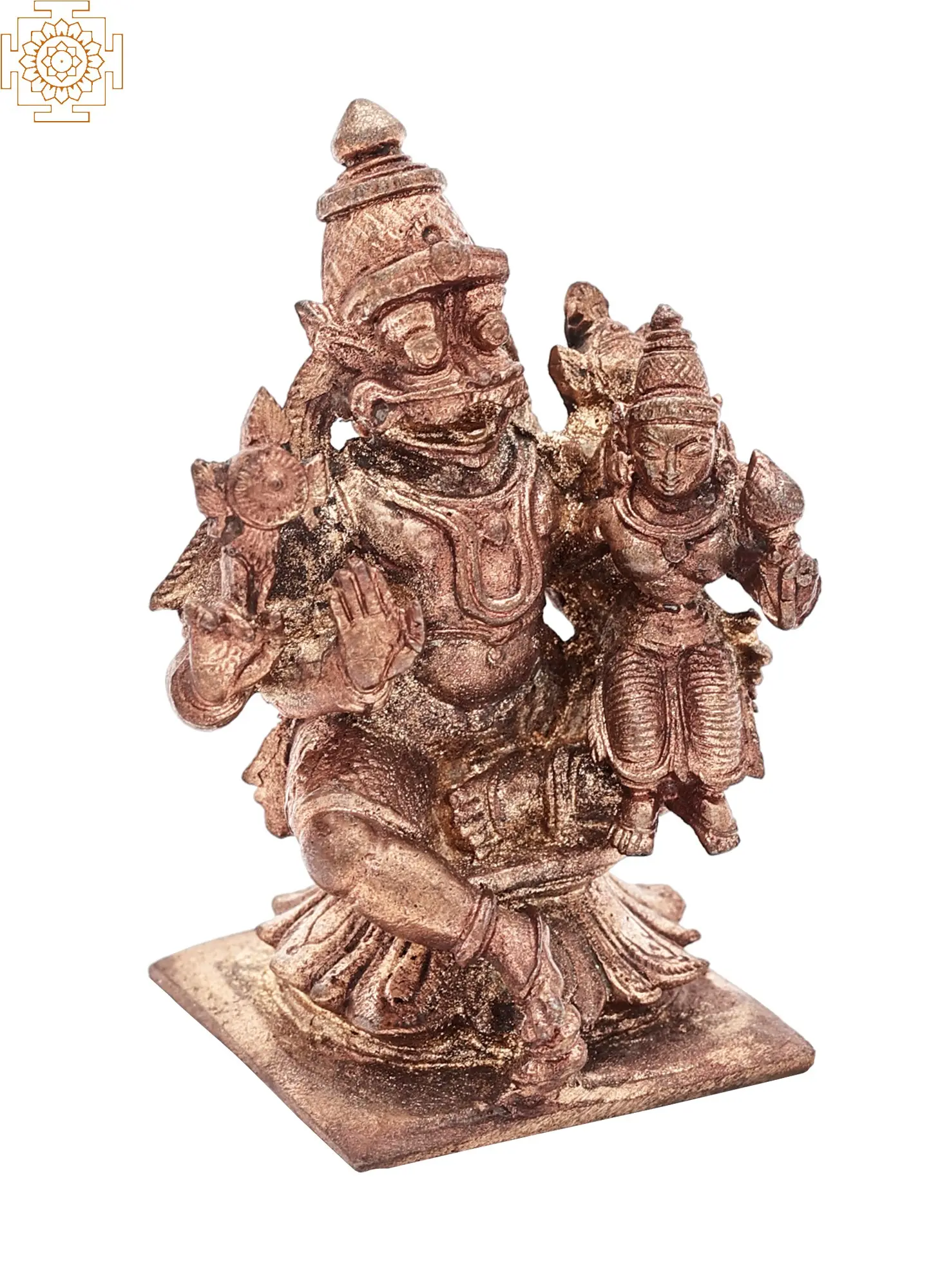 4" Small Lord Narasimha Seated with Devi Lakshmi | Copper Statue