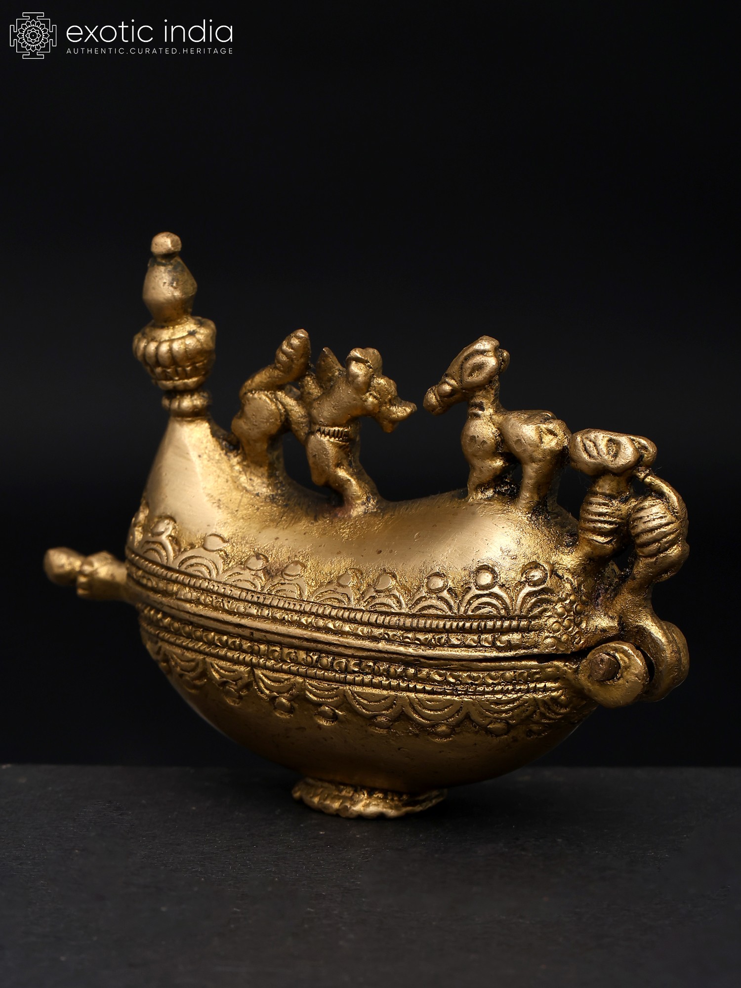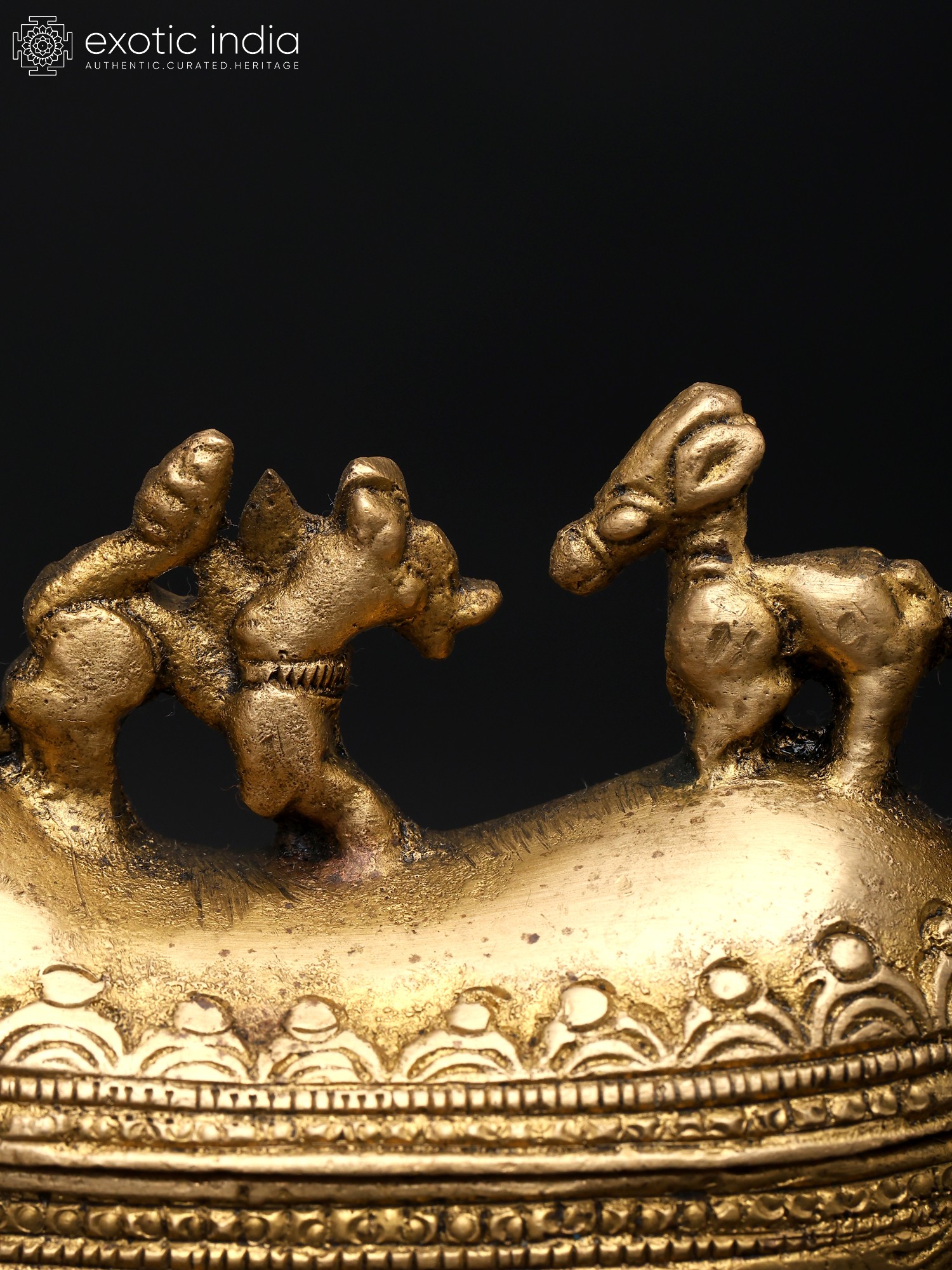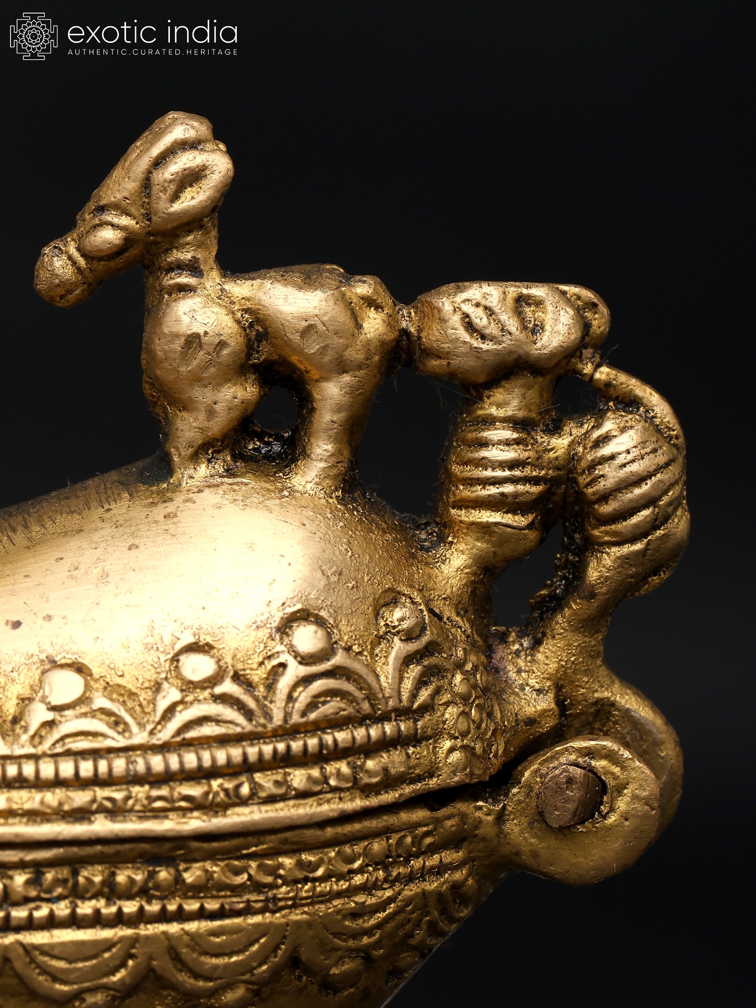 4" Small Tortoise Conch Stand with Lotus Carvings | Brass Item