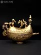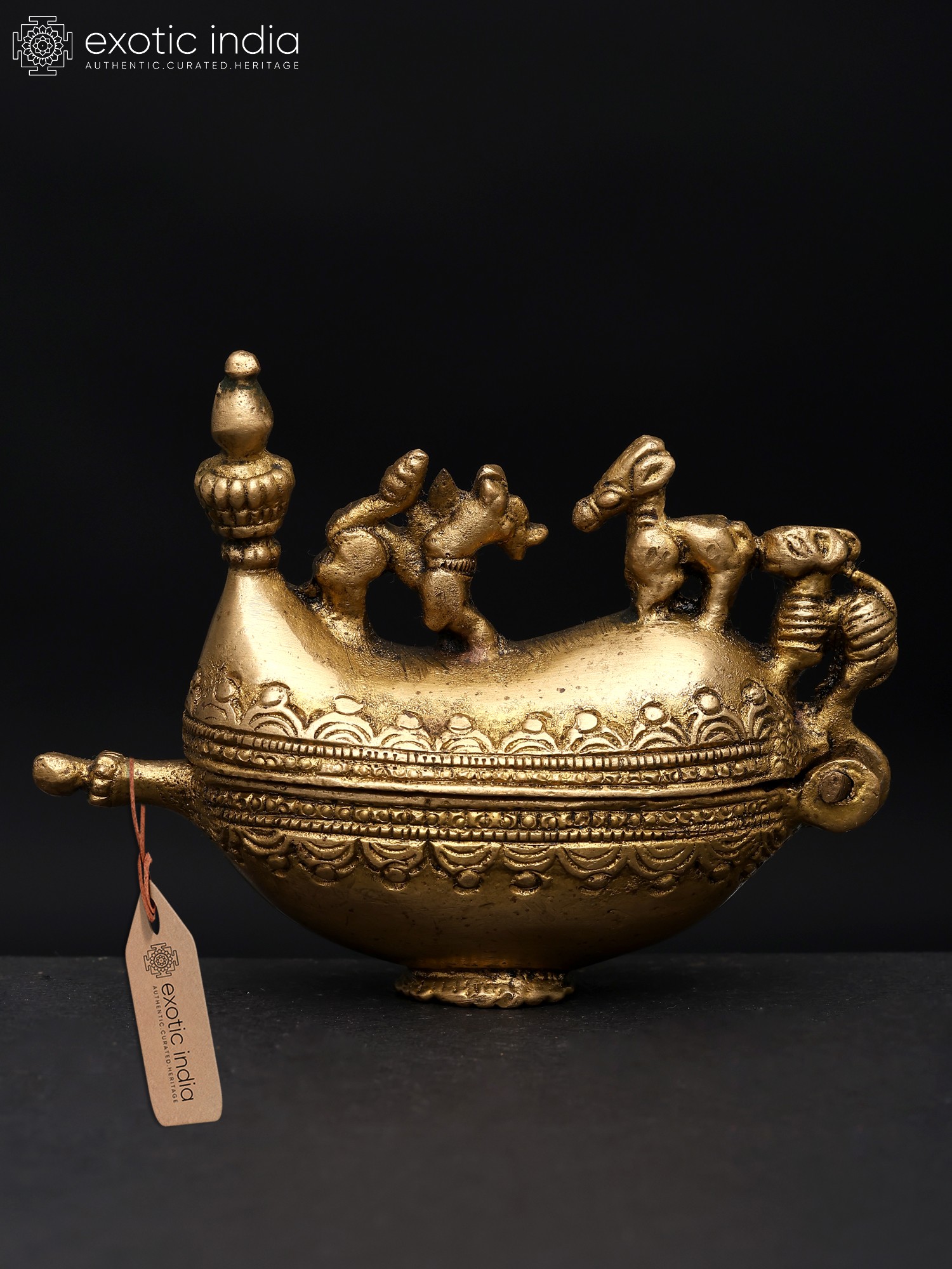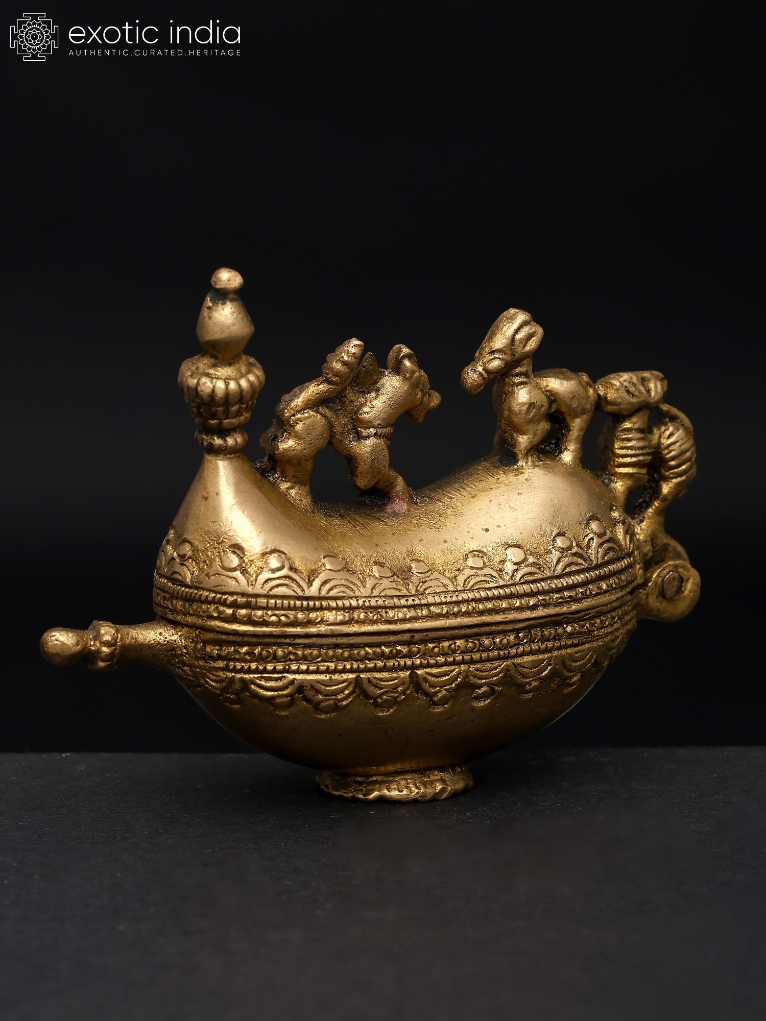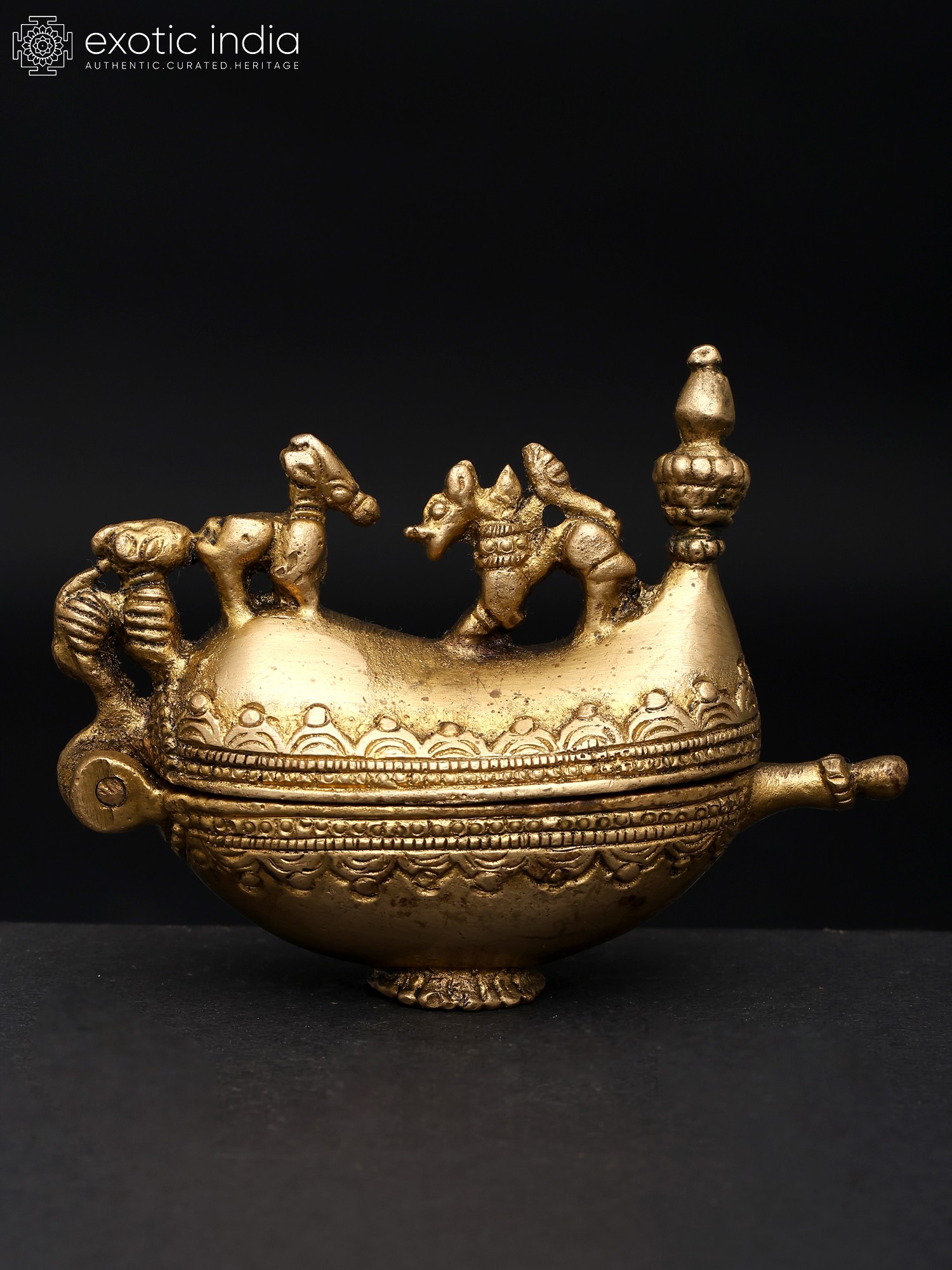 4" Small Tortoise Conch Stand with Lotus Carvings | Brass Item