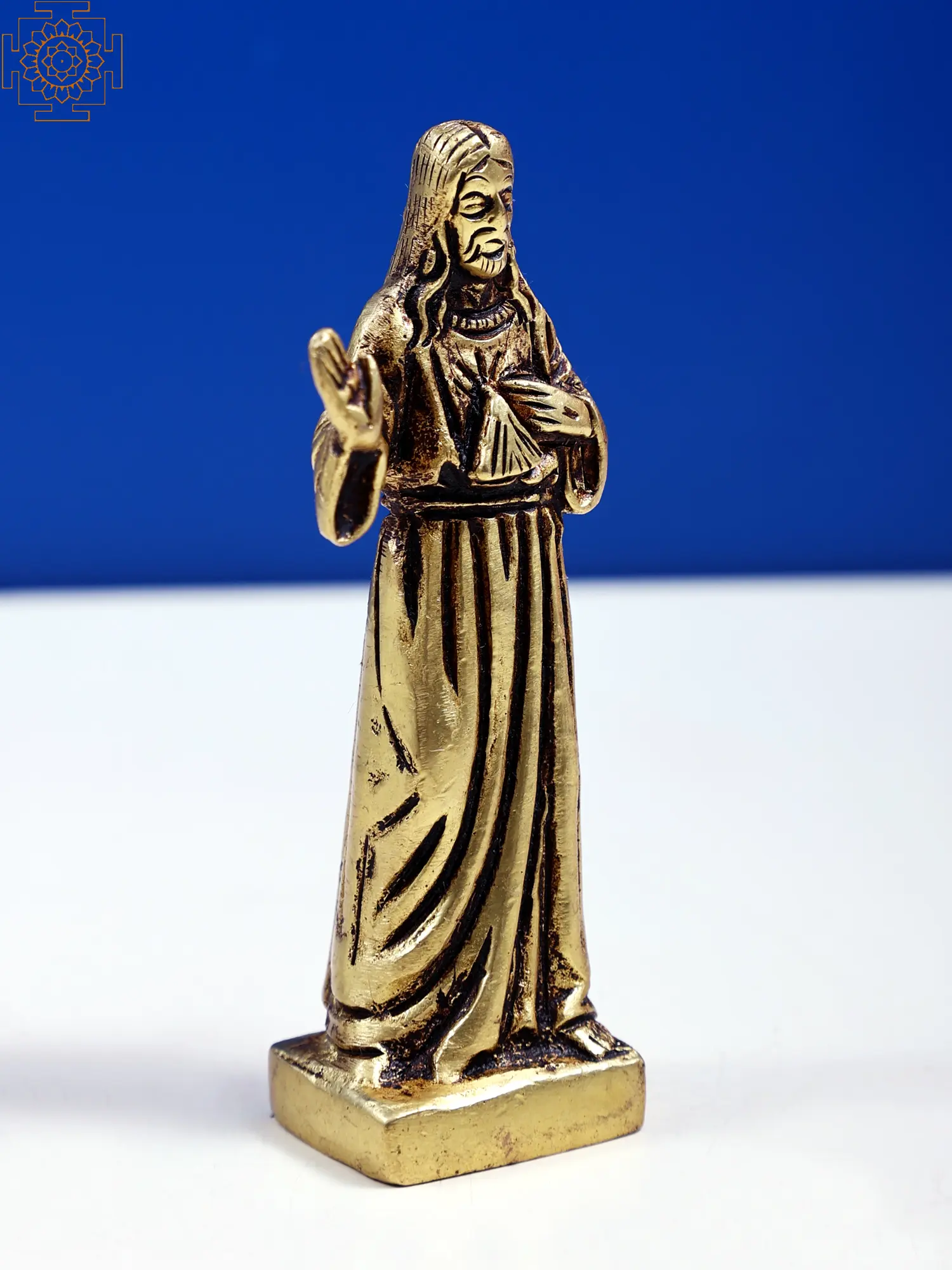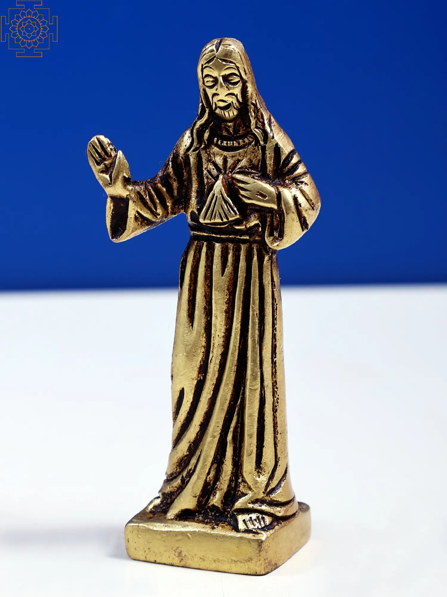 3" Small Brass Blessing Jesus Christ Statue | Handmade