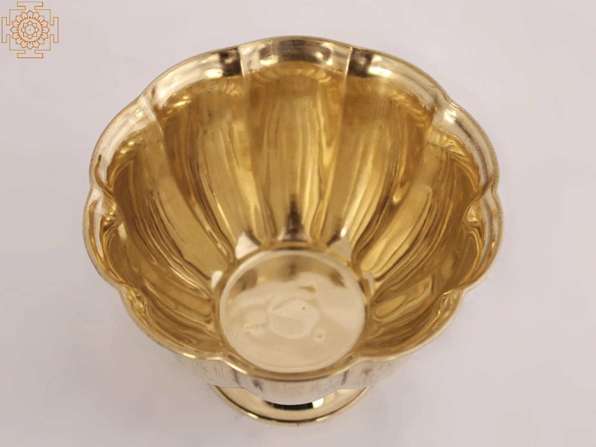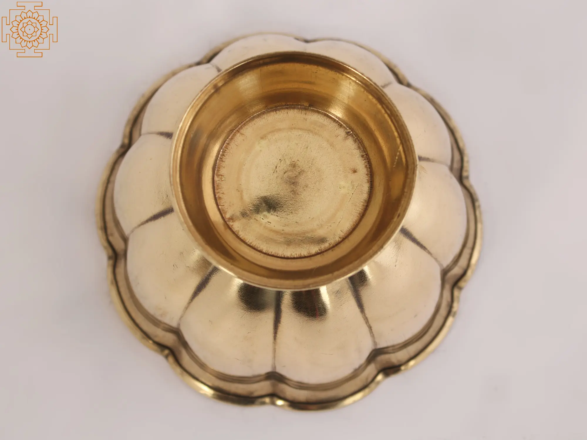 This Brass Chandan Pela Bowl is an essential accessory in various Hindu ceremonies and rituals. It is commonly used to apply Chandan paste on the forehead, wrists, or other parts of the body as a form of purification, blessings, and devotion. This versatile bowl, with its design of floral petals, is not limited to religious practices alone - it can also be used for other purposes, such as holding small sacred objects, offering flowers, or displaying as a decorative piece to add a touch of traditional charm to your living space. Its presence invites a sense of sacredness, serenity, and connection with the divine.