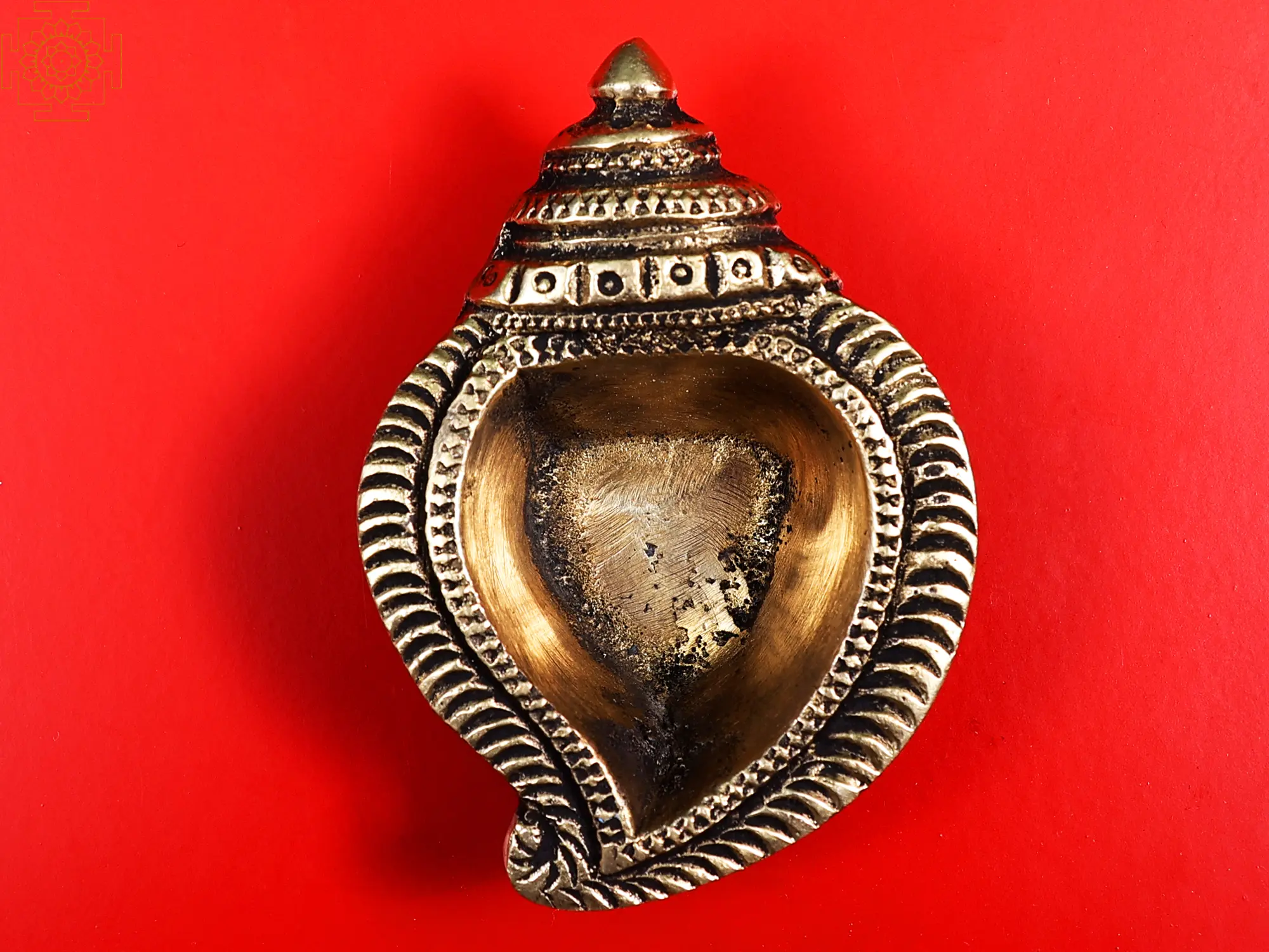 In Hindu tradition, the Sankha or conch signifies the power of music in bringing fresh life or new beginnings. This little lamp in the shape of a conch pays homage to the conch's nobility and sacred voice. This lamp has a single wick and an oil bowl. It also includes a flat base. It is a lovely collection as well as a potent ritual tool with the solemnity of a conch.