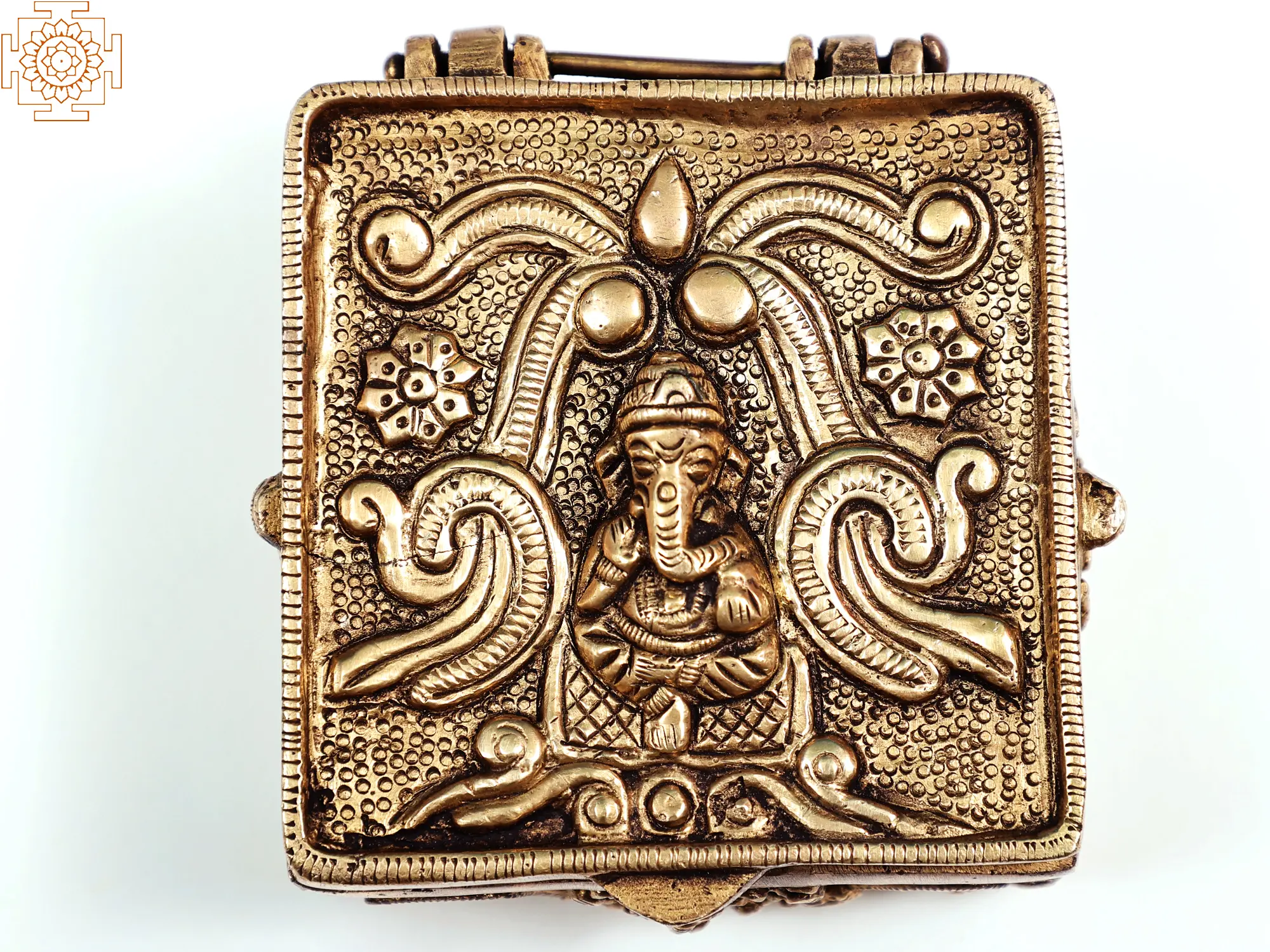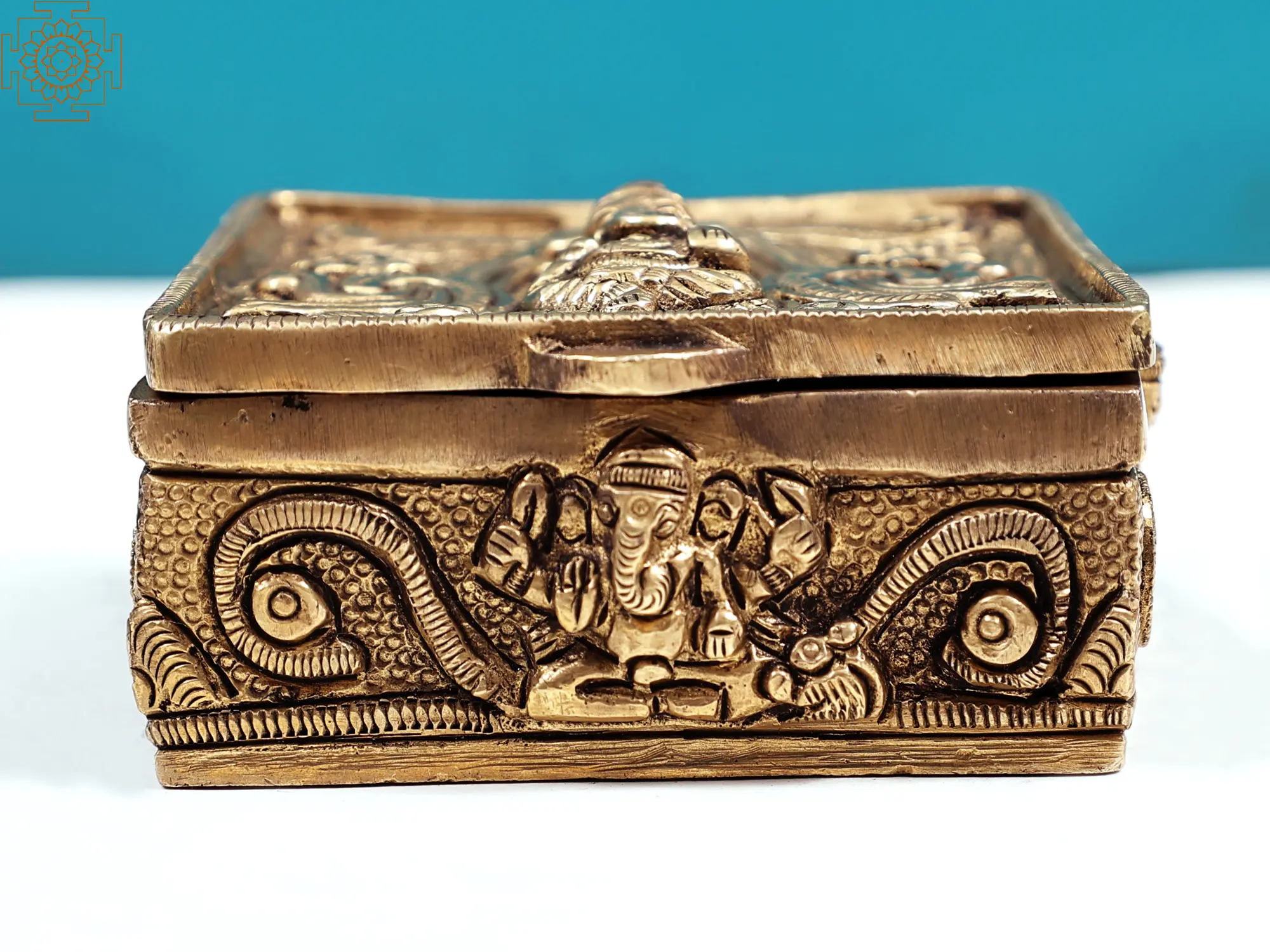 This brass box is not just a storage solution; it's a sanctum for your cherished items. Whether it holds your trinkets, sacred talismans, or tiny mementos, the box infuses each piece with Ganesha's blessings. Each time you open this Small Brass Ganesha Carved Box, you're greeted by Lord Ganesha's benevolent gaze, a reminder that obstacles can be overcome, and blessings can be embraced.