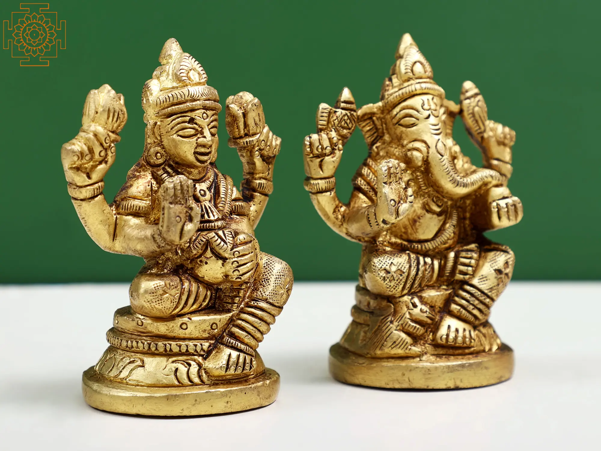 Each statue is a testament to the skill of traditional artisans, meticulously handcrafted from high-quality brass. The intricate detailing, from the delicate folds of their garments to the expressive features of their faces, showcases the dedication and artistry involved in its creation. Brass, known for its durability and lustrous sheen, not only enhances the aesthetic appeal of the deities but is also believed to possess purifying qualities, further enhancing the spiritual significance of the piece. The warm, golden hue of the brass imbues the statues with a timeless elegance, making them a treasured addition to any altar, shelf, or decorative setting. This compact size makes it perfect for smaller spaces, yet it commands a powerful presence.