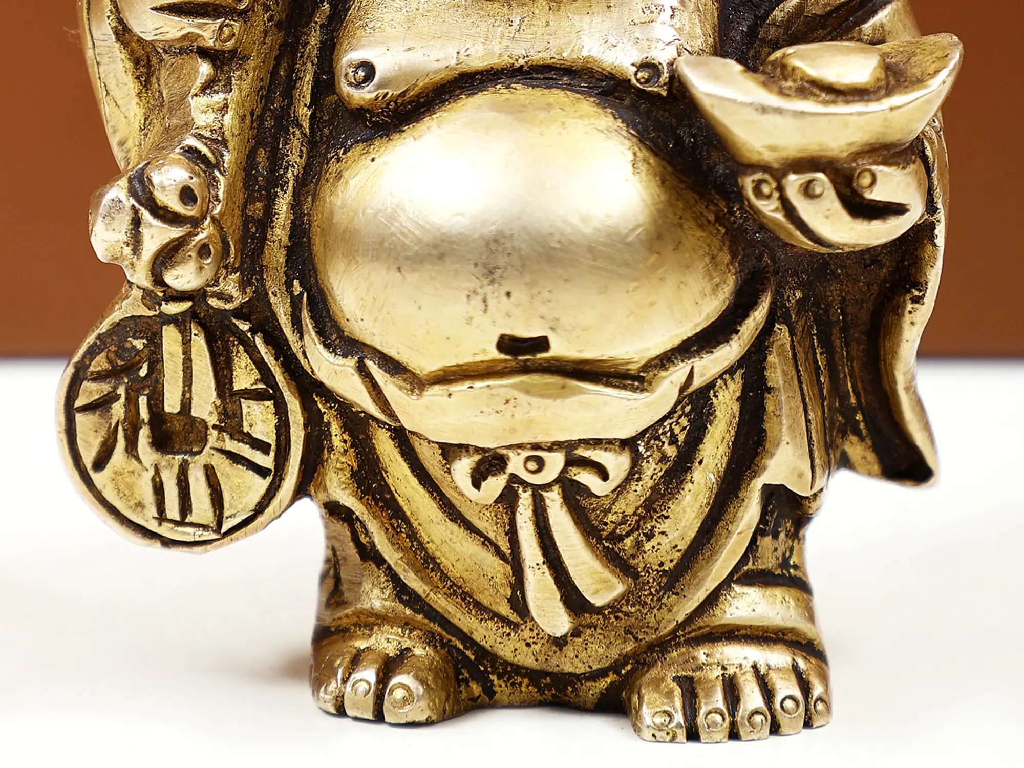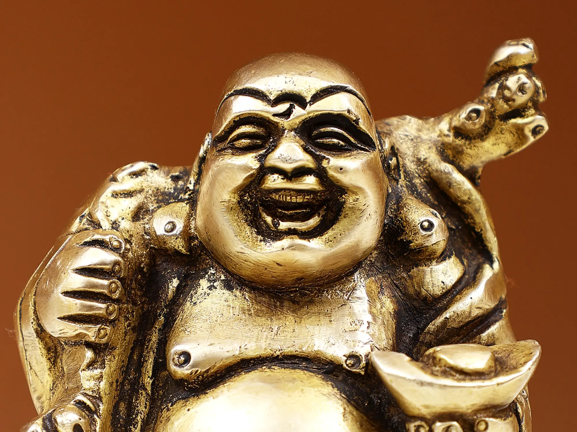 There is more to the adorable laughing Buddha than meets the eye. His face bursts forth with the mirth of enlightenment. His rucksack contains the bare essentials of a Bodhisattva, which is not much, but He is supremely content. A string of prayer beads graces His ample neck.