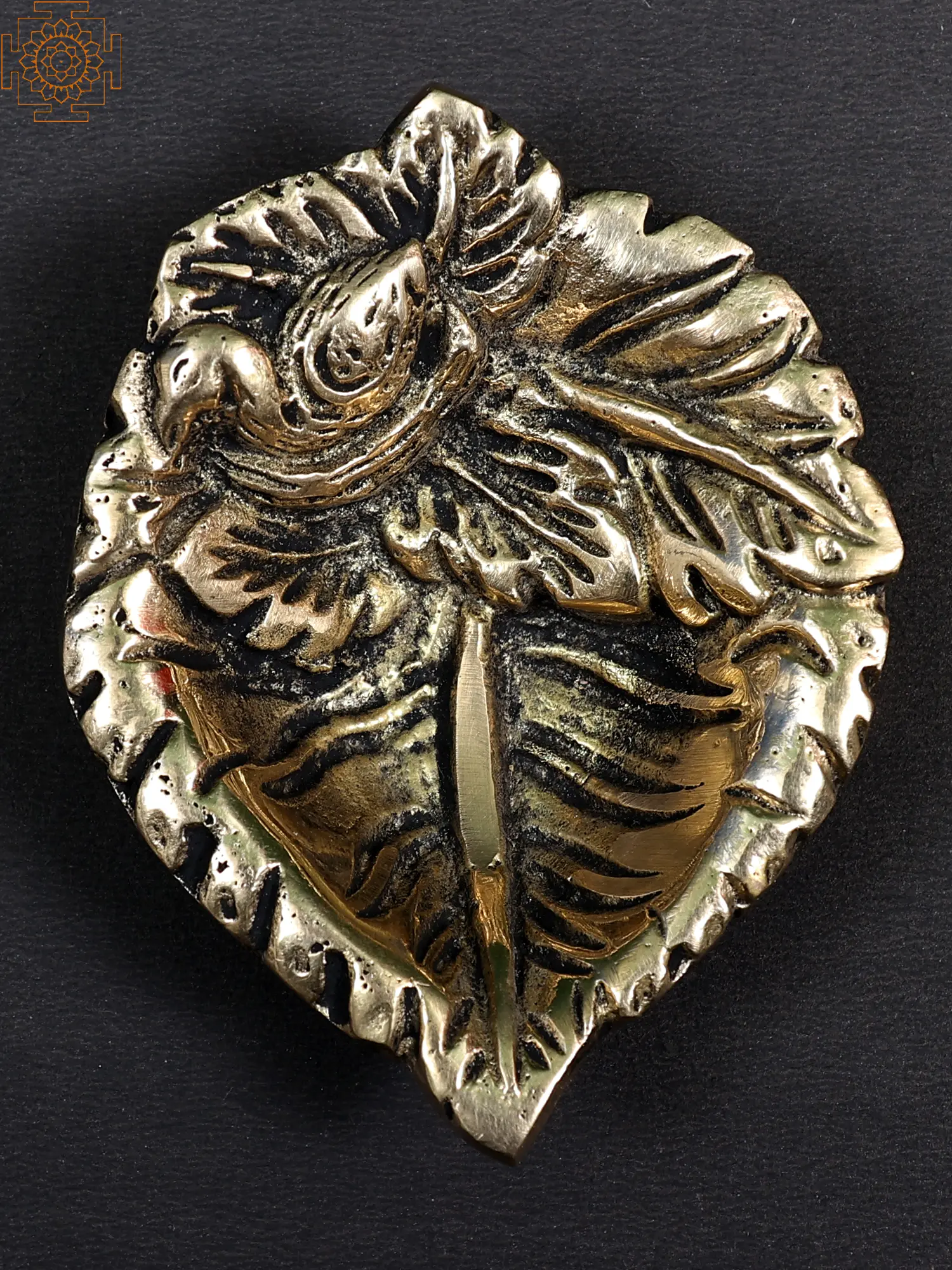 In India, ritual artifacts are frequently embellished with natural components to enhance their beauty while also connecting the significance of those elements to the lamp's meaningful existence. This brass lamp in the shape of a clump of leaves and a cuckoo sitting on its nest is the perfect example of incorporating natural features to enhance the lamp's attractiveness. This is a one-of-a-kind item that qualifies as a collectible as well as a highly-decorated ritual object that gives optimism to a location.