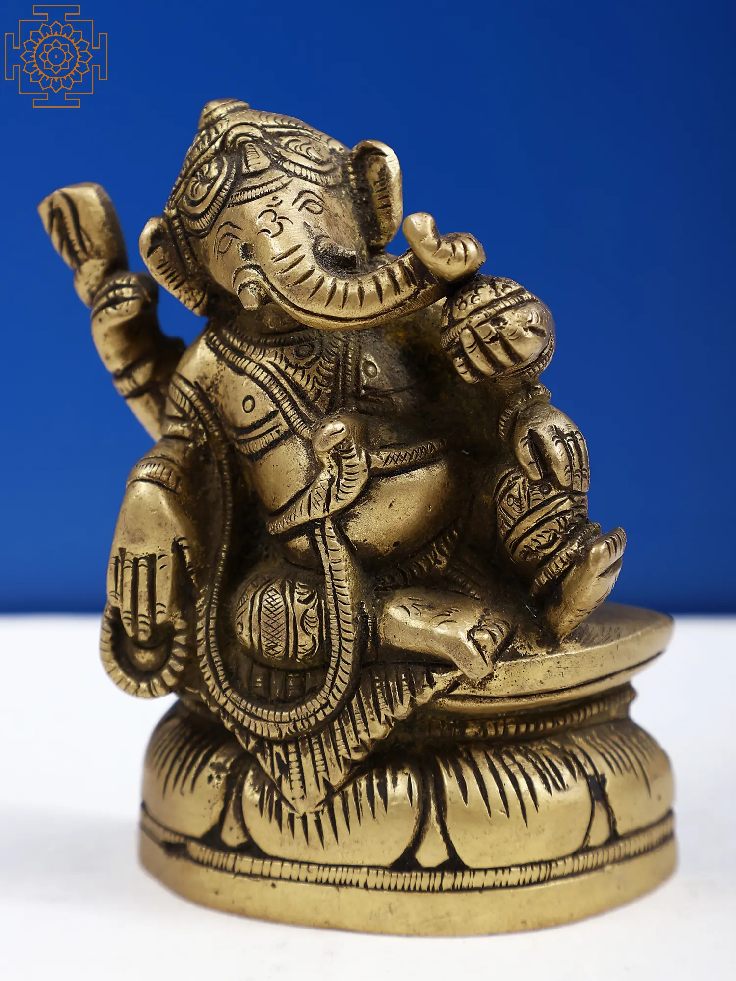 2" Small Superfine Sitting Lord Ganesha | Brass Statue