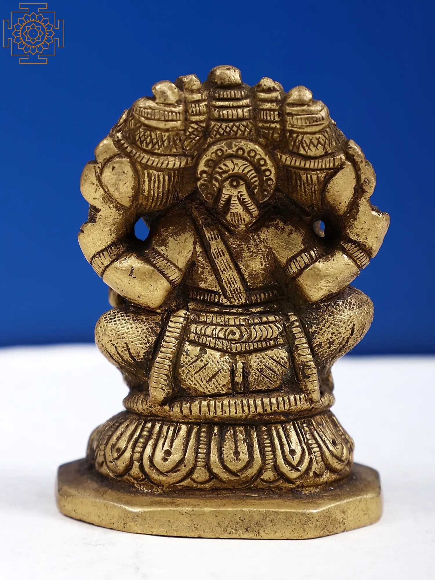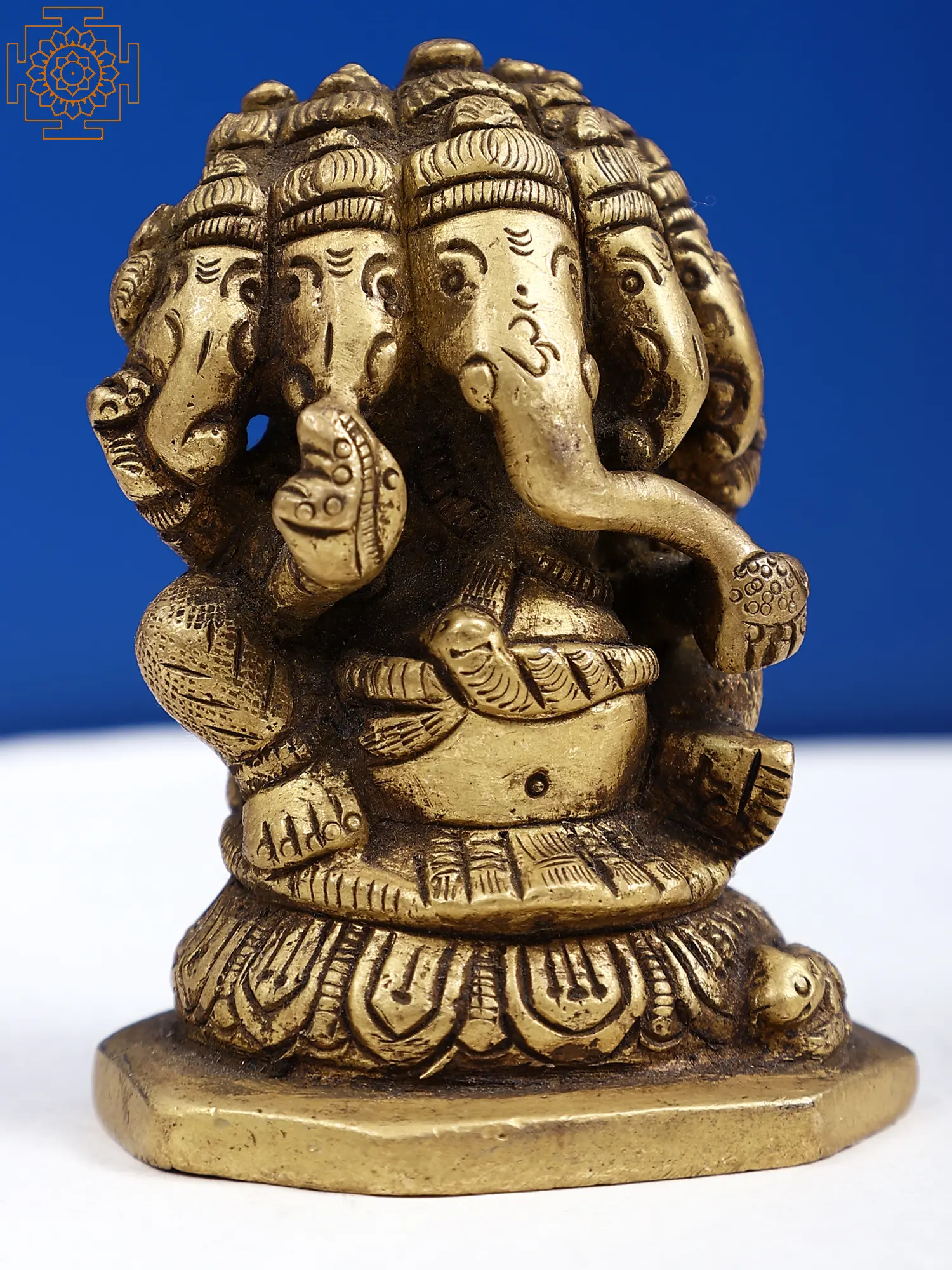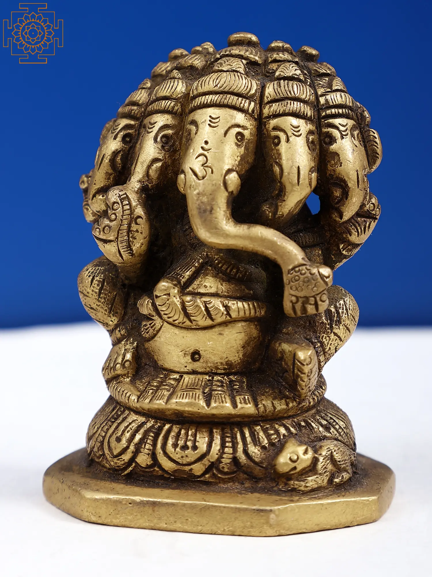 Panchmukhi Lord Ganesha, also known as Lord Ganesha with five faces, is a unique and revered form of the beloved Hindu deity. In this depiction, Lord Ganesha is depicted with five heads sitting on pedestal, symbolising his wisdom, intellect, and ability to conquer obstacles from all directions. Each face represents a different aspect of his divine nature, such as protection, knowledge, prosperity, and liberation, symbolising his multifaceted personality. Devotees who worship Panchmukhi Lord Ganesha are said to receive prosperity, wisdom, and the ability to overcome obstacles in life as a result of their devotion. This brass statue radiates positive energy and bestows blessings of success, wealth, and fulfilment, making it ideal for home décor, spiritual practices, or as a nice gift.