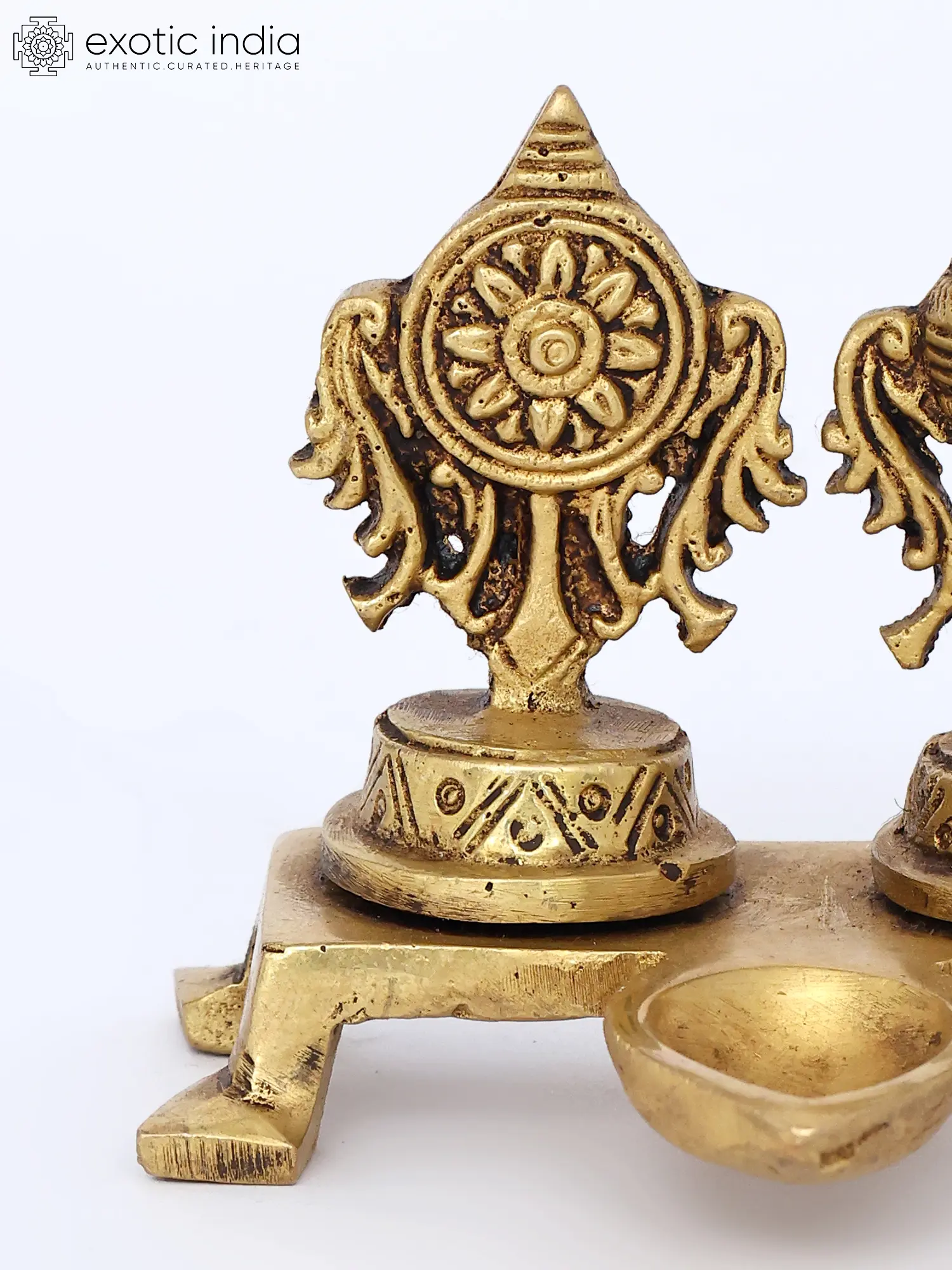 9" Superfine Chakra Wick Lamp (Vaishnava Symbol) in Brass | Handmade | Made in India