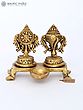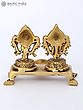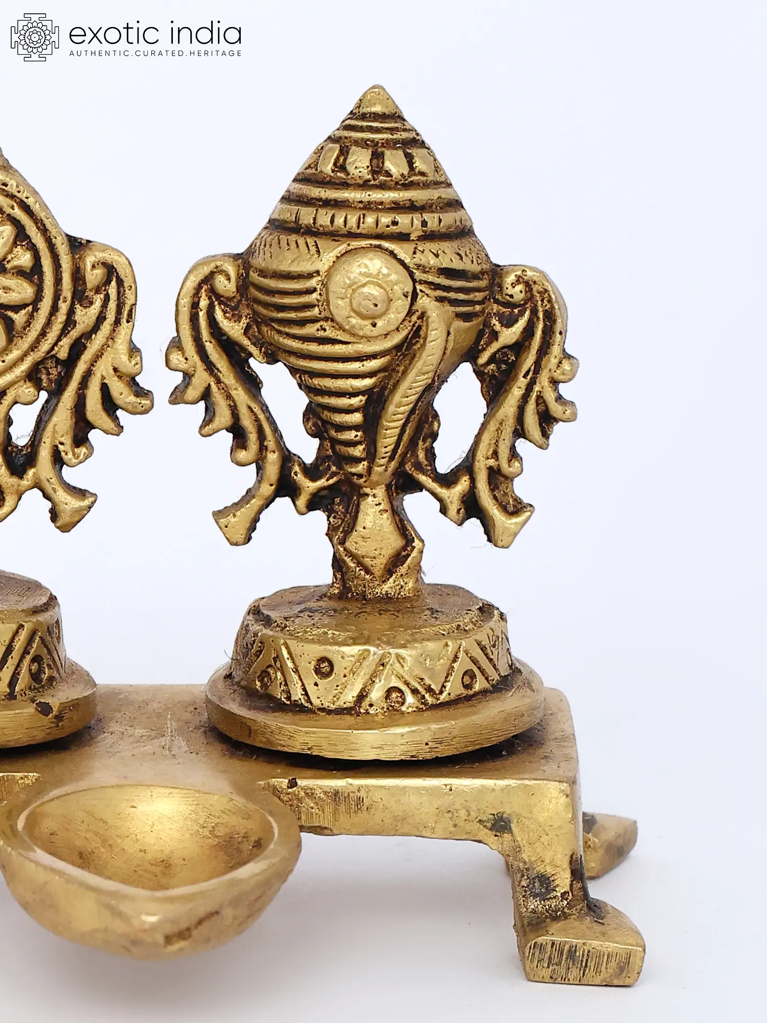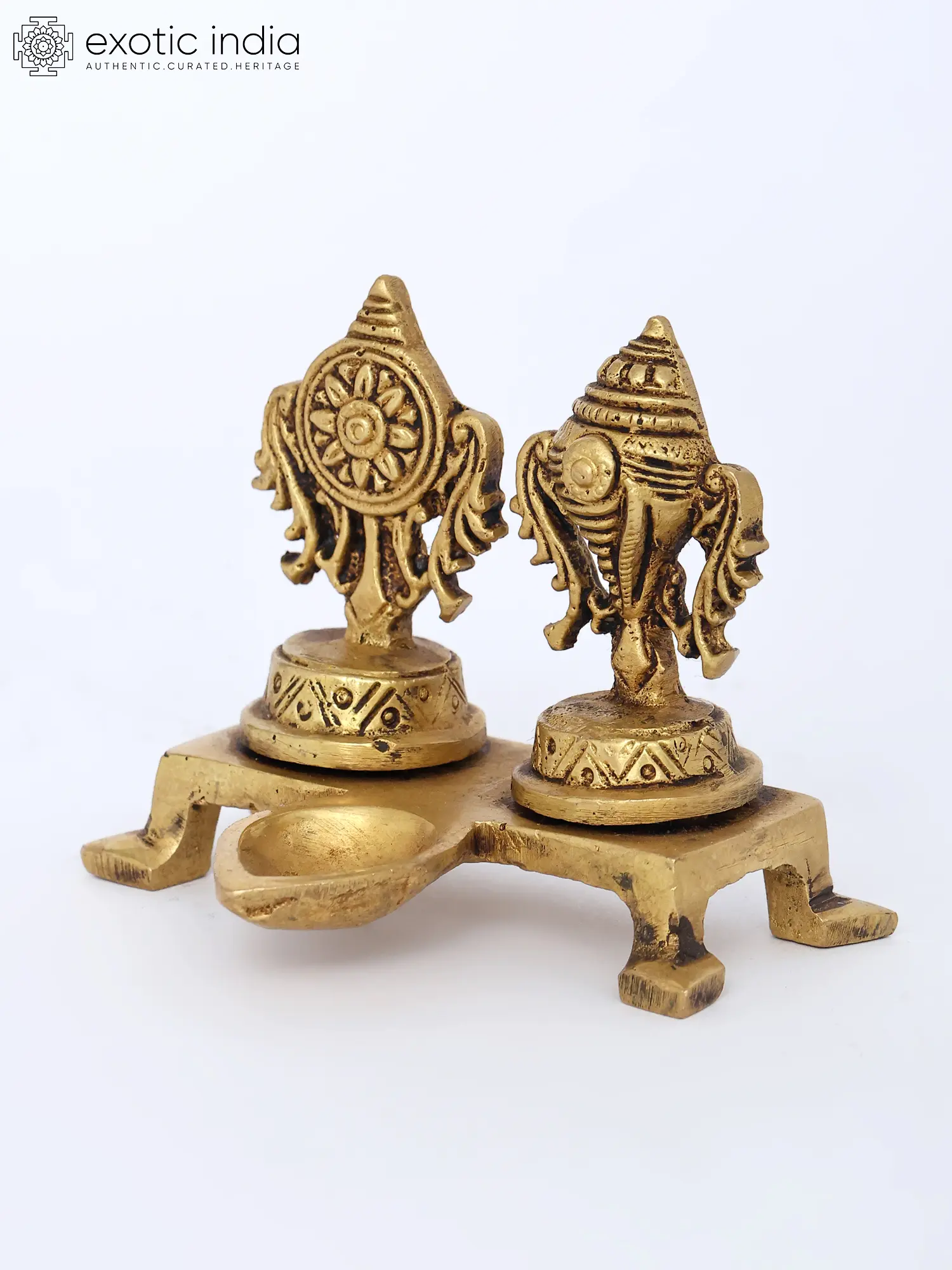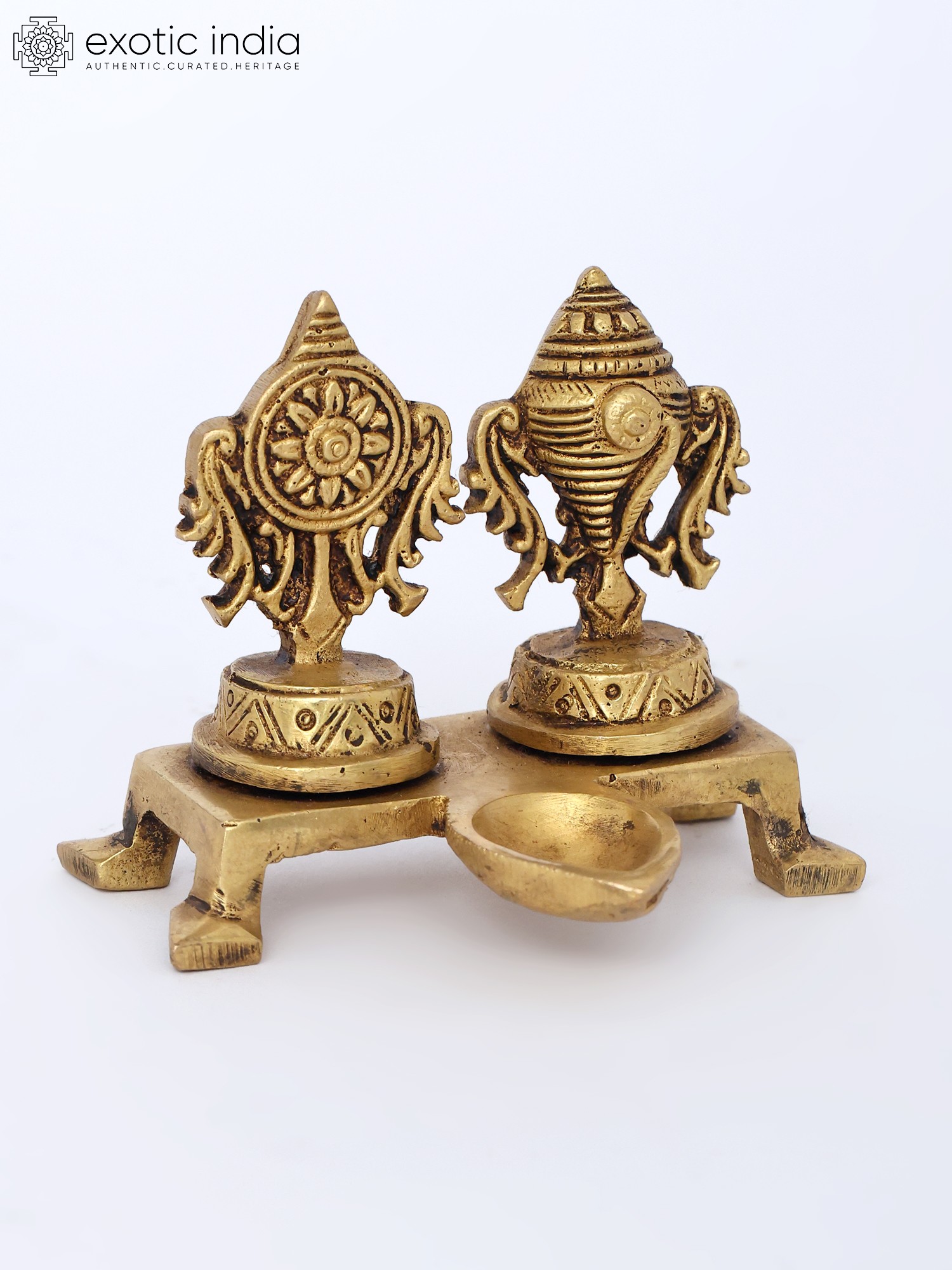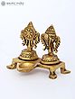 5" Brass Shankh and Chakra Oil Lamp Set | Handmade