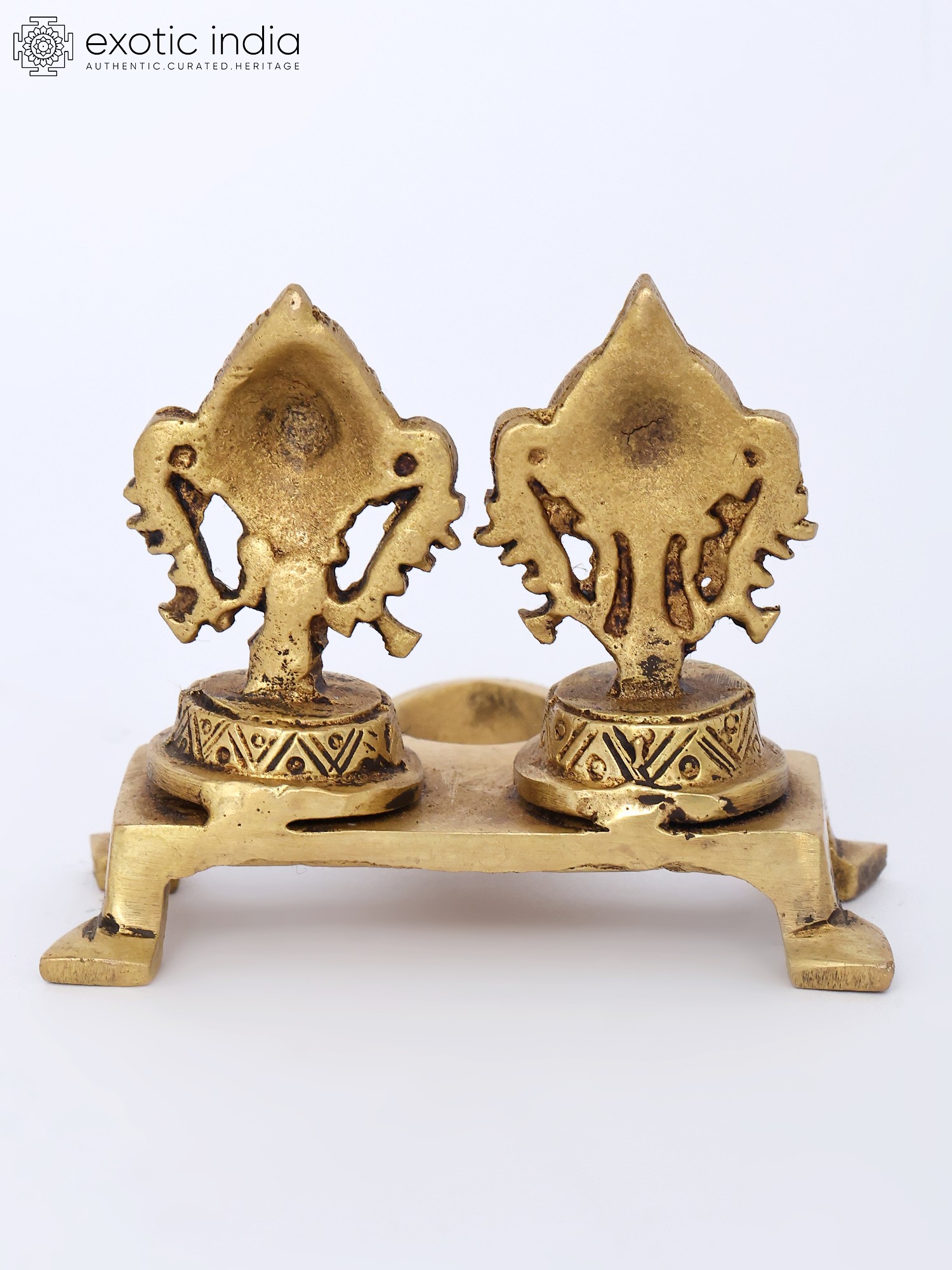 8" Pair of Brass Multi Wick Lamps with Conch and Chakra Motifs