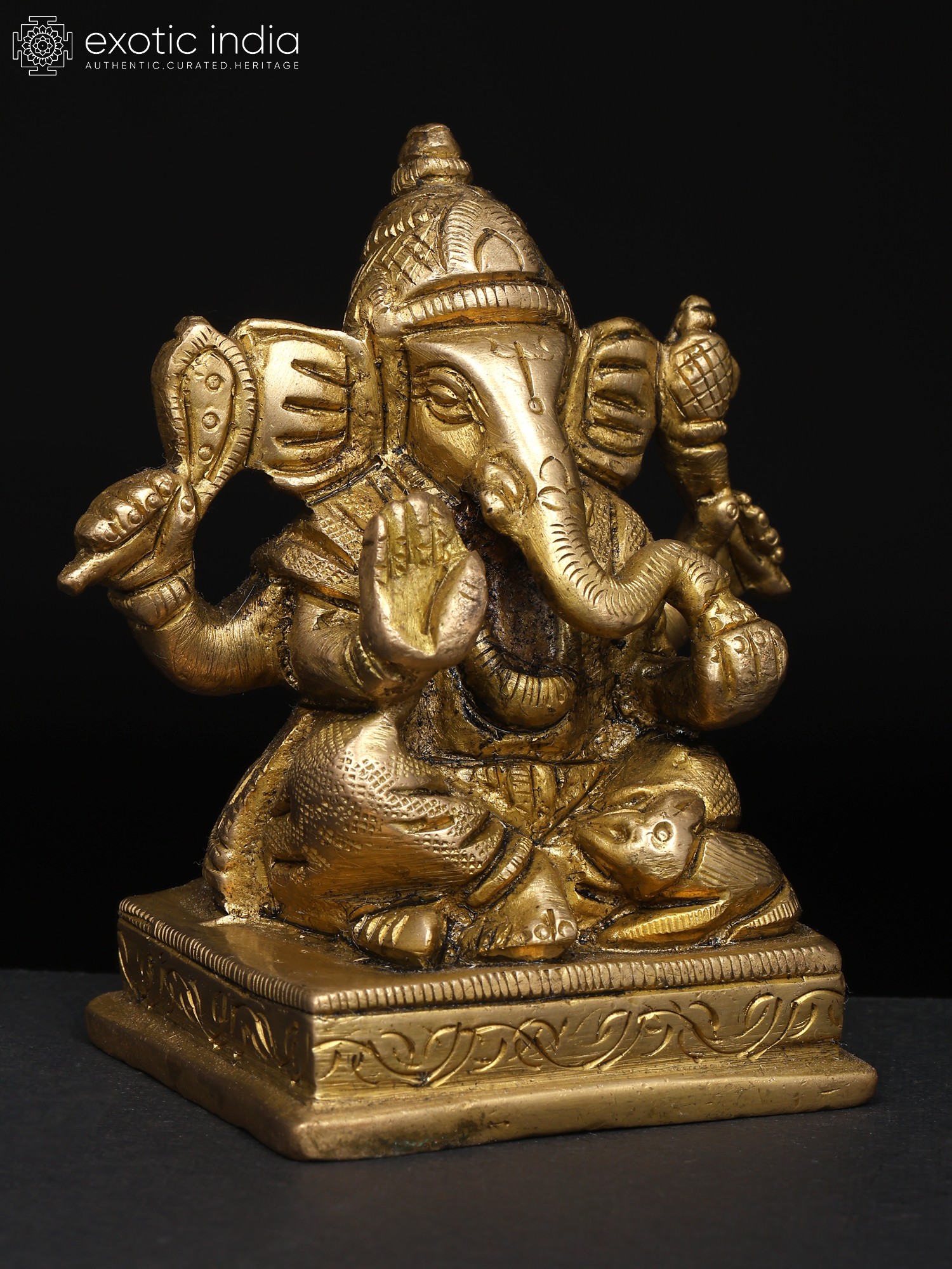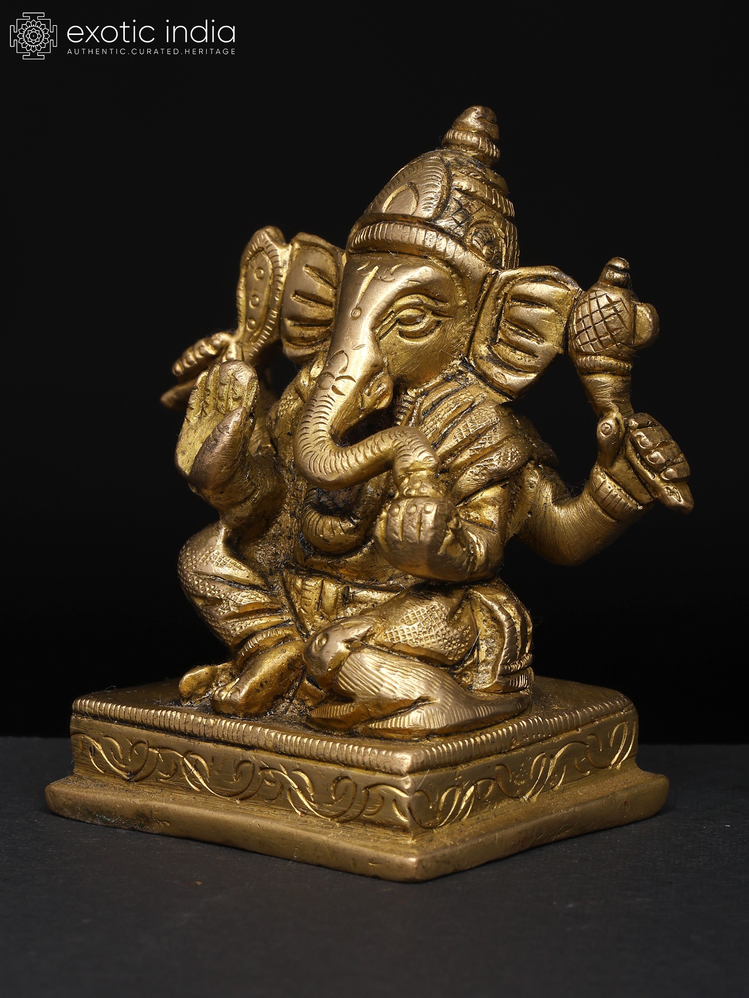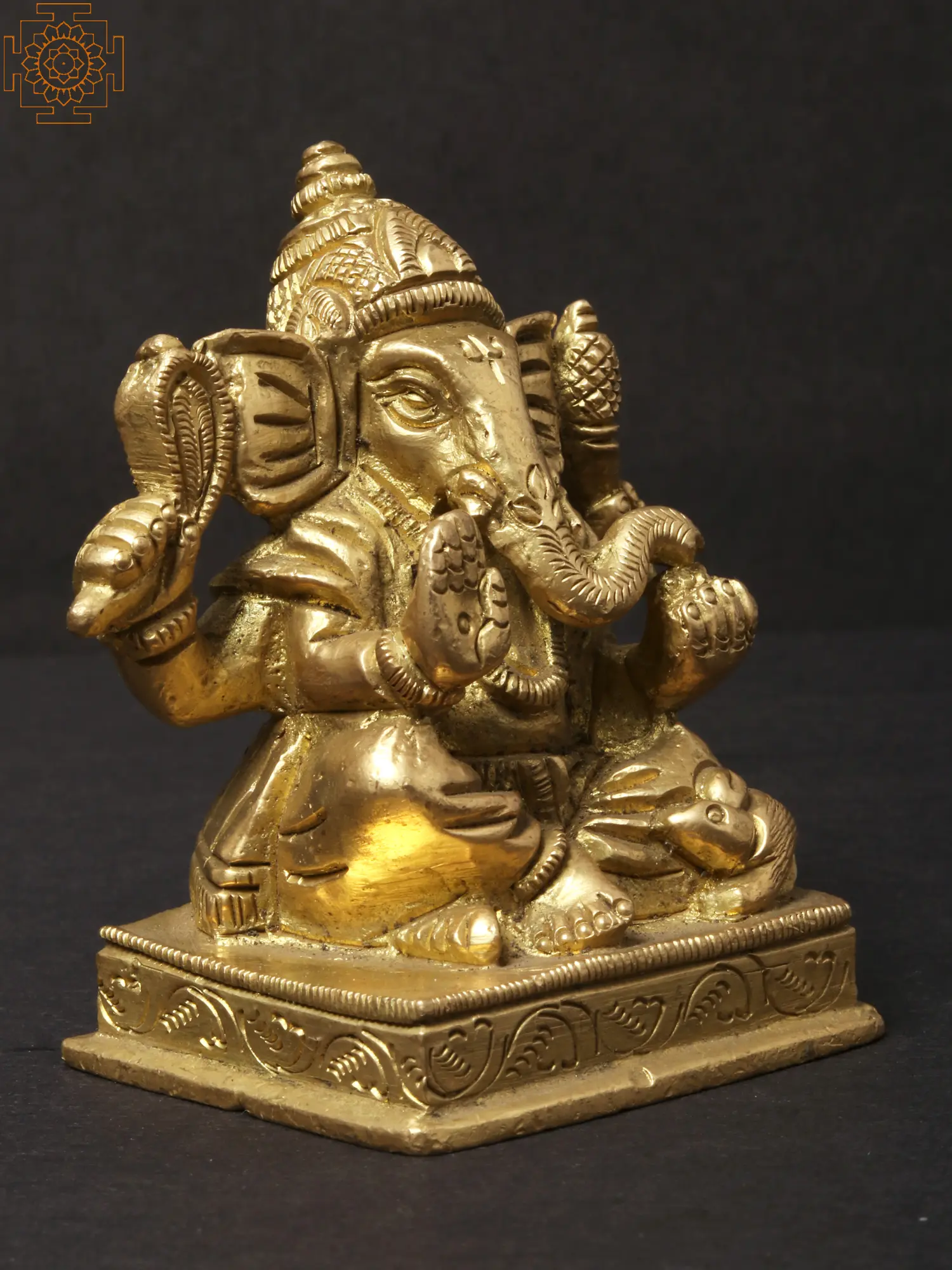 The Small Shri Ganpati seated, sculpted in brass, exudes the wisdom and grace of the beloved elephant-headed deity. With his large ears symbolizing active listening and a trunk representing adaptability, Lord Ganpati embodies the qualities of intelligence and problem-solving. This sculpture symbolizes the importance of intellect and wisdom in navigating life's challenges. Ganpati's presence reminds us that with a clear mind and focused approach, we can overcome any obstacle. He inspires us to embrace our unique abilities and move forward with confidence, knowing that intelligence is the key to success.