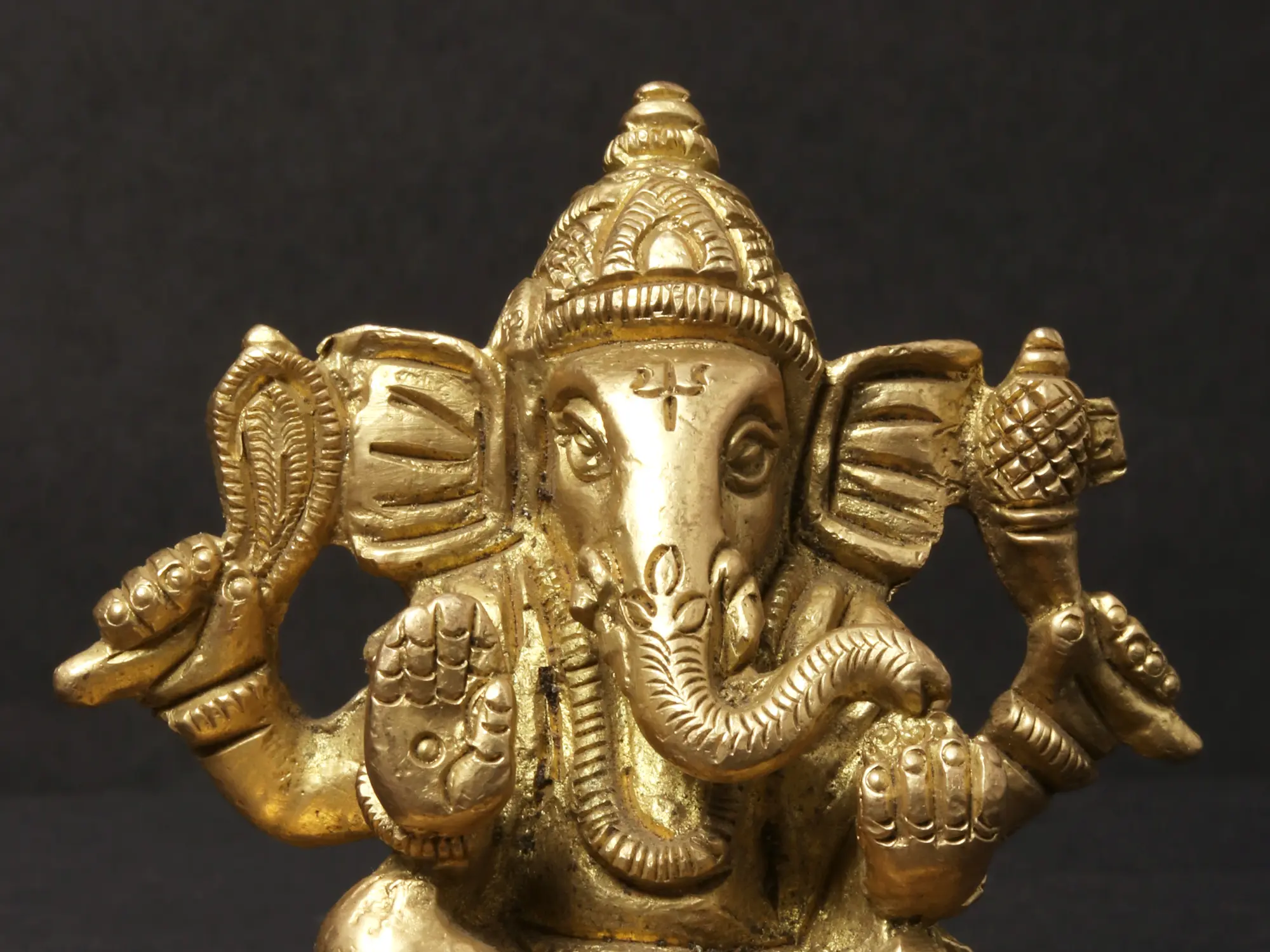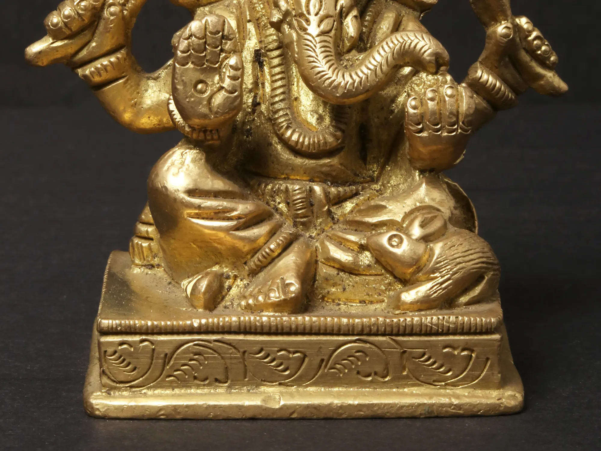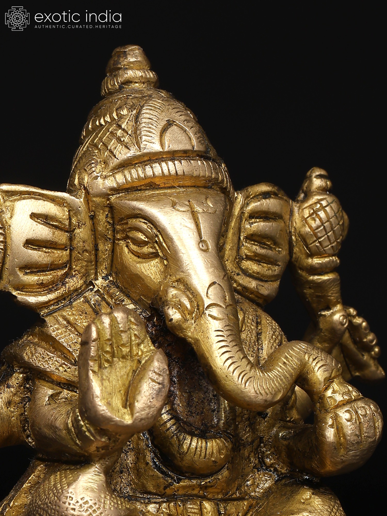 The Small Shri Ganpati seated, sculpted in brass, exudes the wisdom and grace of the beloved elephant-headed deity. With his large ears symbolizing active listening and a trunk representing adaptability, Lord Ganpati embodies the qualities of intelligence and problem-solving. This sculpture symbolizes the importance of intellect and wisdom in navigating life's challenges. Ganpati's presence reminds us that with a clear mind and focused approach, we can overcome any obstacle. He inspires us to embrace our unique abilities and move forward with confidence, knowing that intelligence is the key to success.
