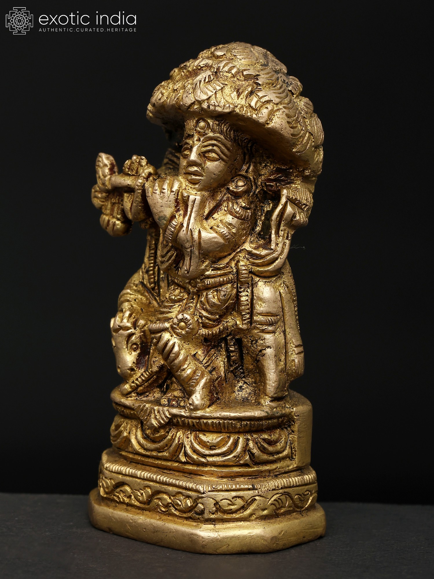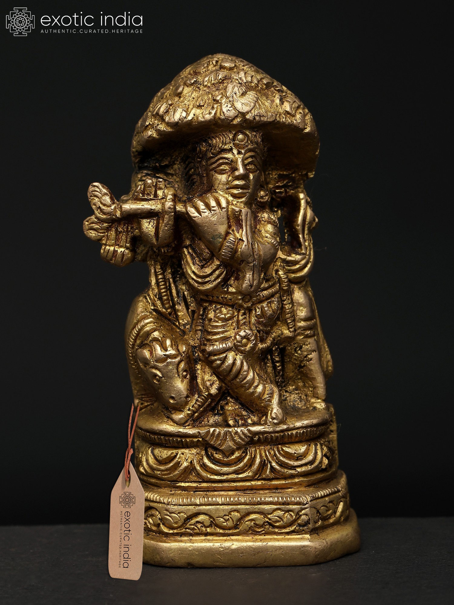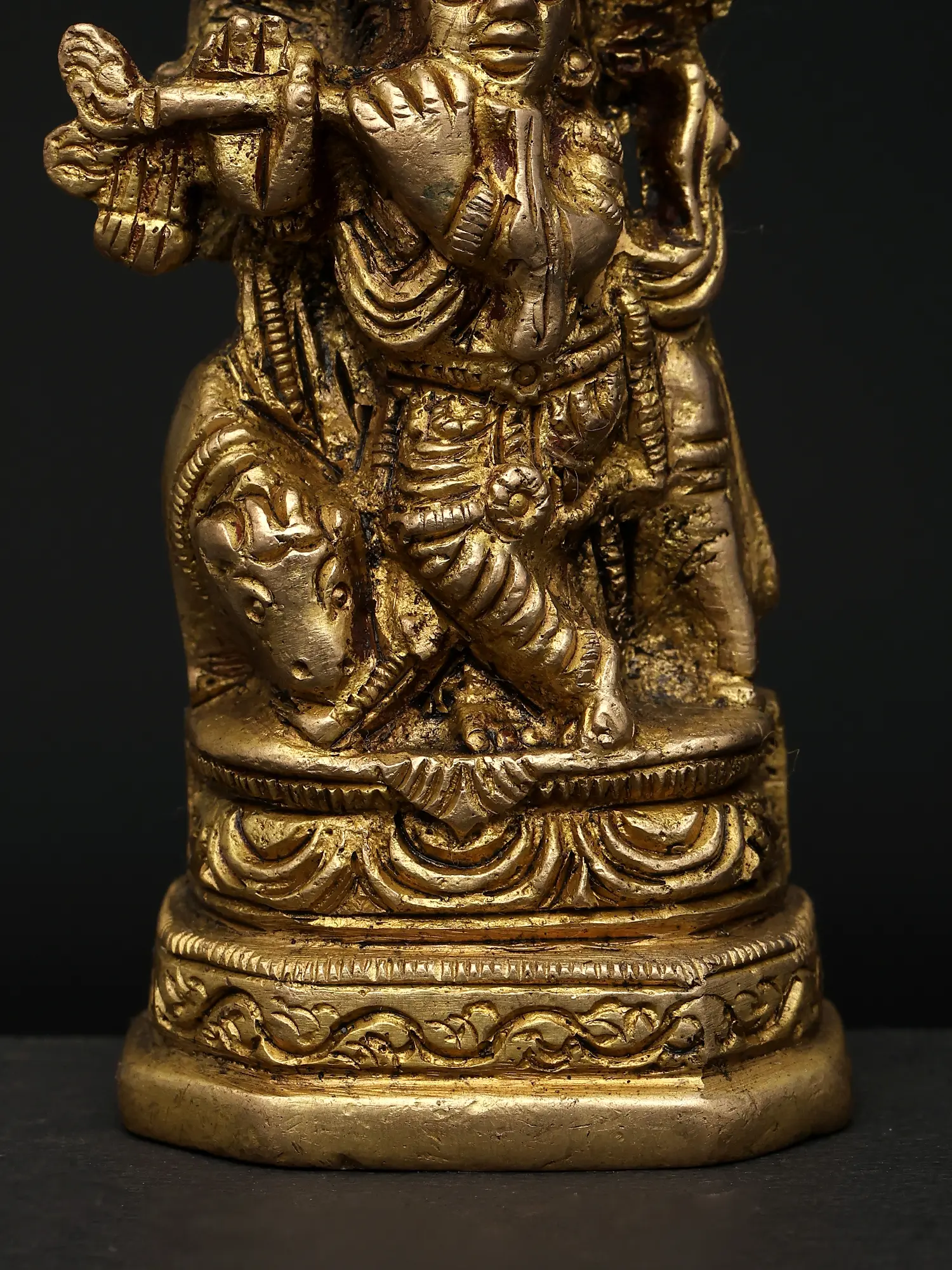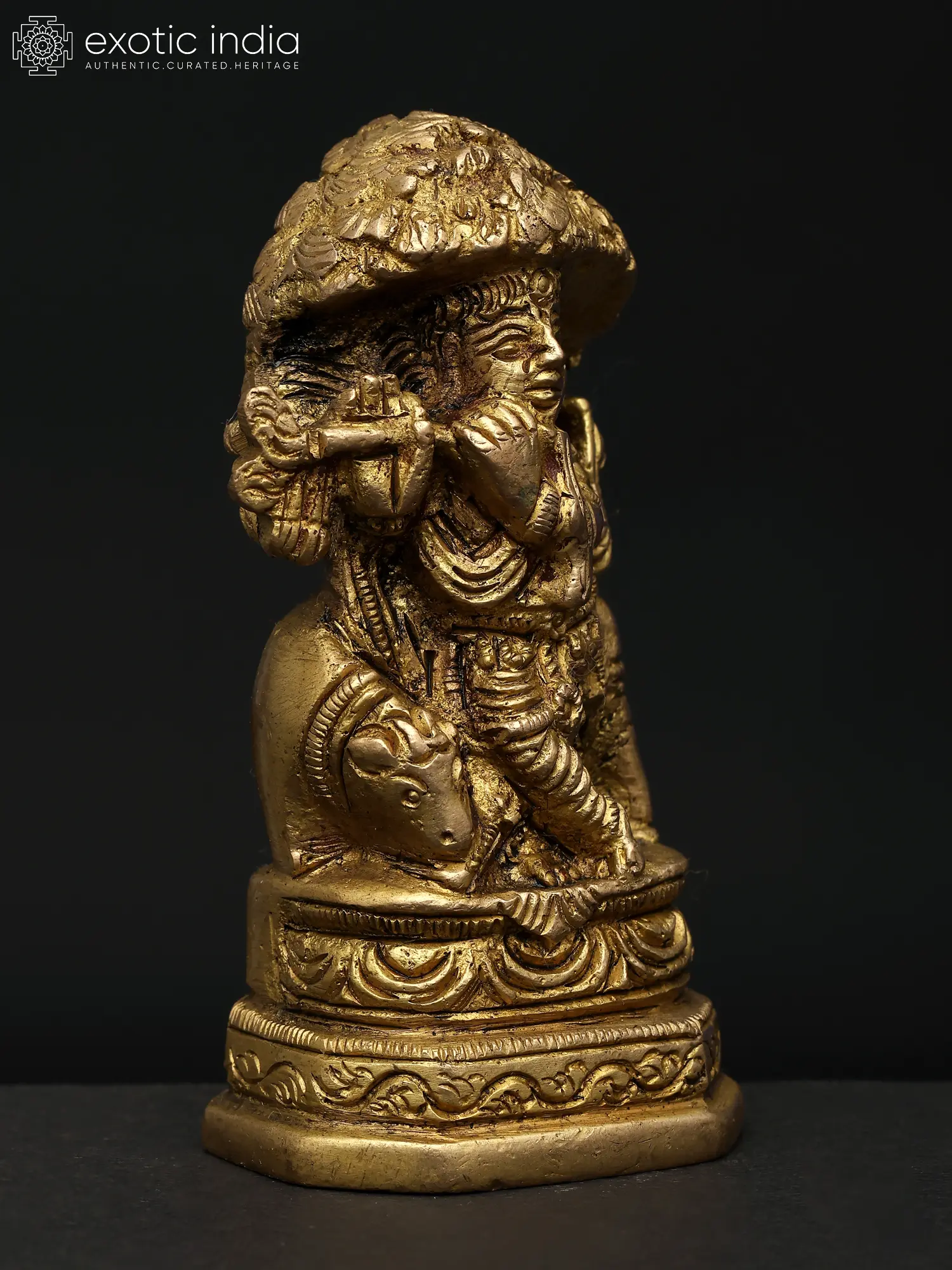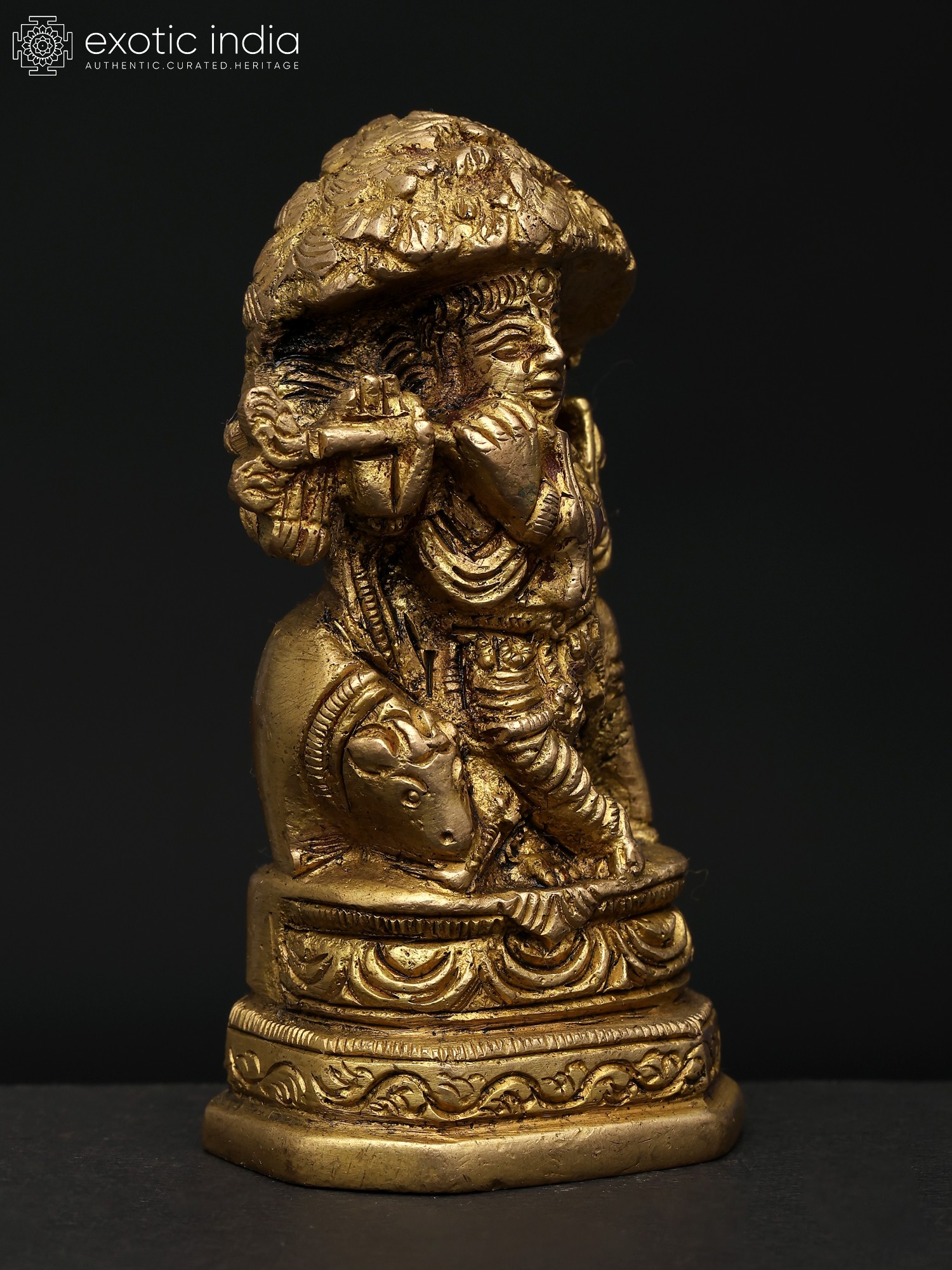 28" Large Size Lord Krishna with a Cow and His Flute In Brass | Handcrafted In India