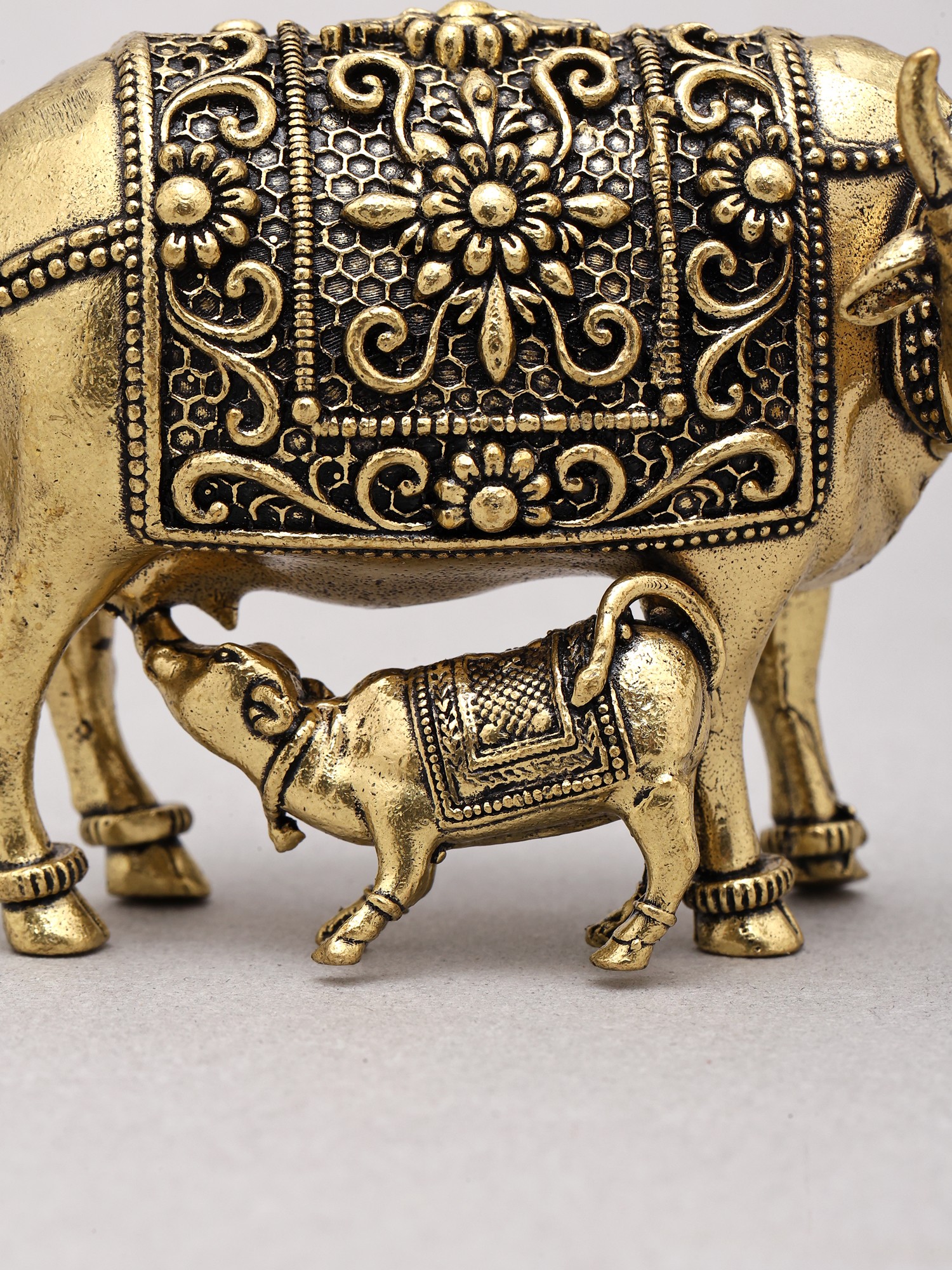 Divine Cow and Calf Figurine in Brass | Prosperity Symbol