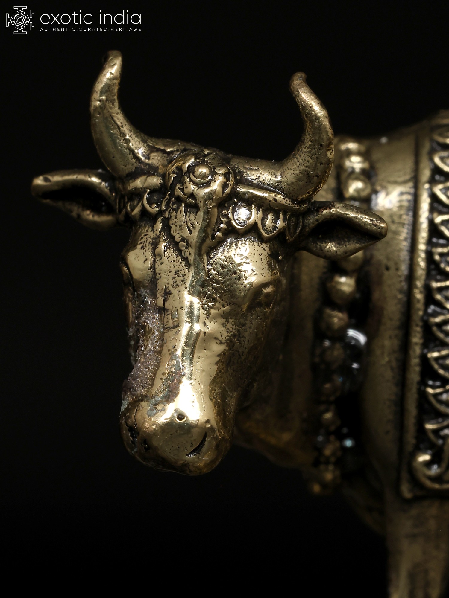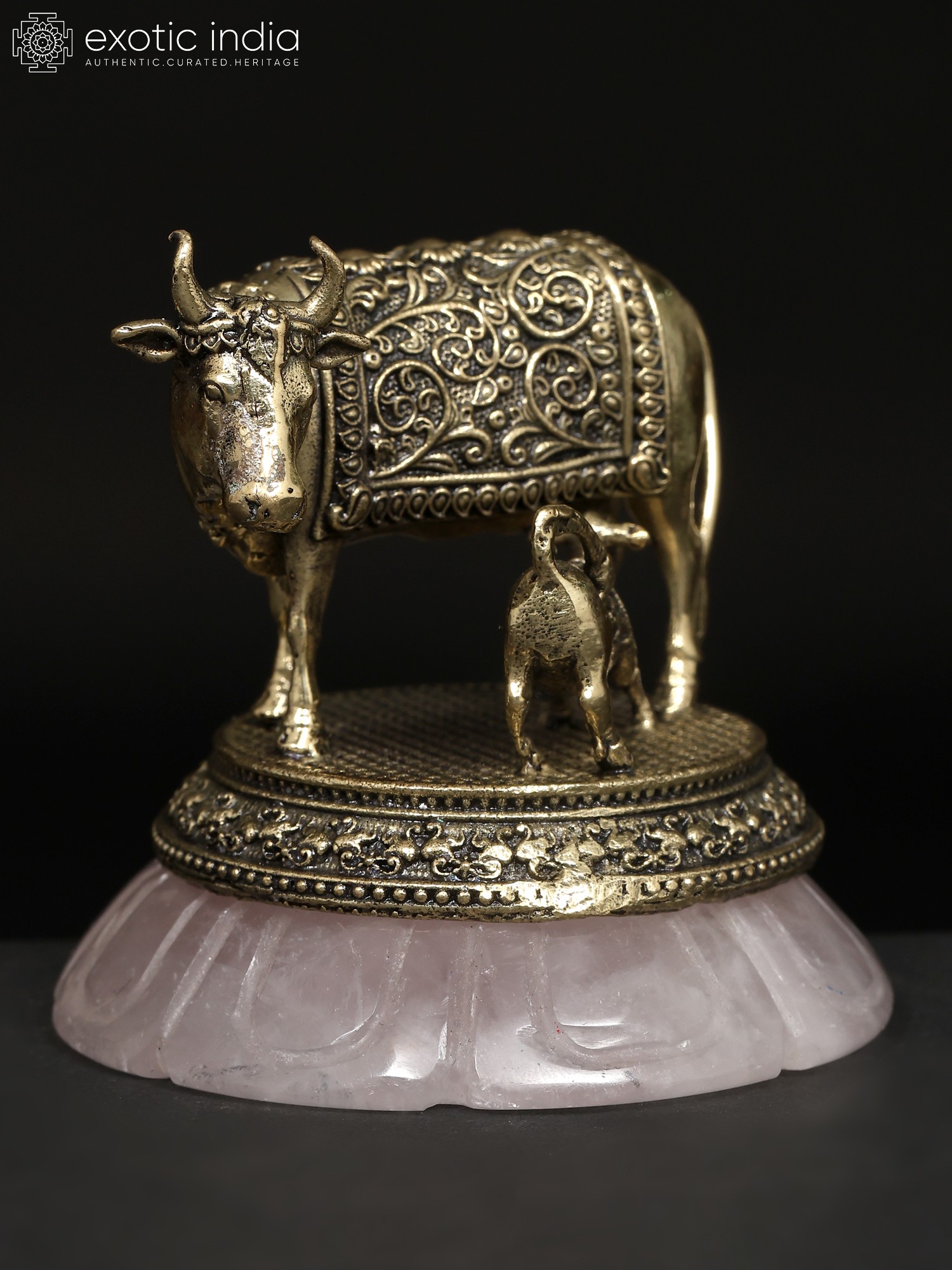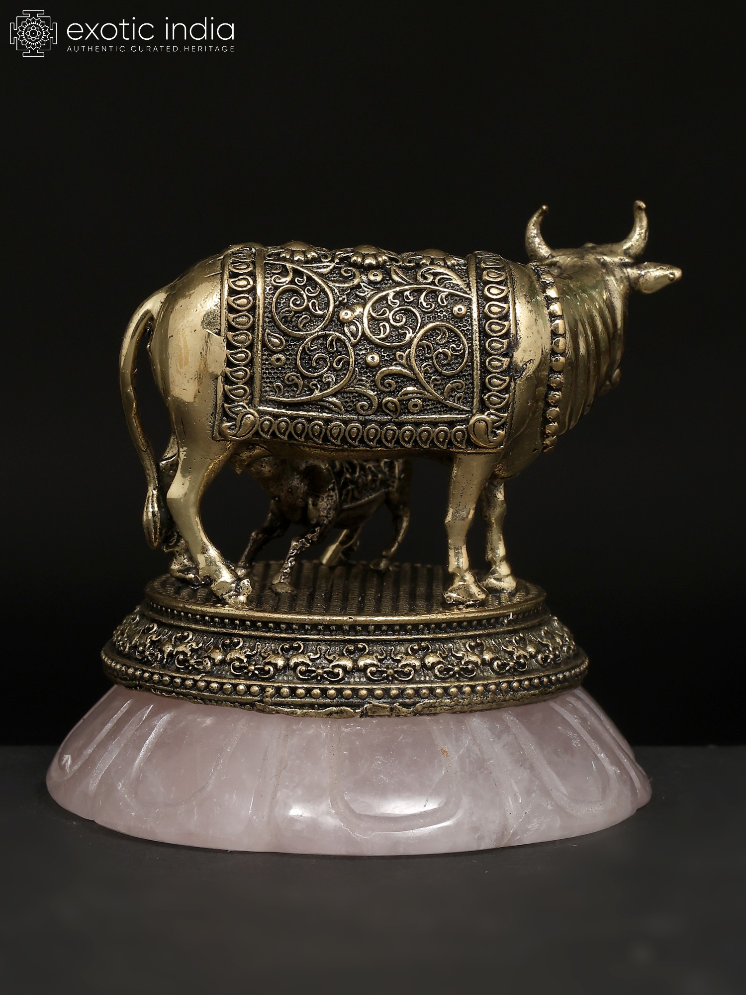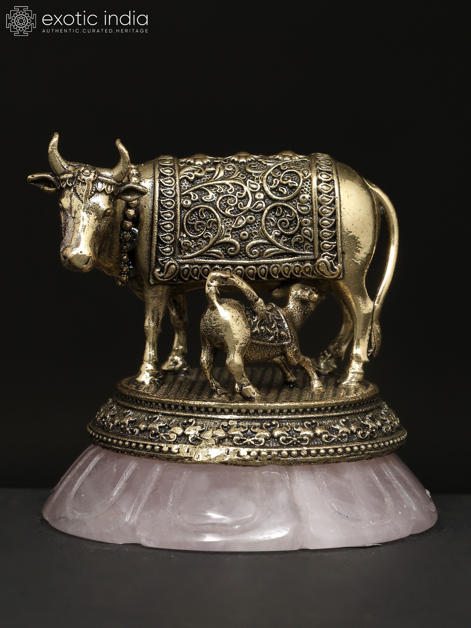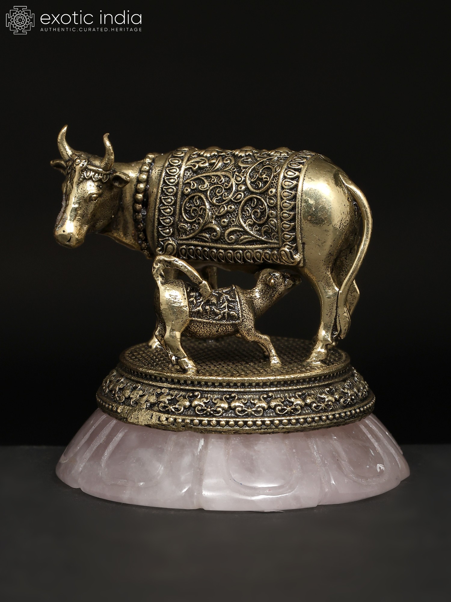 5" Brass Superfine Statue of Kamdhenu Cow with Calf