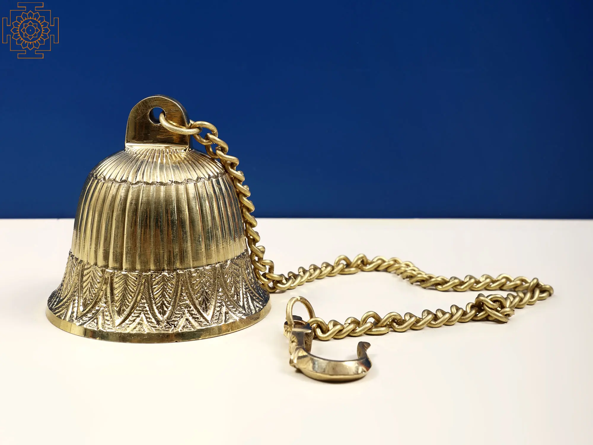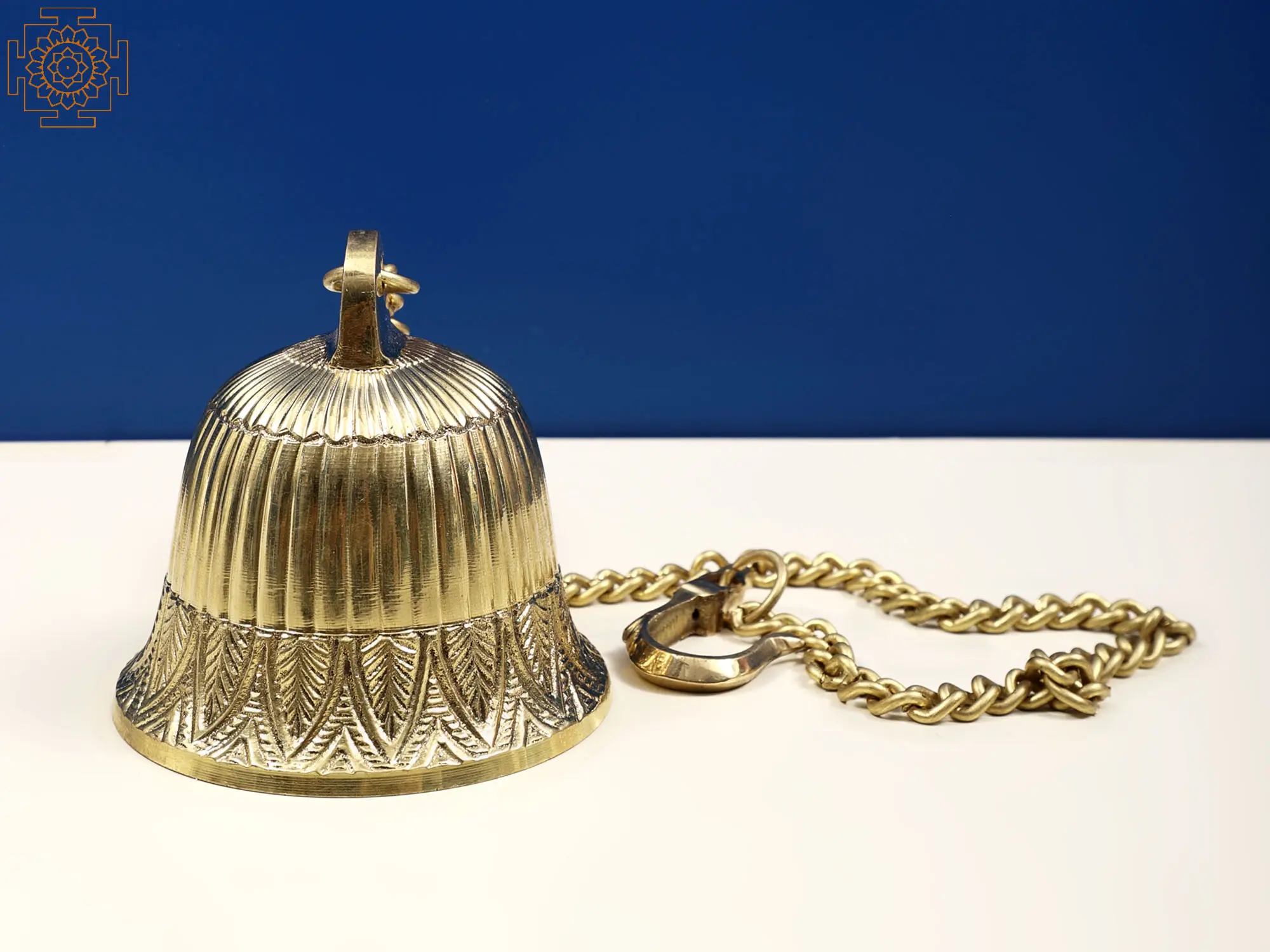 This exquisite small brass temple bell captures the essence of sacred sound. Each ring evokes devotion and presence, inviting tranquility into sacred spaces. The intricate detailing reflects timeless craftsmanship, while the bell's form signifies a connection to the divine. As fingers touch the clapper, a resonating symphony is born, reminiscent of mantras and prayers. The bell's gentle peal signifies awakening and renewal, inviting us to listen to the wisdom within. This sculpture serves as a tangible reminder of the power of sound to elevate the spirit and invite a sense of inner harmony.