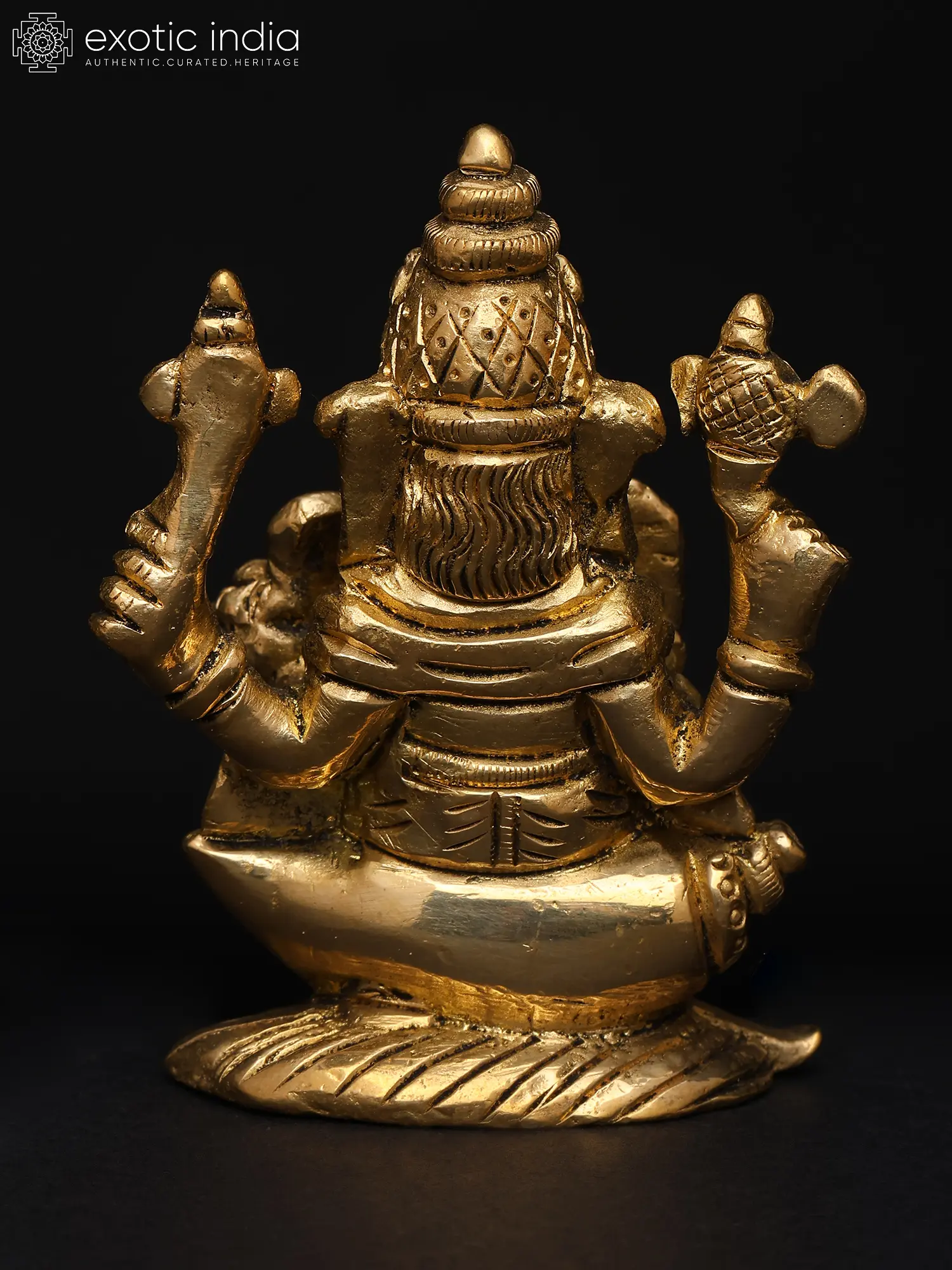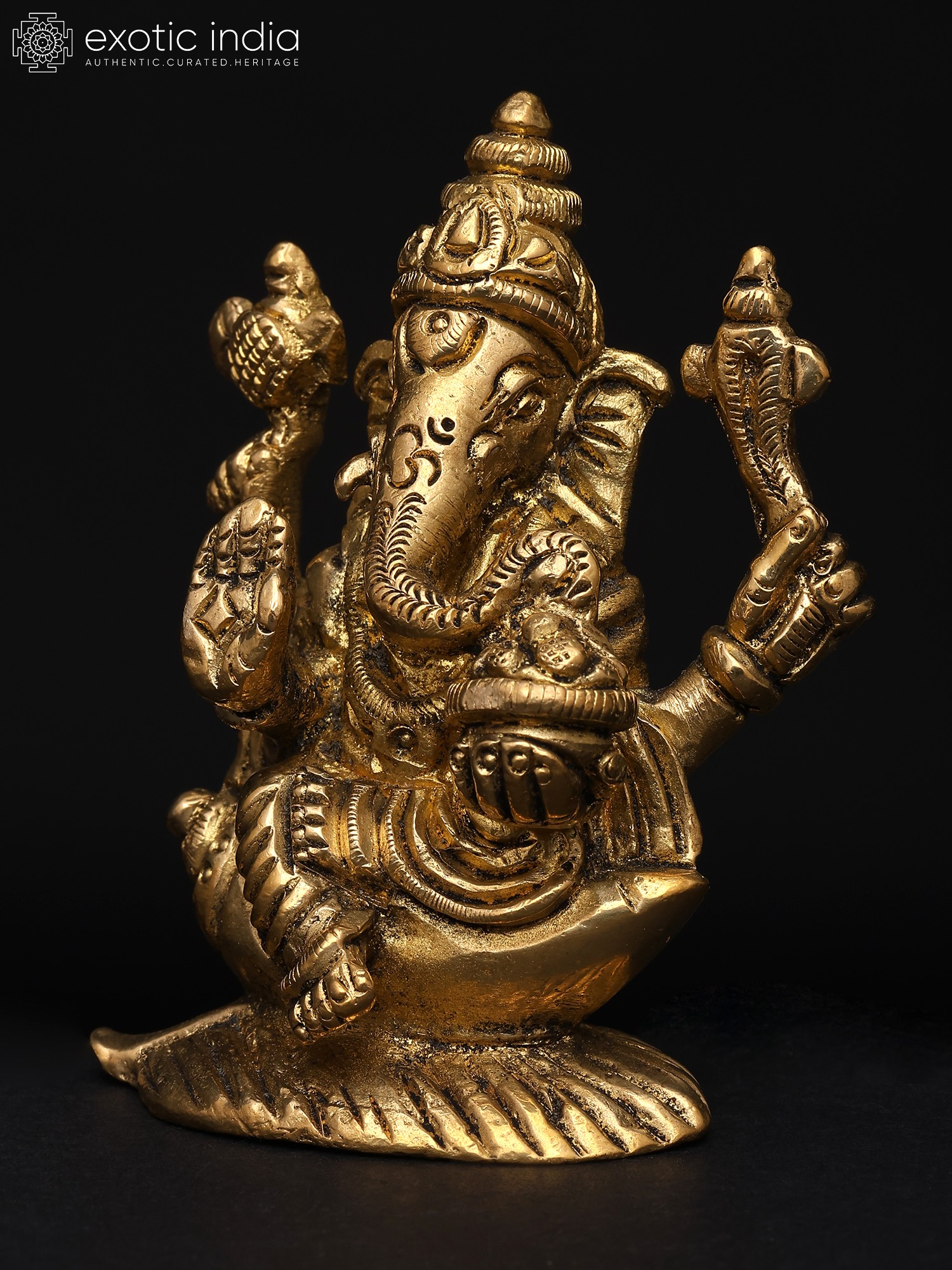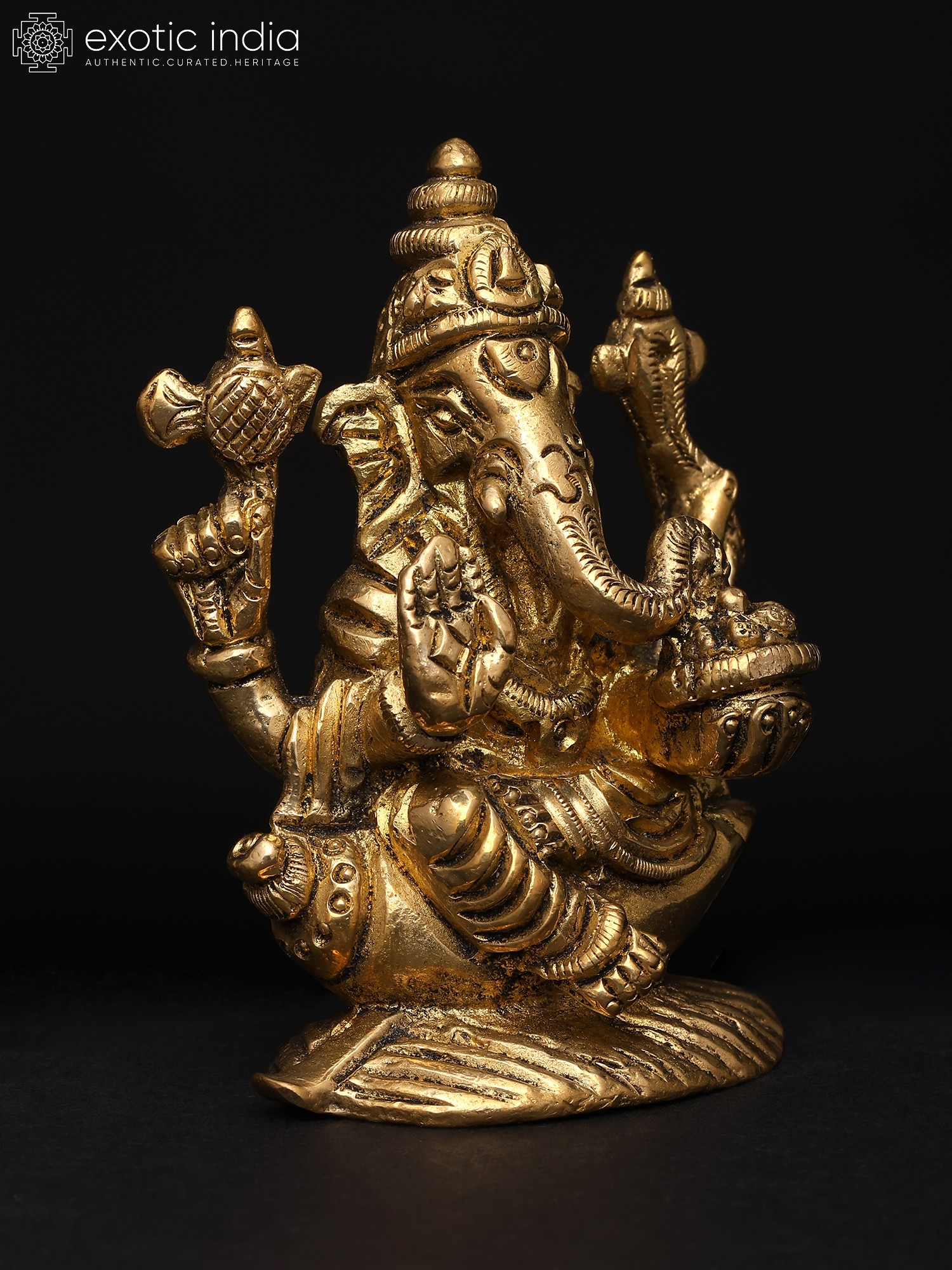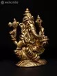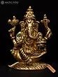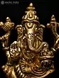 22" Sitting Chaturbhuja Lord Ganesha in Blessing Gesture | Brass Statue with Inlay Work