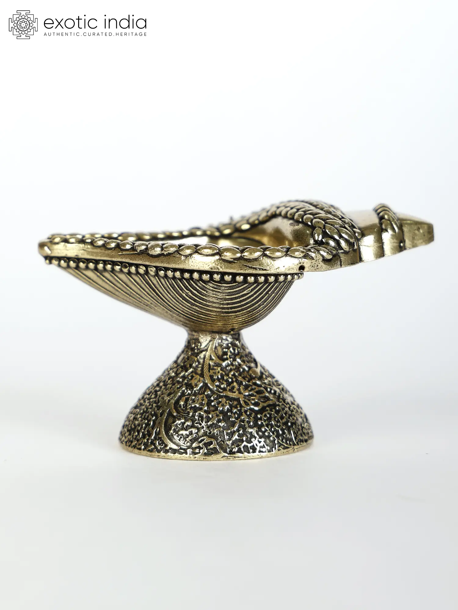 Some pieces of utility transcend the boundaries of creativity and craftsmanship, and this Small Conch Shape Brass Diya (Lamp) is a prime example. Exquisitely fashioned into the shape of an ornate conch, the diya features a cavity that serves as the oil basin.