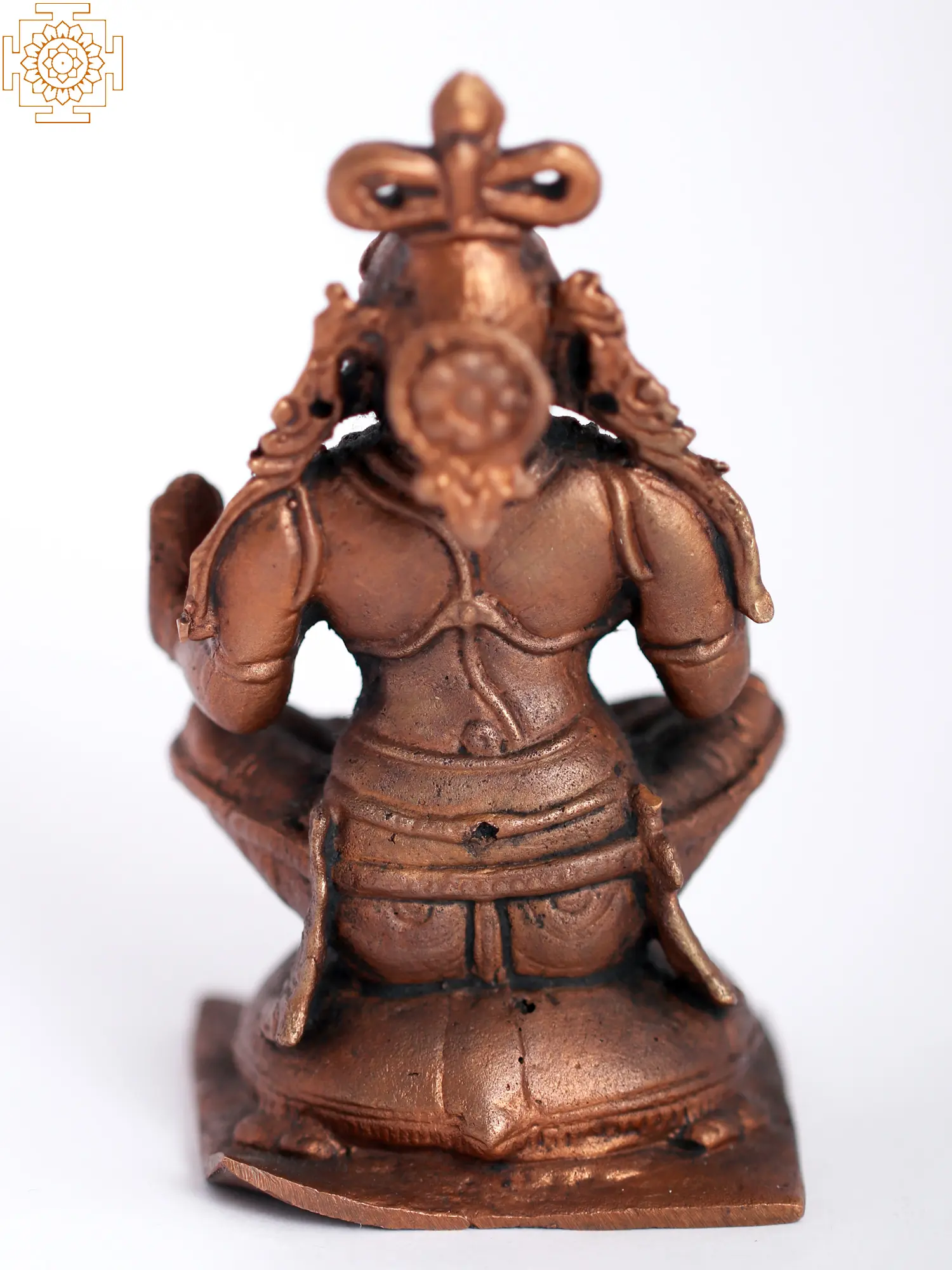 This is a small copper idol of Vyasa, the compiler of the four Vedas, Puranas, and Brahmans. He is also associated with the earliest renditions of the great epic Mahabharata. The same epic tells the story of his birth, where Ved Vyasa was born out of the union of Satyavati and sage Parashar, who wrote the Vishnu Purana. Vyas’s heir, his son Shuka is known as the narrator of a vital Vaishnava text, the Bhagavata Purana. The idol you see on your left has perfectly captured the wisdom of this great sage. Ved Vyasa is sitting on a lotus asana which is placed on a tortoise, a symbol of the ability of great sages to withdraw from the world. His left hand is in the gesture of fearlessness and his right-hand forms the Chinmudra (a posture of holy men parting knowledge). On his head, is a snake with his own tail in its mouth, symbolizing infinity, the endless consciousness of Ved Vyasa.