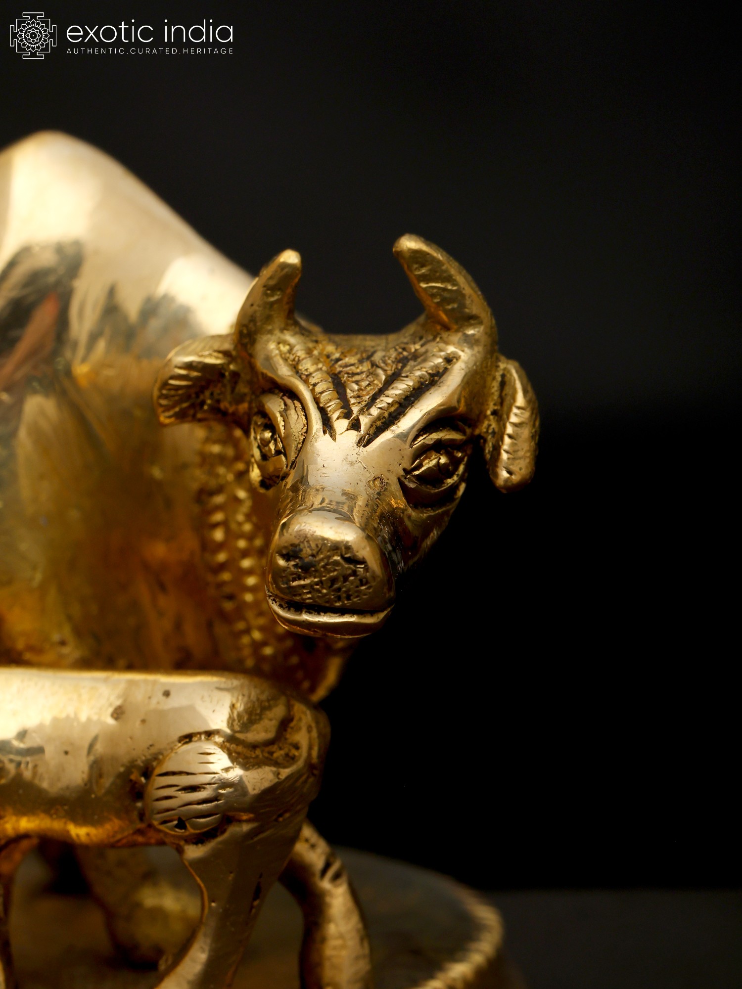 Crafted from high-quality brass, this statue is built to last for generations. The inherent durability of brass ensures that the intricate details will remain preserved, while the metal itself will develop a beautiful patina over time, adding to its character and charm. The smooth, polished surface invites touch, and the weight of the piece conveys its solid construction. The base, on which the cow and calf stand, is subtly textured and adorned, providing a stable and elegant platform for this sacred representation. This piece is not merely an object of art but a conduit to deeper meaning, a tangible connection to ancient traditions and enduring values.
