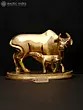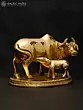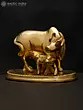 10" Brass Cow and Calf Gullak | Brass Statue with Inlay Work
