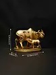 This exquisite brass statue captures a timeless scene of maternal love and gentle devotion. A nurturing cow stands protectively over her calf, the two figures rendered in gleaming brass with remarkable detail. The calf, small and inquisitive, nuzzles against its mother, embodying innocence and dependence. The cow, with its serene expression and strong form, radiates a sense of quiet strength and steadfast care. The artistry of this piece lies in its ability to convey profound emotion through the enduring medium of brass. The warm, golden hue of the metal enhances the sense of abundance and prosperity often associated with cattle. Each curve of the animals' bodies, from the powerful musculature of the cow to the delicate limbs of the calf, is meticulously shaped, creating a lifelike yet stylized representation. The surface gleams with a polished finish, reflecting light and adding a touch of regal elegance.