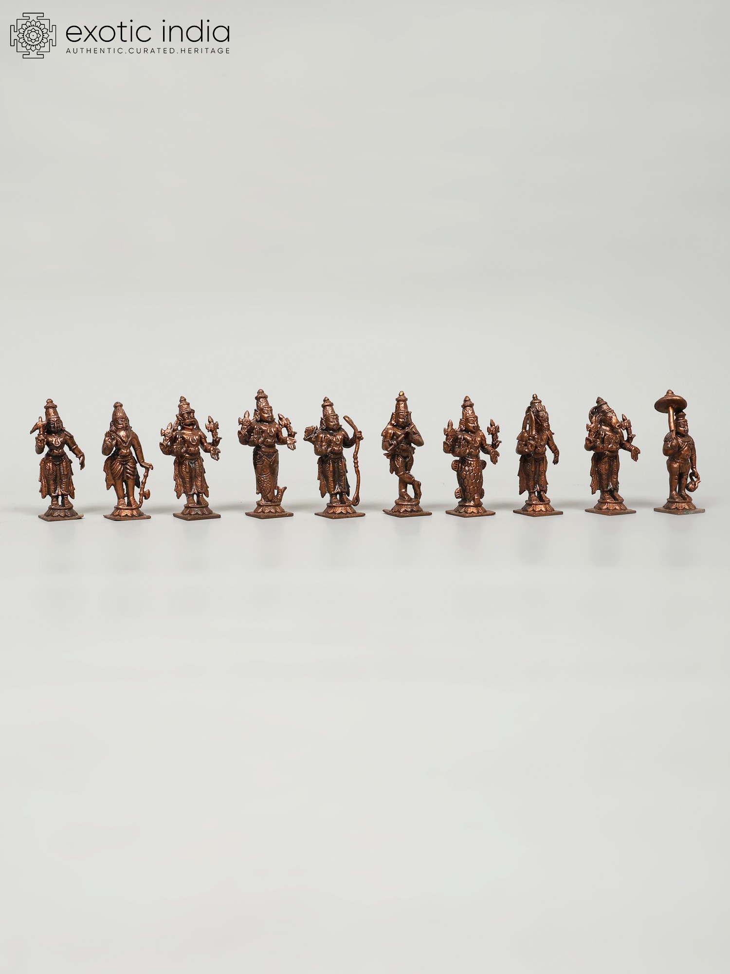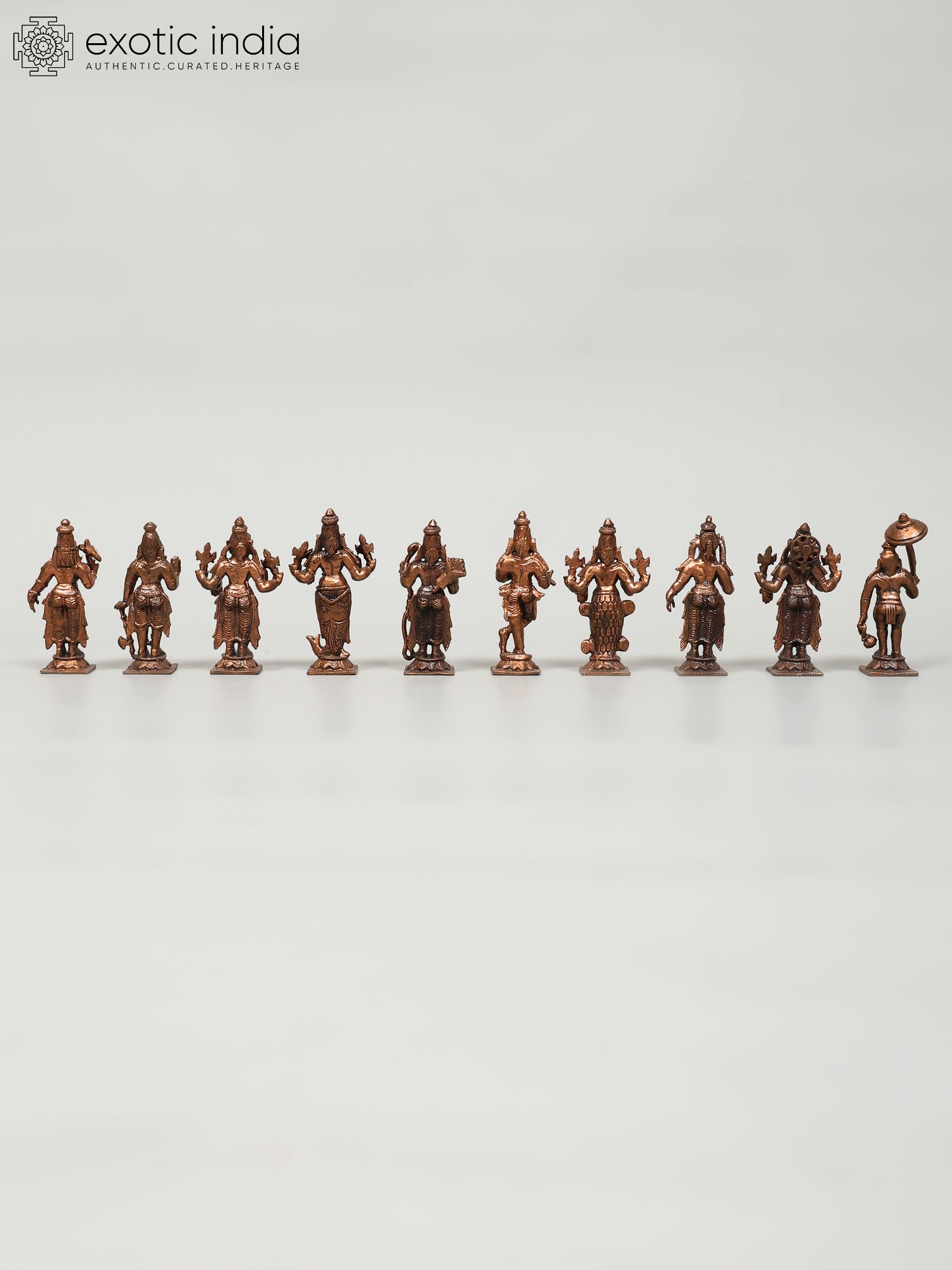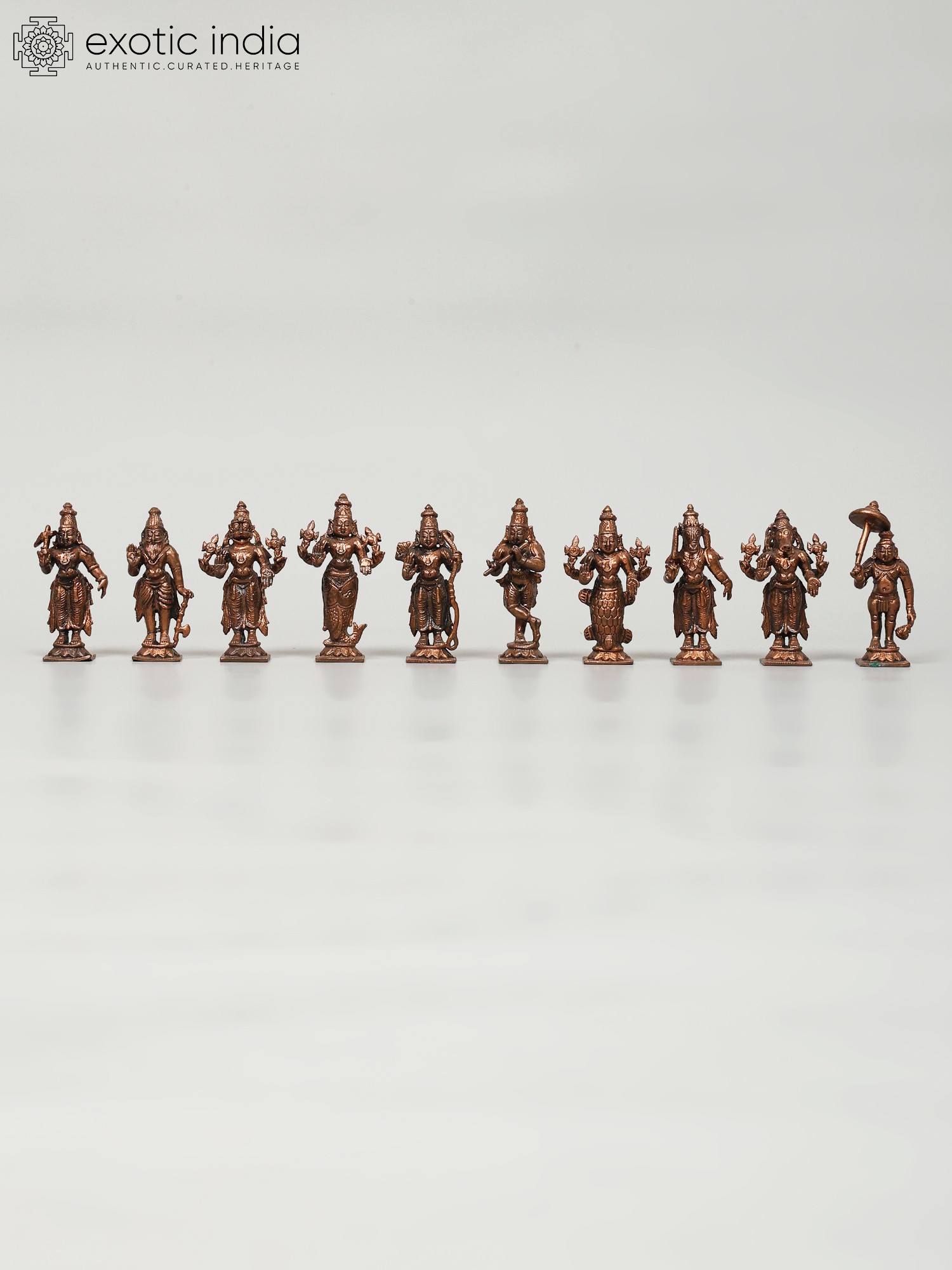 2" Small Dashavatara of Lord Vishnu | Set of Ten | Copper Statues