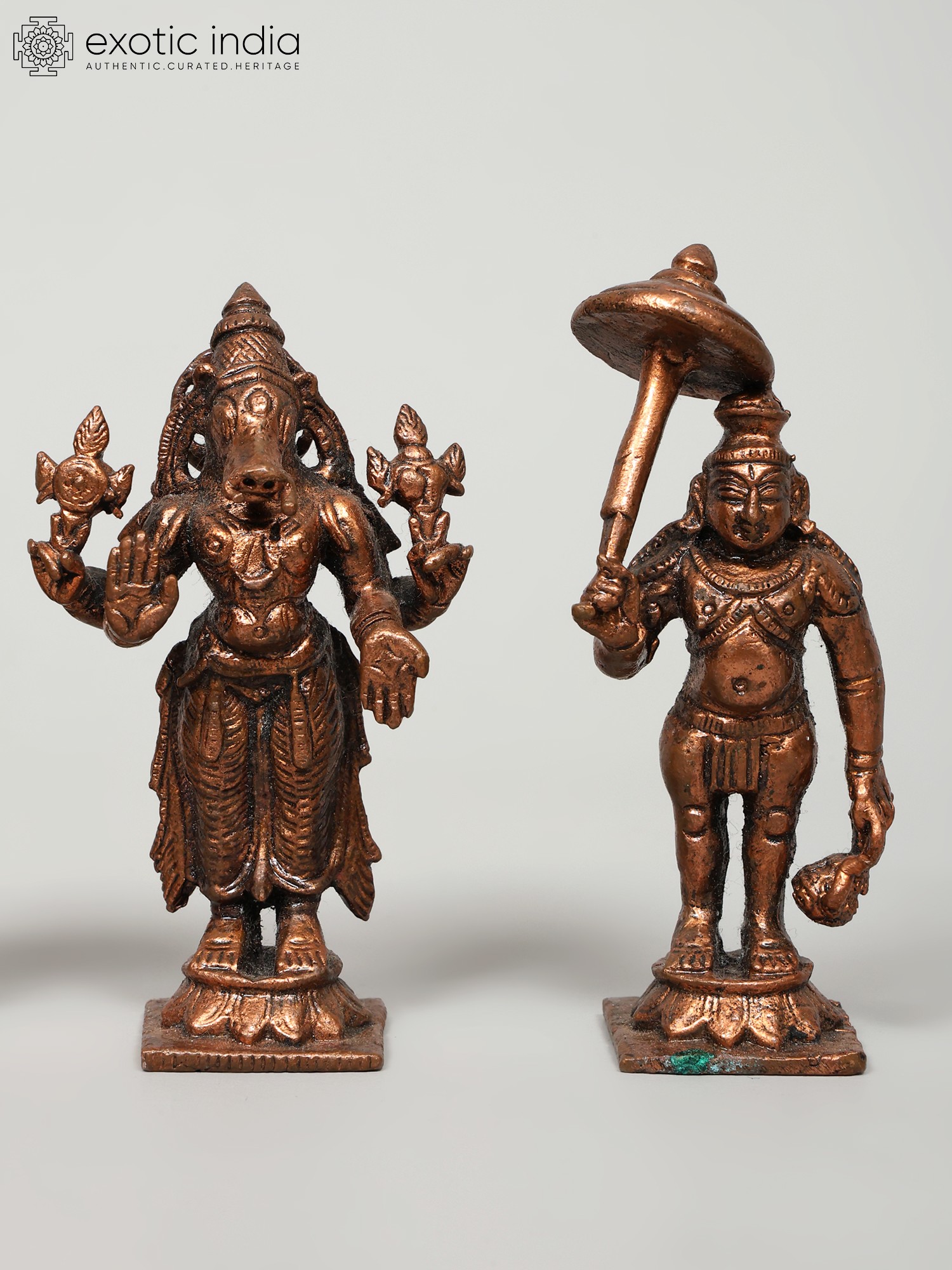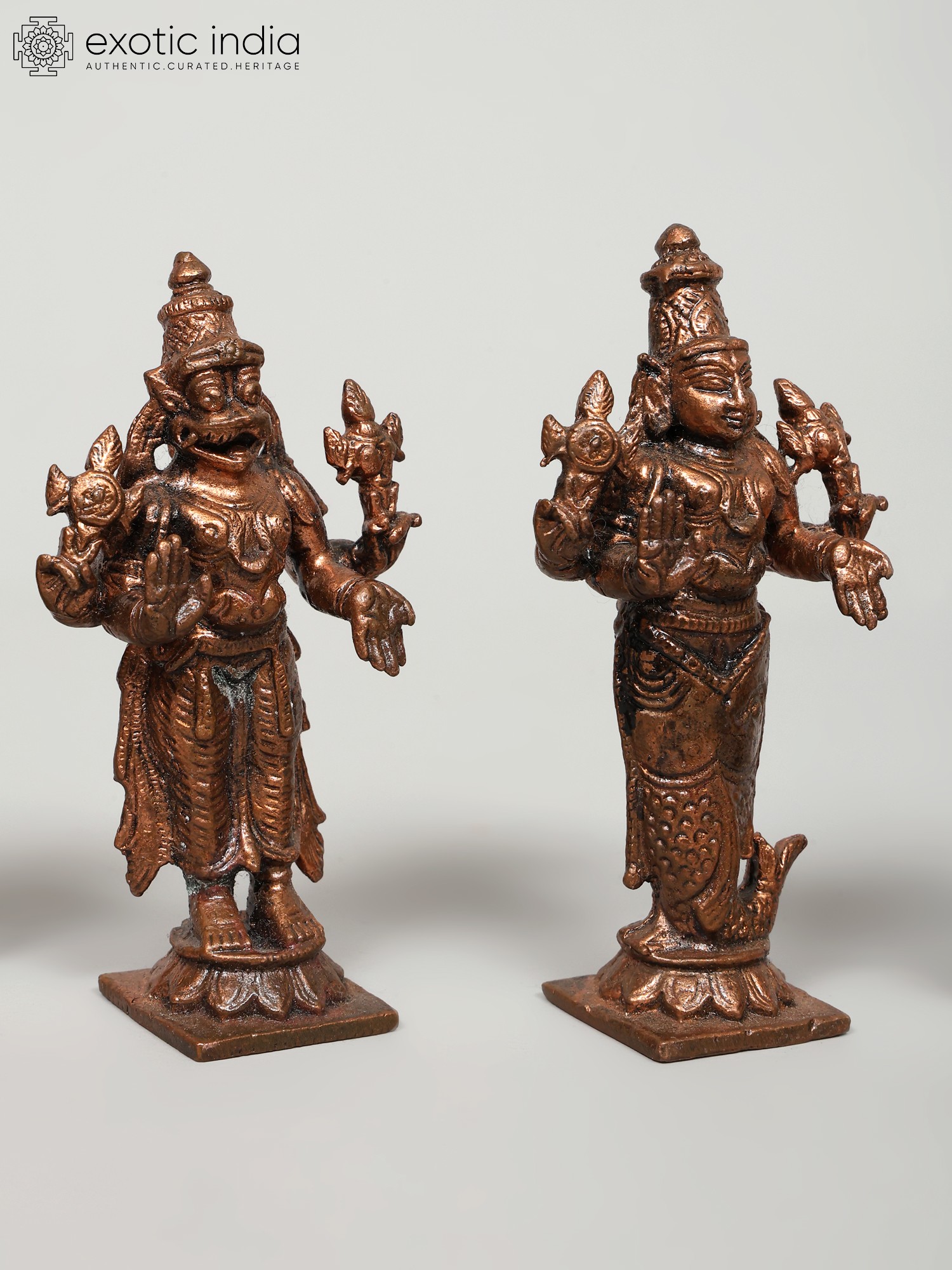 The future avatar, who will appear at the end of the Kali Yuga to destroy evil and usher in a new age of righteousness. Each statue is carefully crafted from copper, lending a sense of timelessness and sacredness. The use of copper, a metal revered in Vedic traditions for its conductivity and purity, further enhances the spiritual significance of these forms.