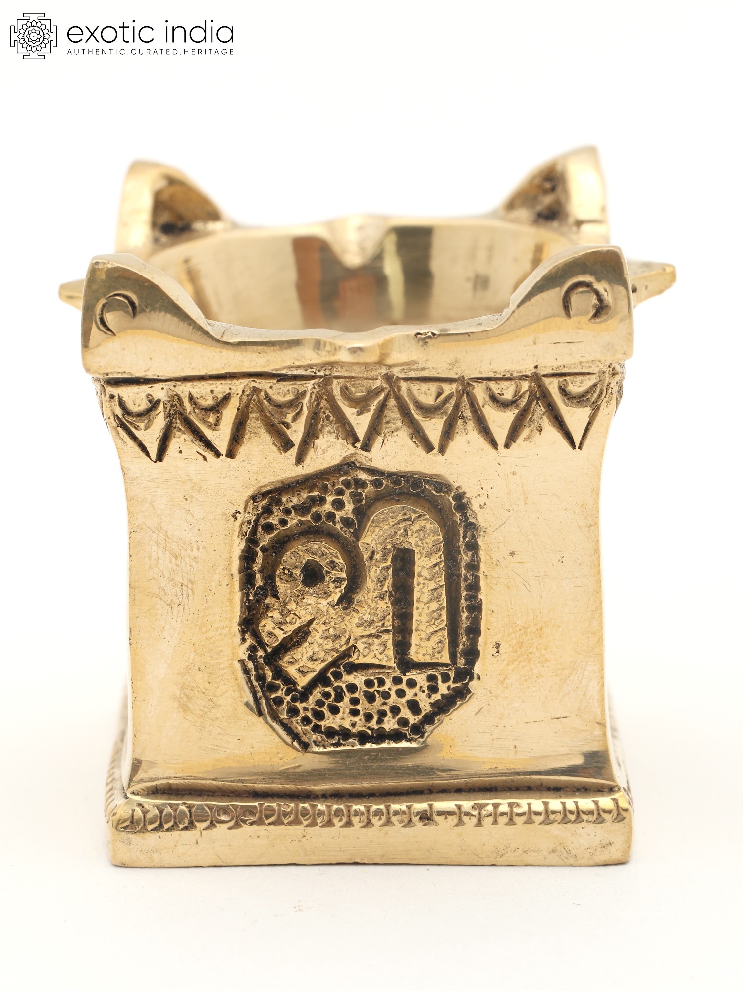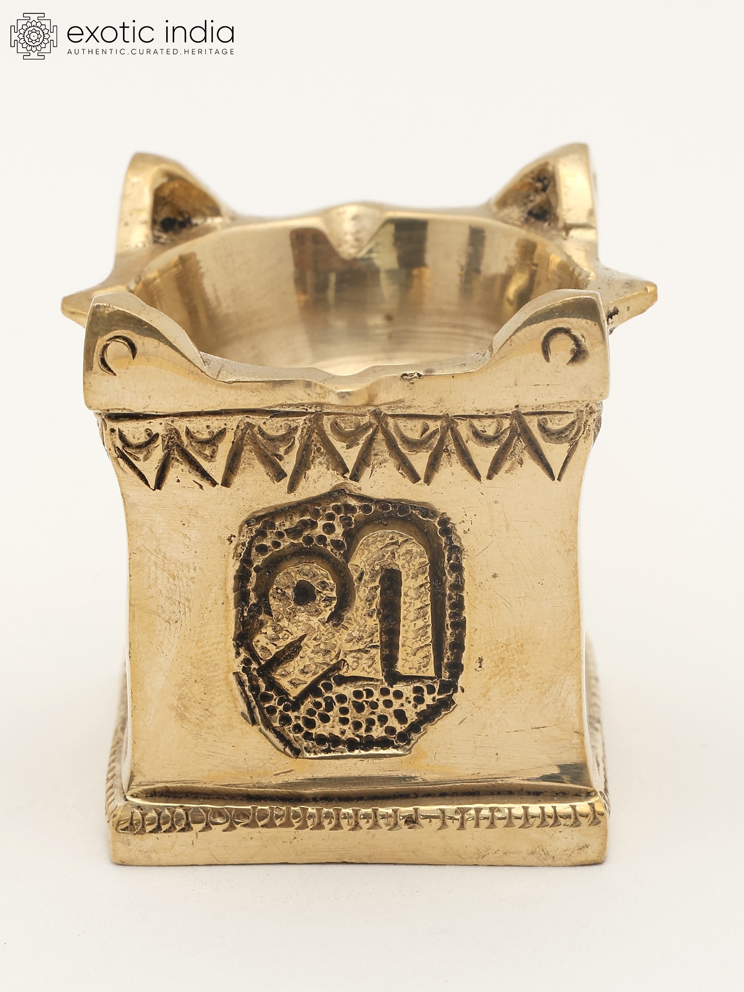 2" Throne Ganesha Small Puja Diya (Lamp) in Brass | Handmade | Made in India