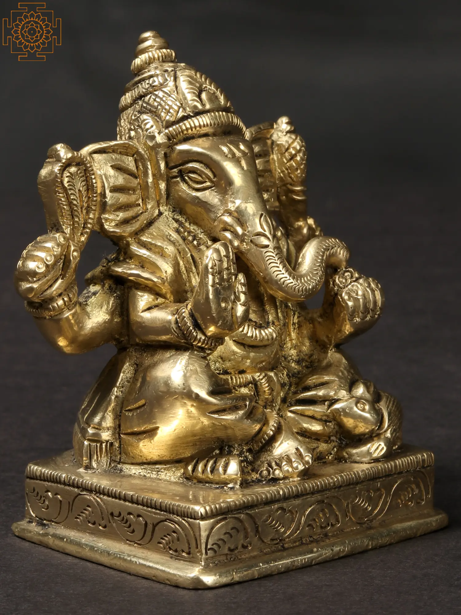 3" Small Lord Ganesha Seated on Mushak – The Divine Four-Armed Form | Brass Sculpture