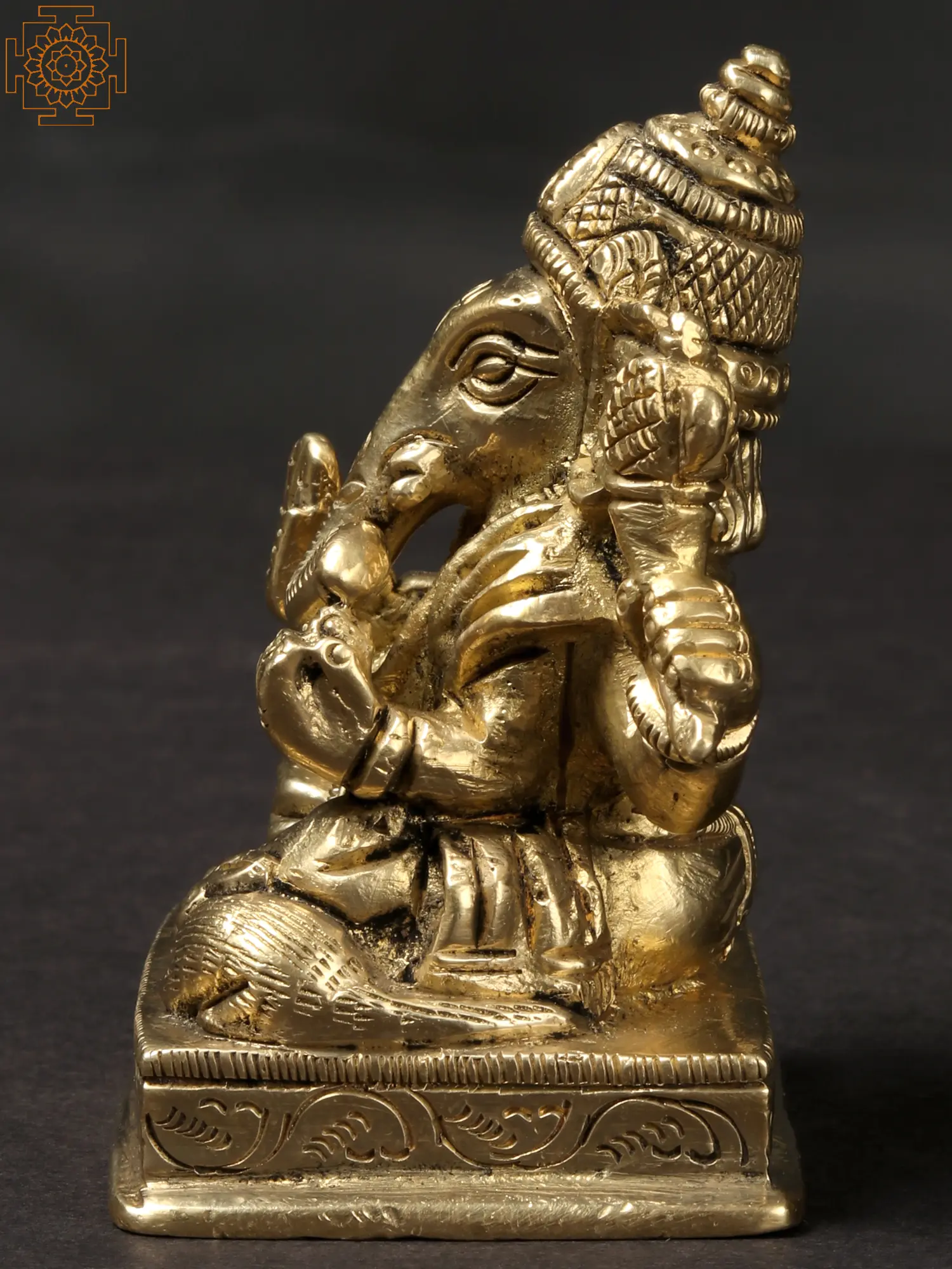3'' Small Ganesha Seated On Base | Brass Statue