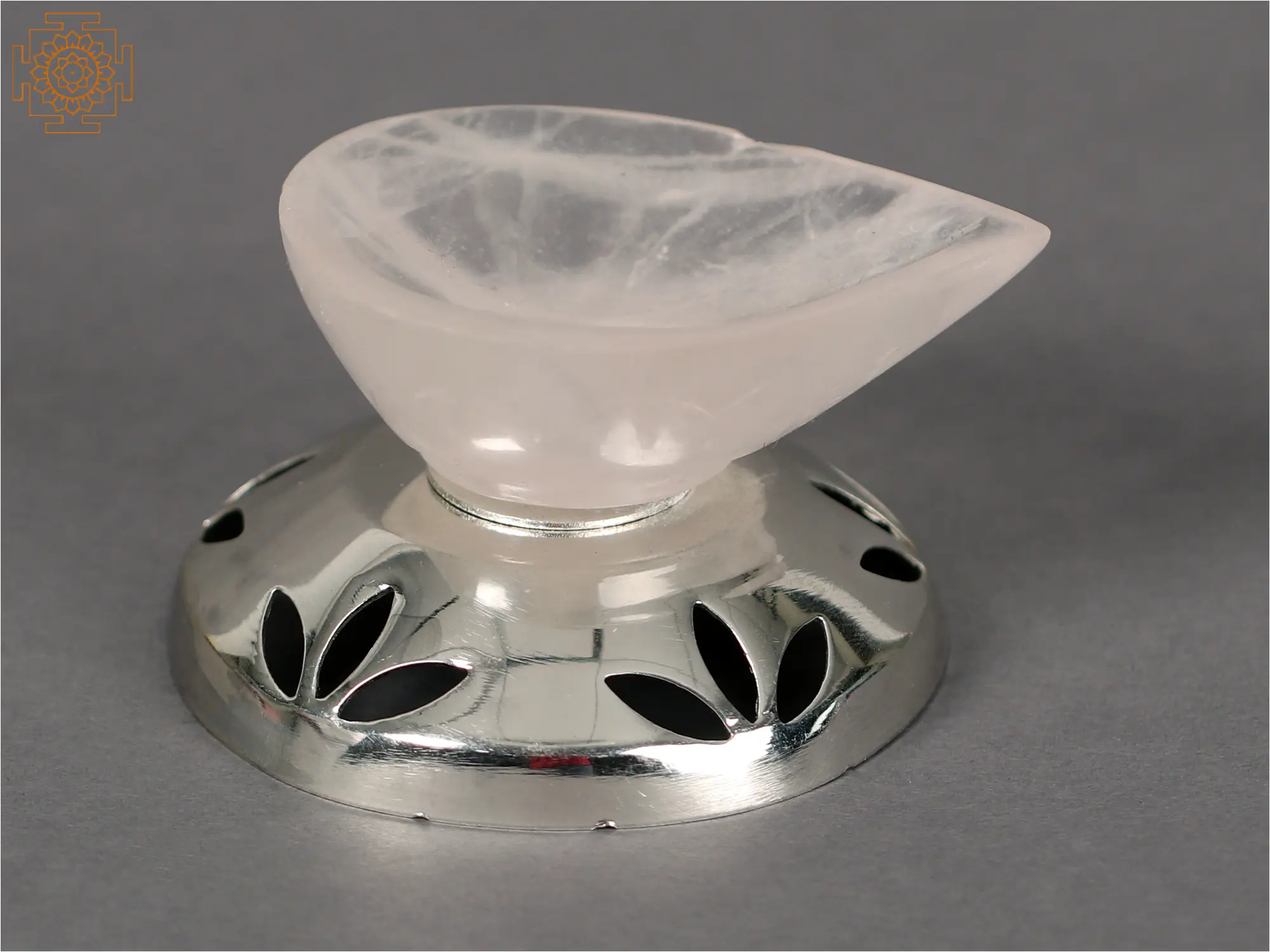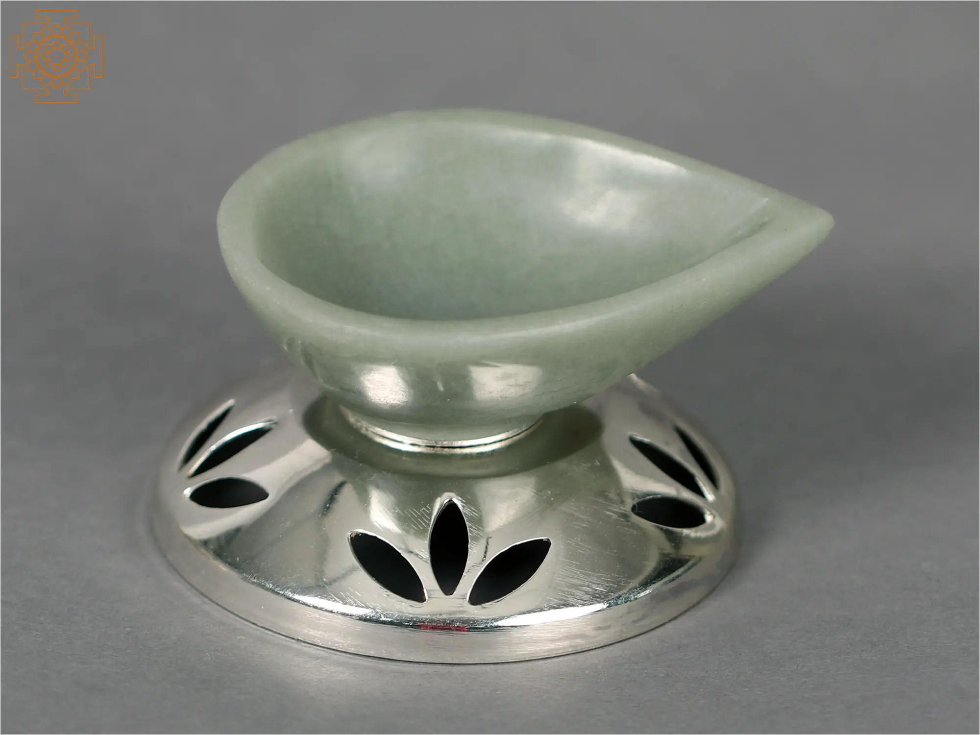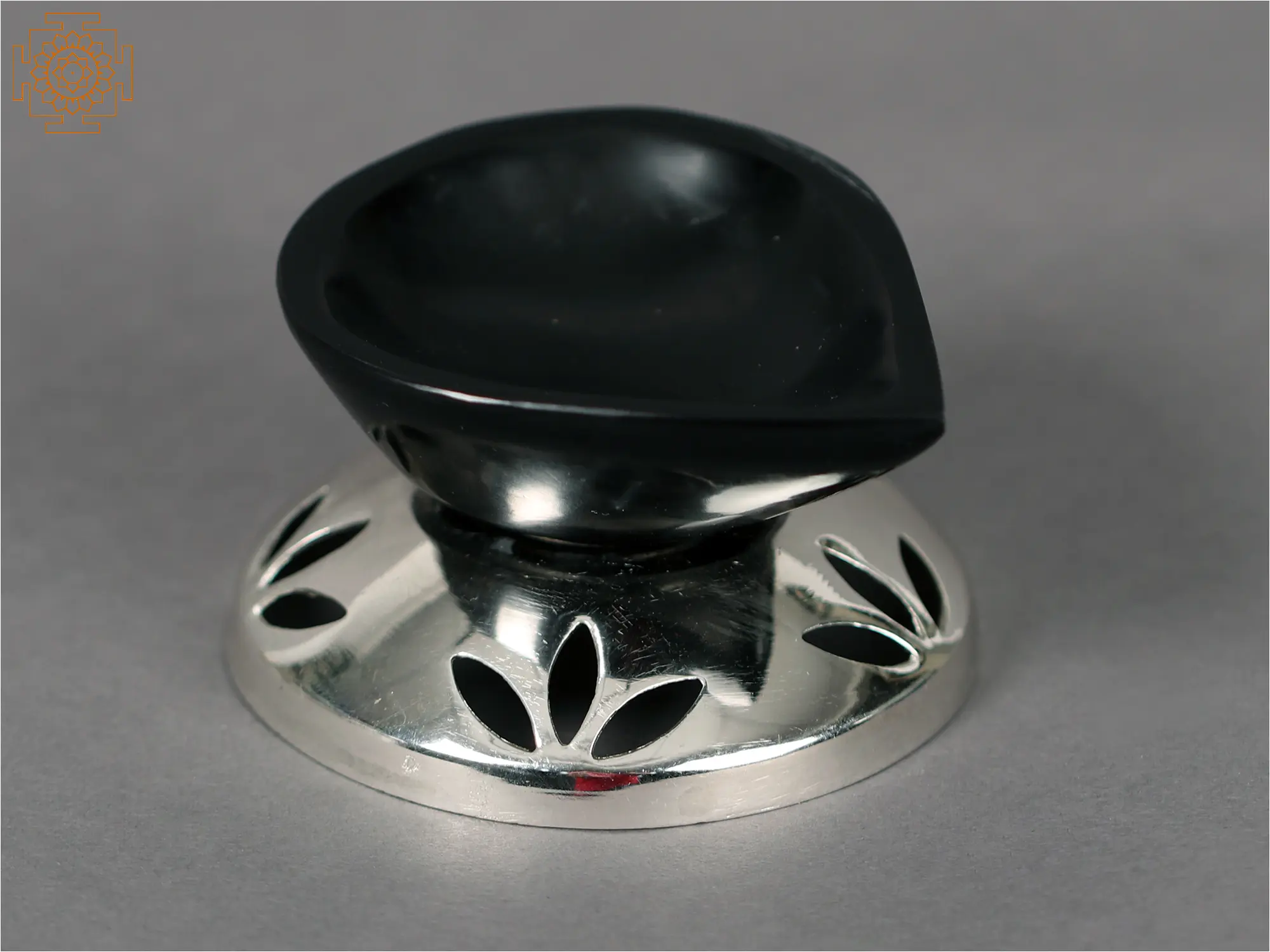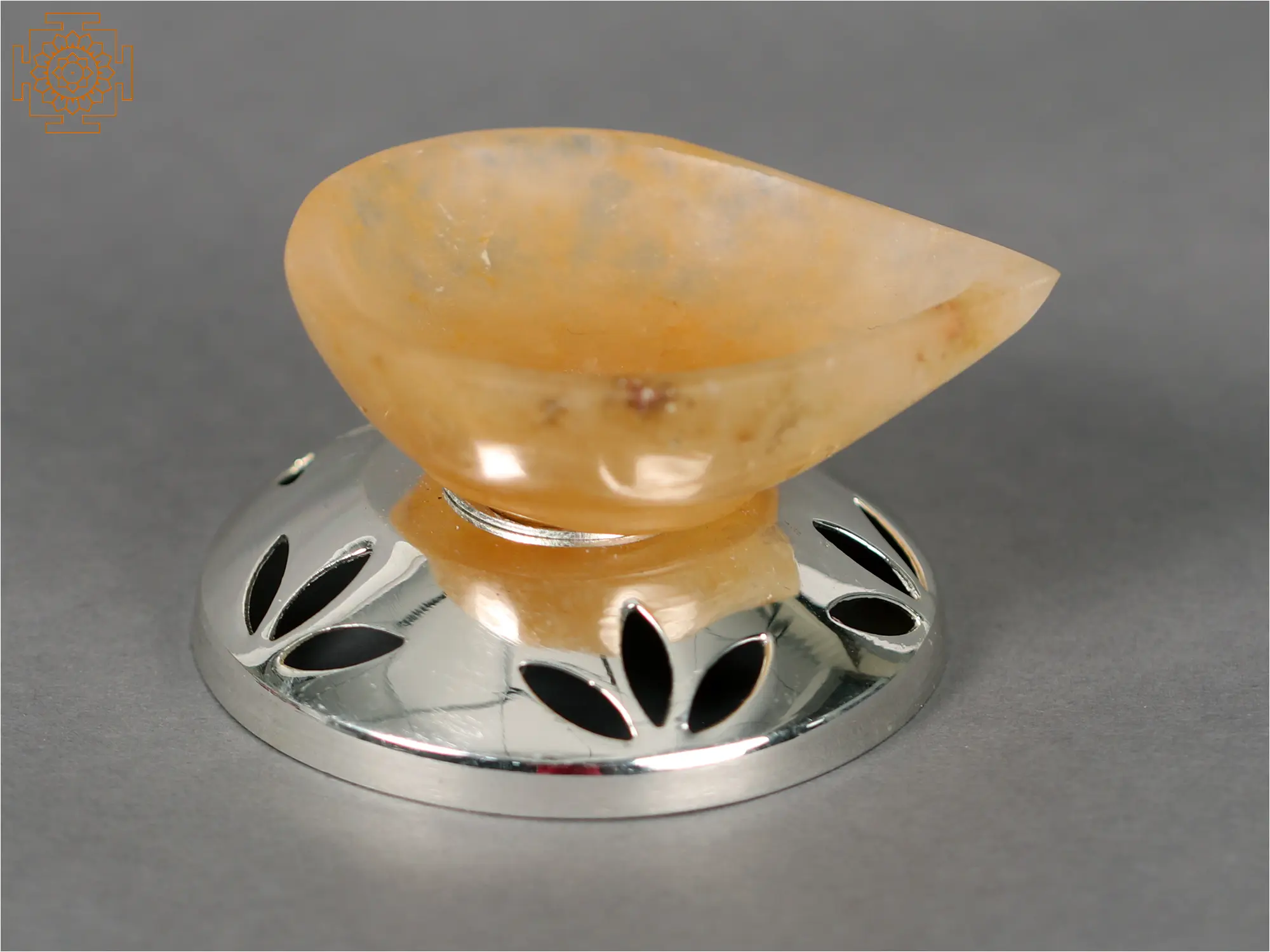 This black gemstone Diya with a silver base has an ethereal light that is both eye-catching and heart-warming. This magnificent Diya mixes beauty and spirituality in a seamless manner. The Diya's base is painstakingly made from .999 pure silver and shines with brilliant brilliance. The focal point is a mesmerizing black gemstone chosen for its immaculate beauty and relaxing vibe. When lit, the Diya casts a soft and serene glow, creating a relaxing atmosphere. This piece of ritual utility serves as a symbol of purity and divine radiance, making it ideal for auspicious occasions or tranquil periods of introspection.
