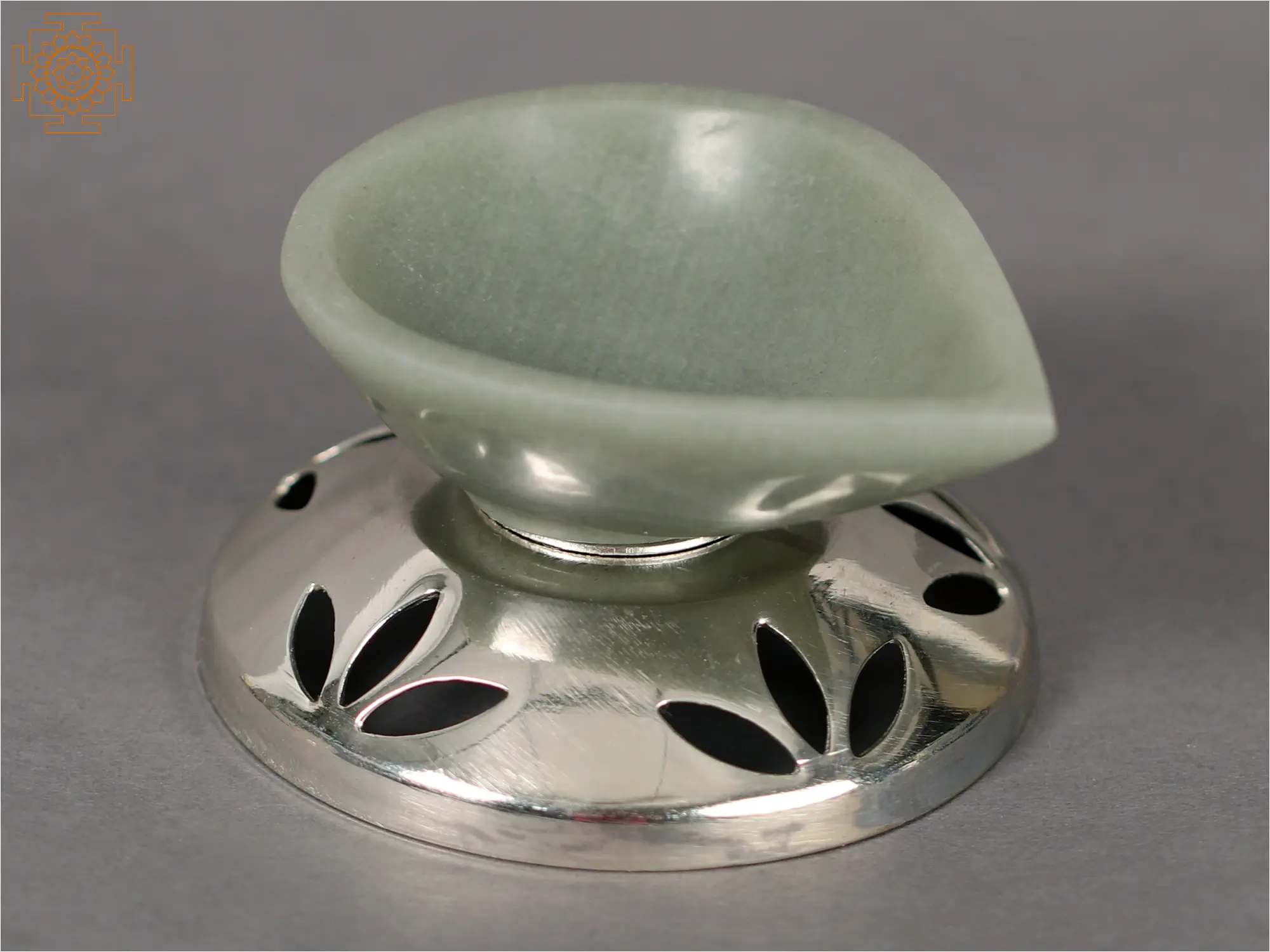 3" Small Gemstone Designer Diya with Silver Plated Base