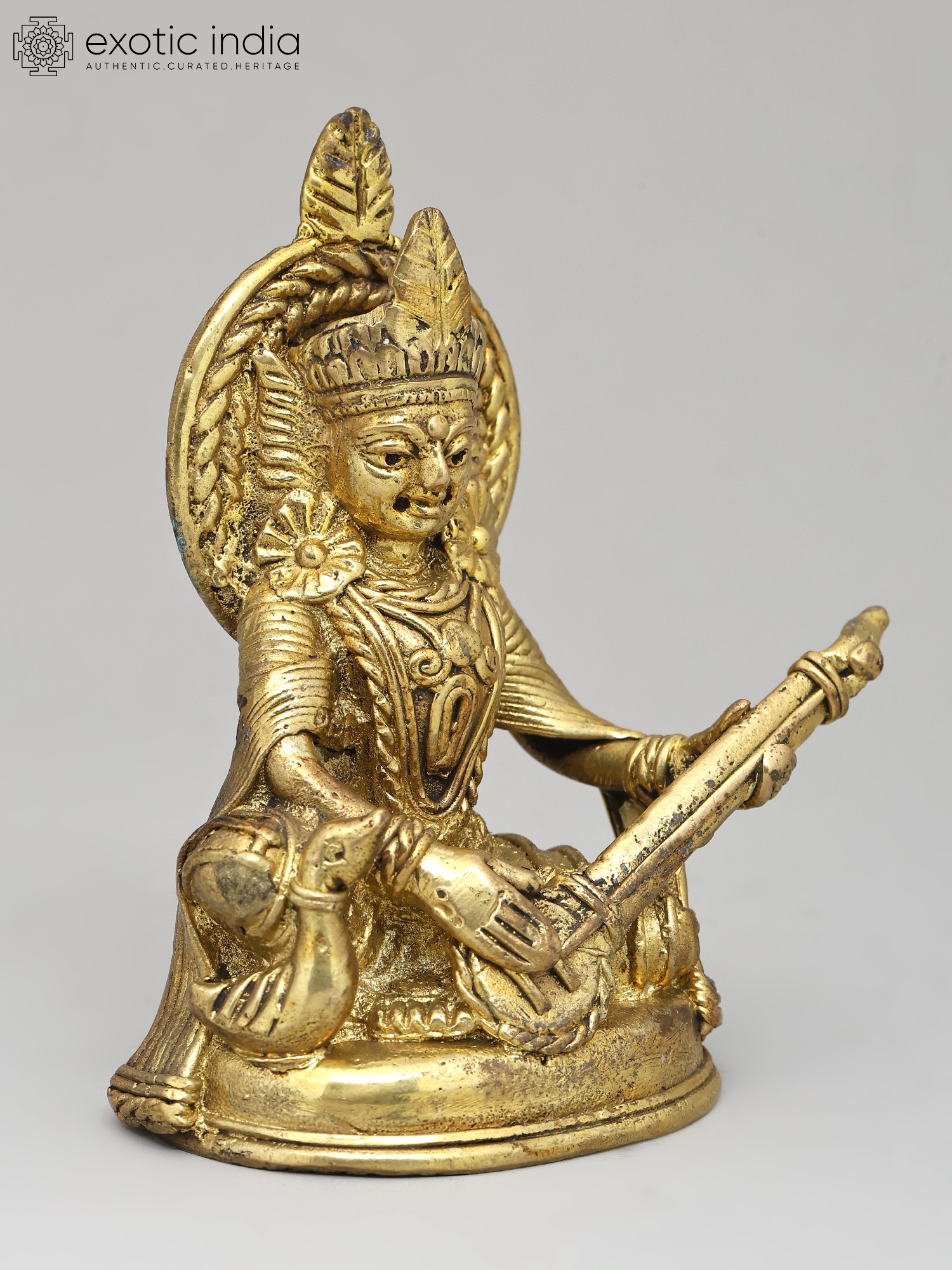 11" Goddess Saraswati Brass Statue | Handmade | Made In India