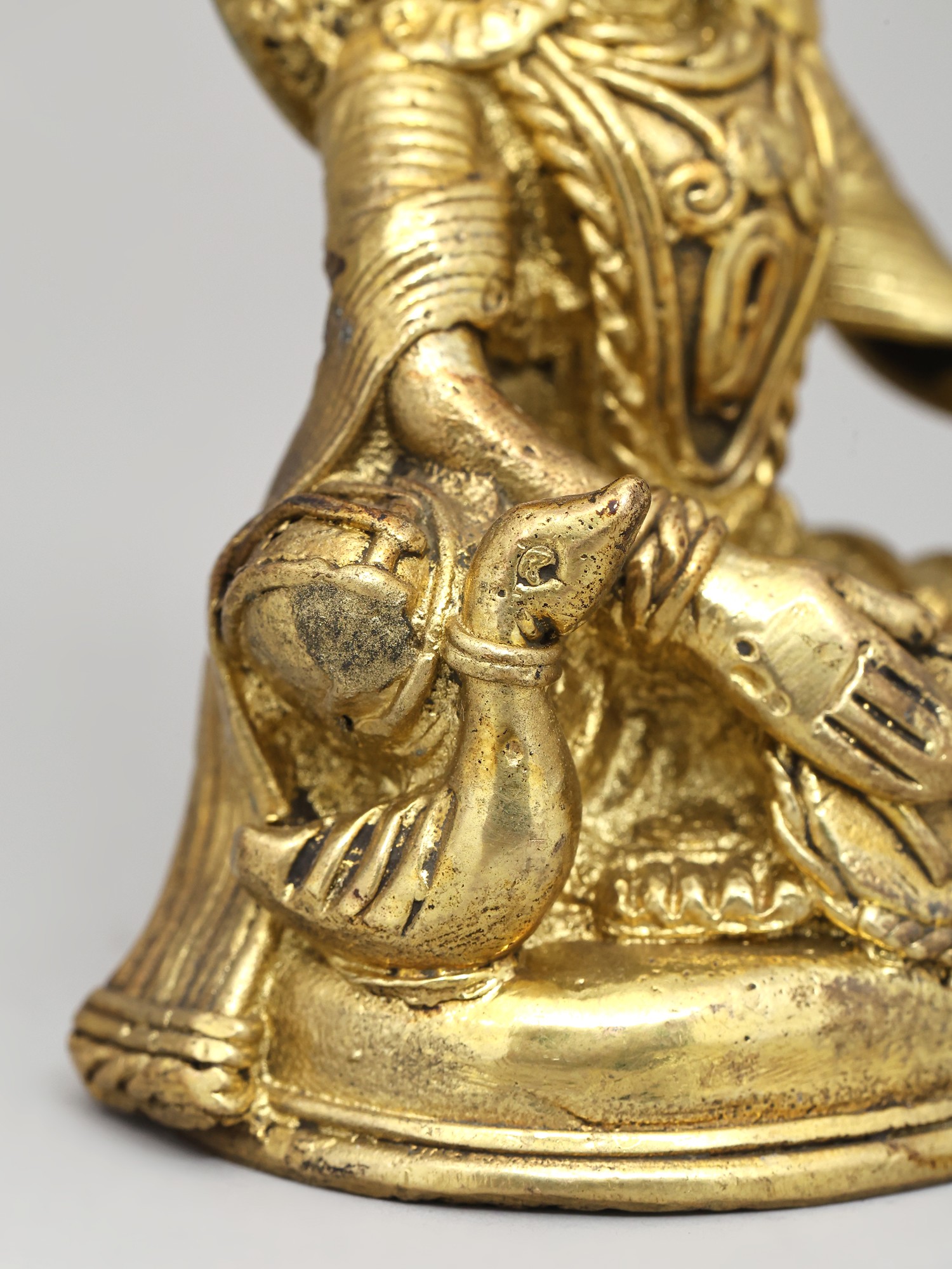 13" Goddess Saraswati Seated on Wooden Pedestal | Handmade Brass Idol
