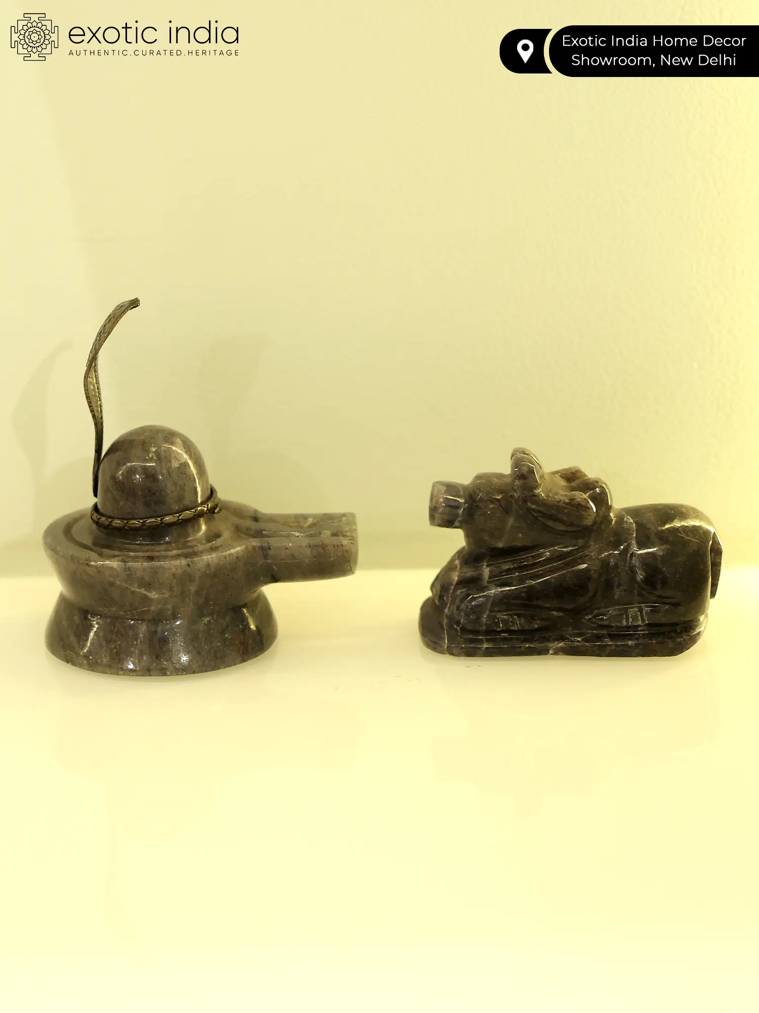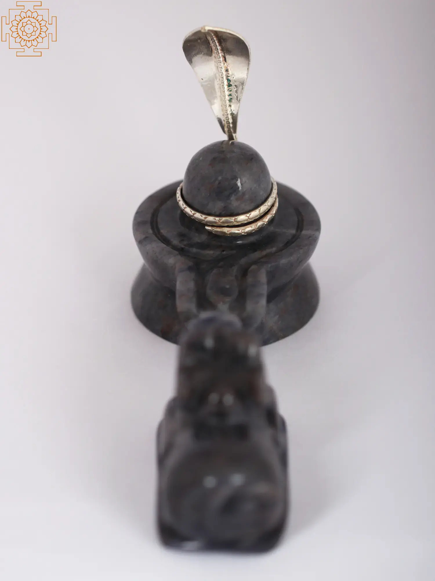 3" Small Blue Quartz Gemstone Nandi - Shivalinga with .999 Silver Protecting Sheshnag