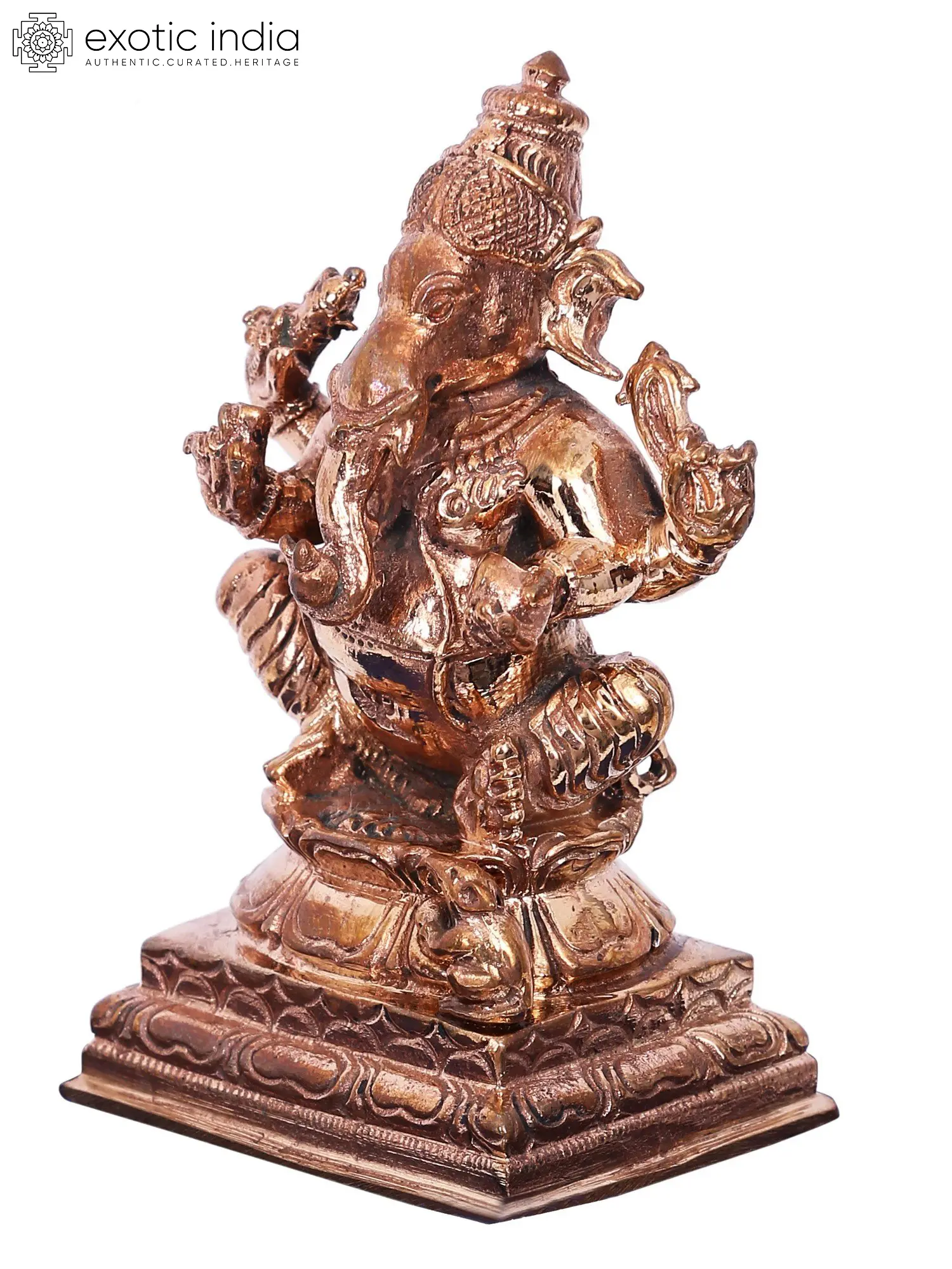 3" Small Ganesha Idol Sitting on High Pedestal | Handmade