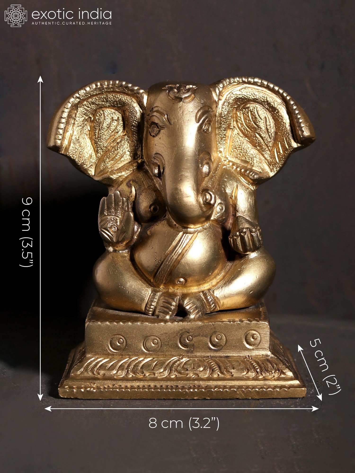 3" Small Lord Ganesha with Large Ears | Hoysala Art | Bronze Statue