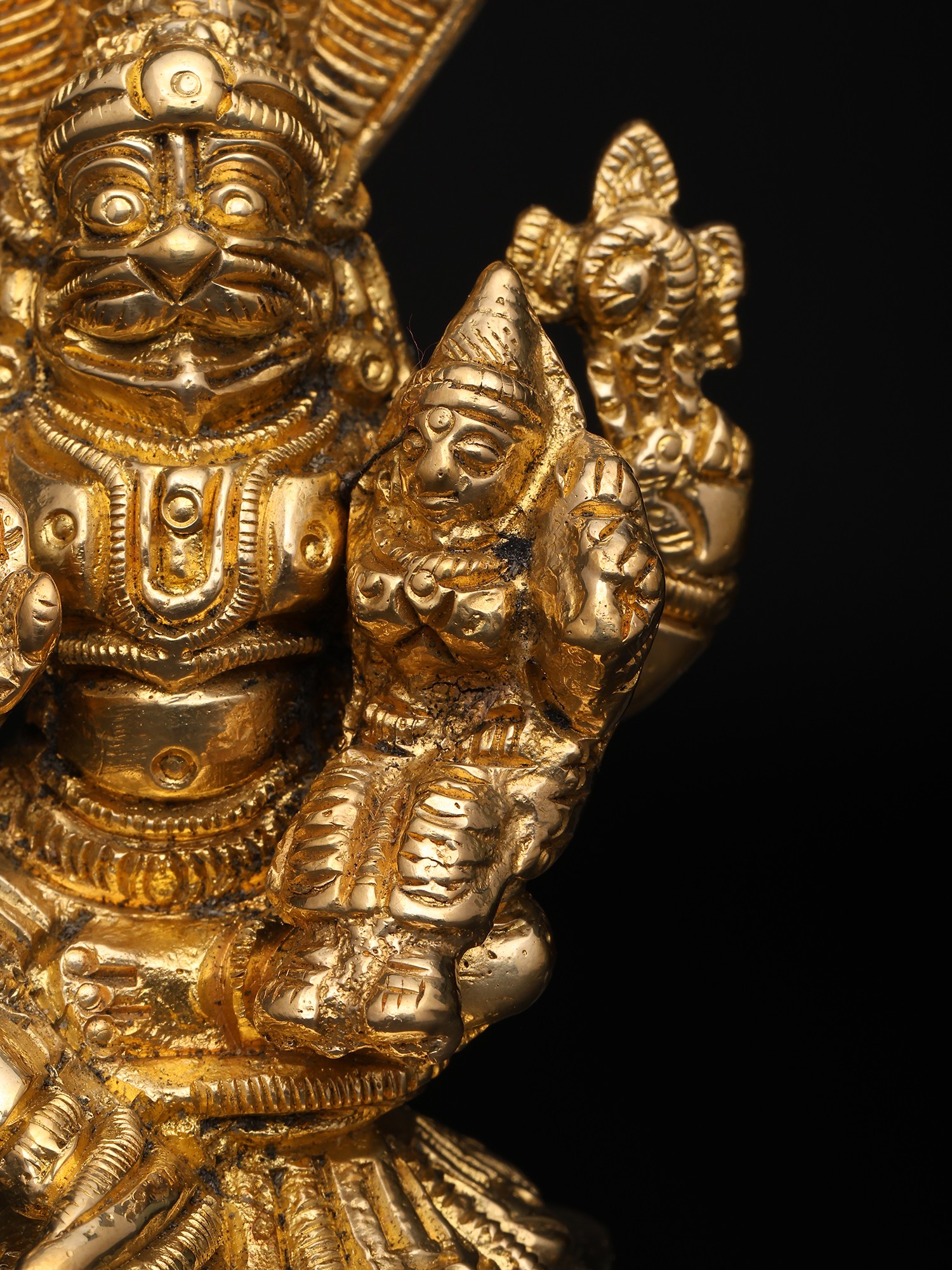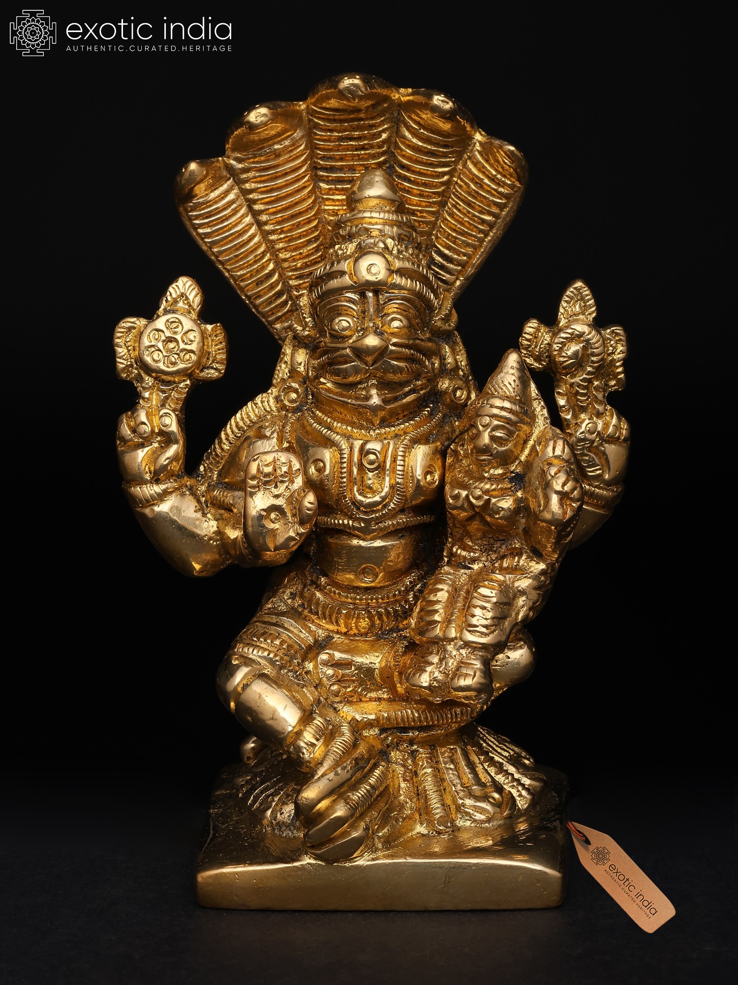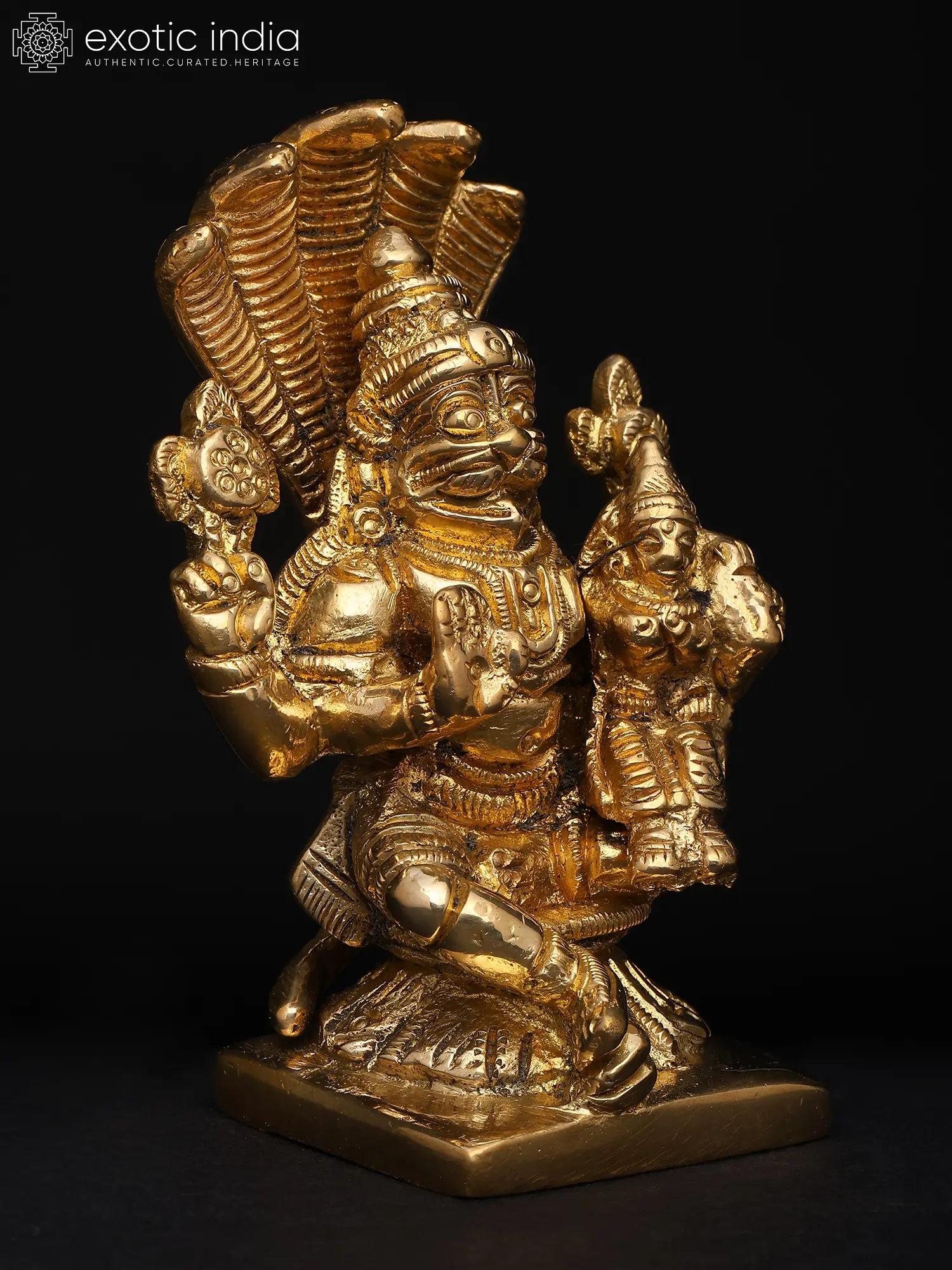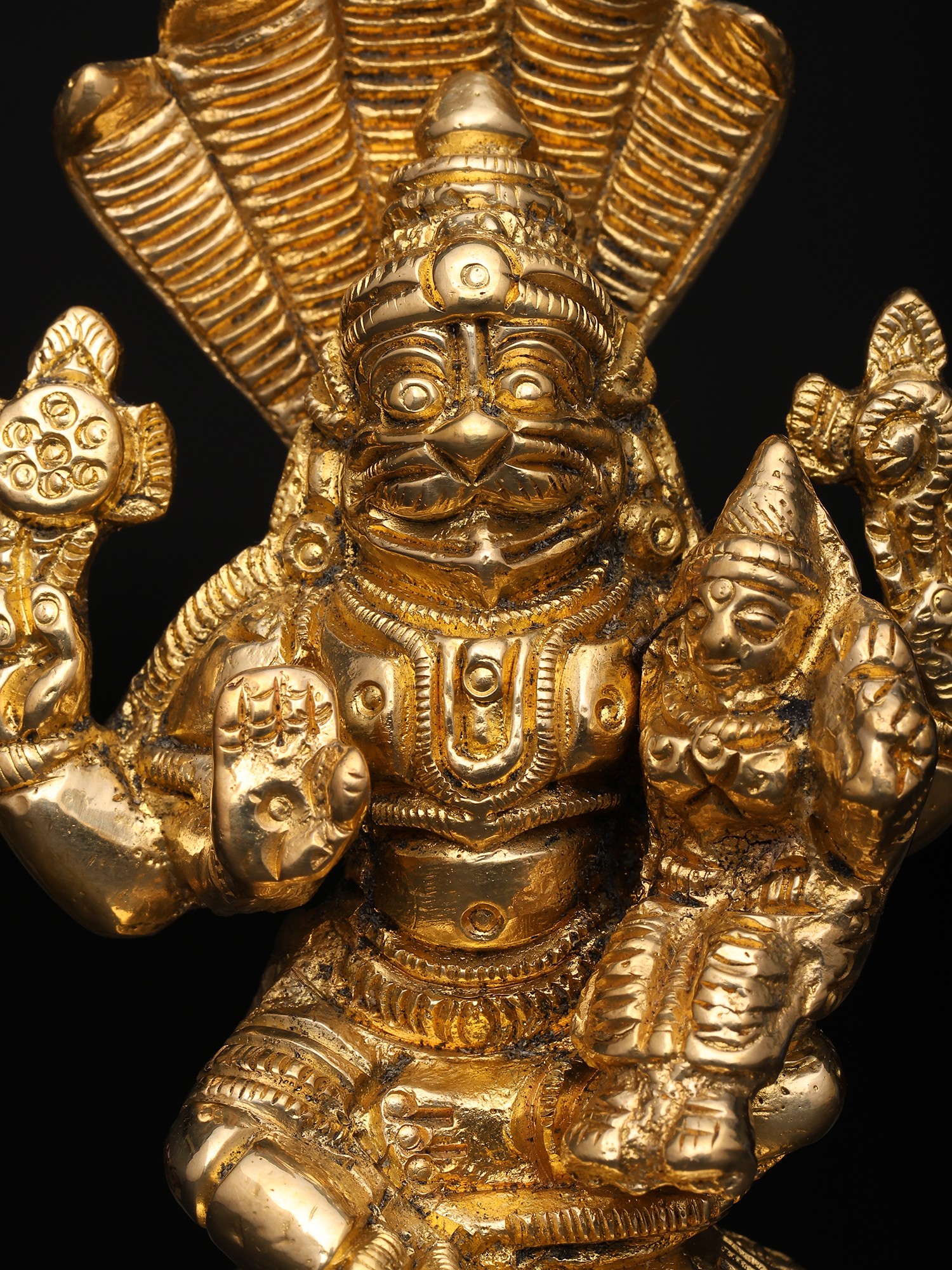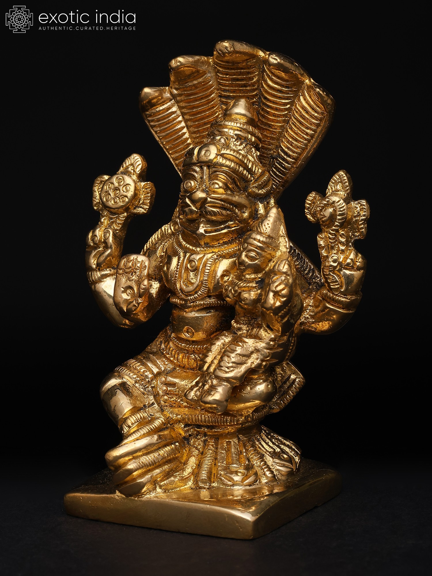 3" Small Size Narasimha and Lakshmi with Sheshanaga Statue in Brass | Handmade