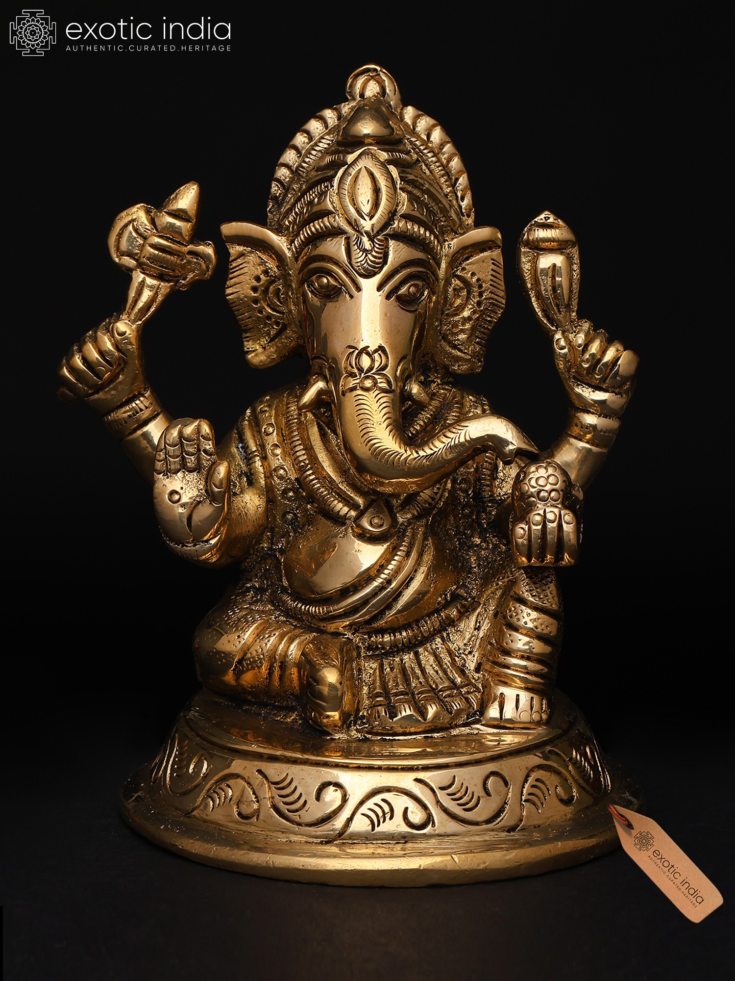 18" Lord Ganesha Statue on a Swing with Kirtimukha atop in Brass | Handmade | Made in India