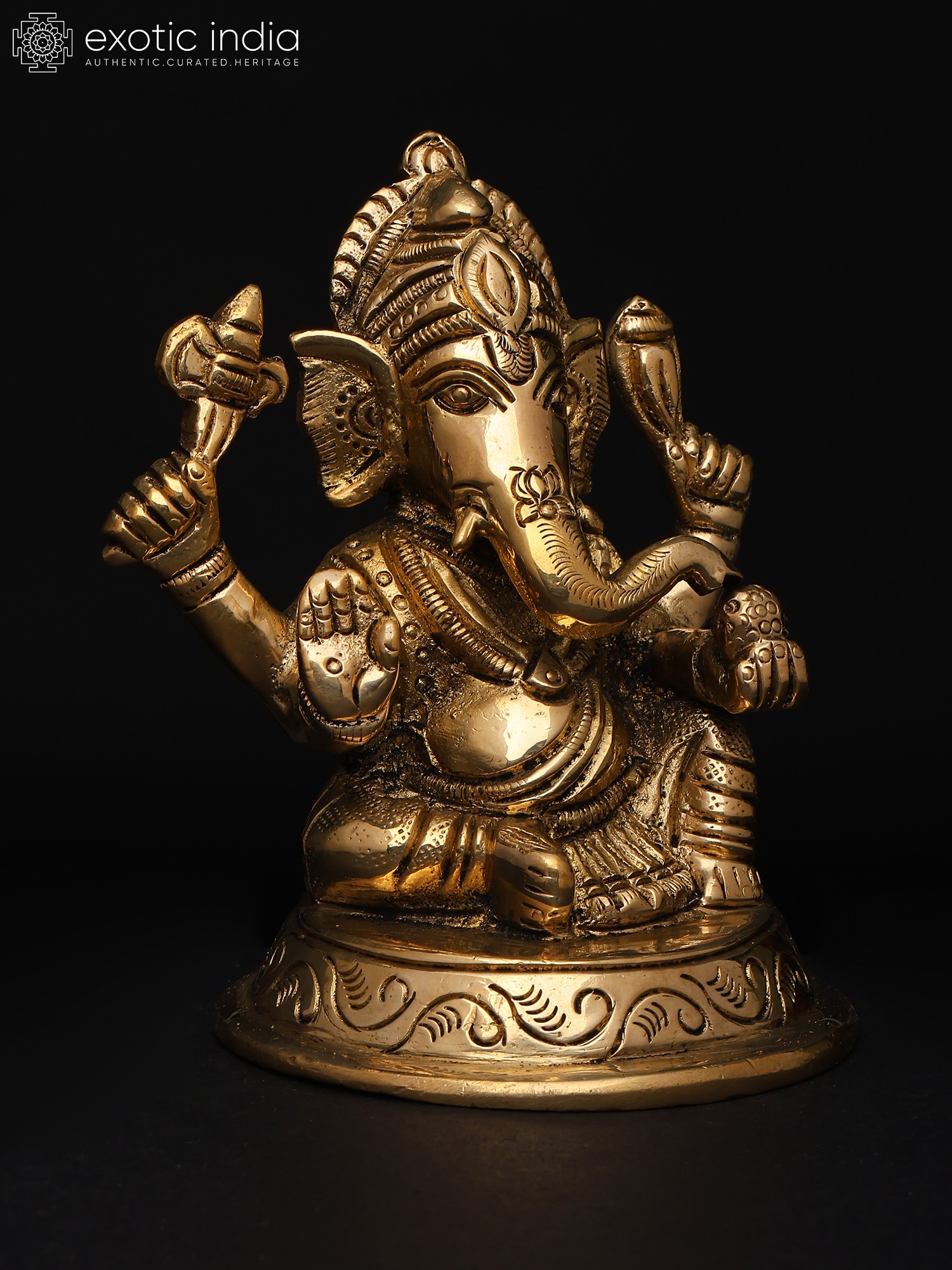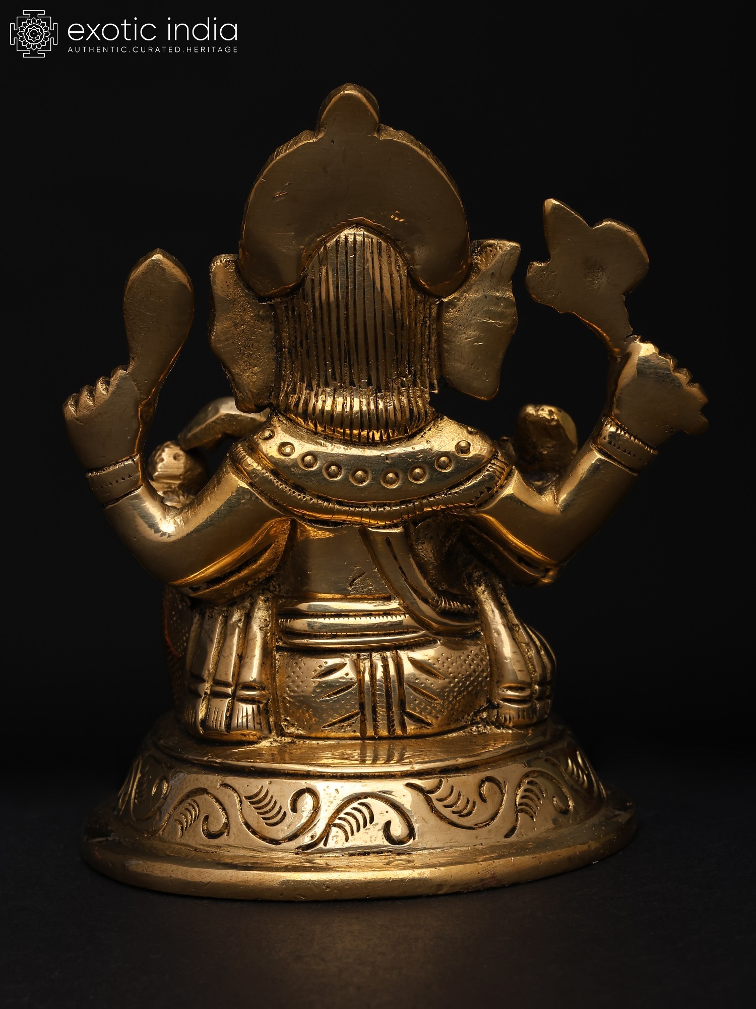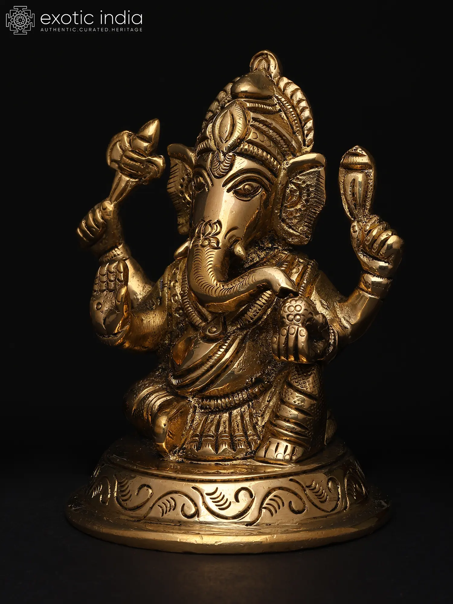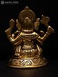 22" Sitting Chaturbhuja Lord Ganesha in Blessing Gesture | Brass Statue with Inlay Work