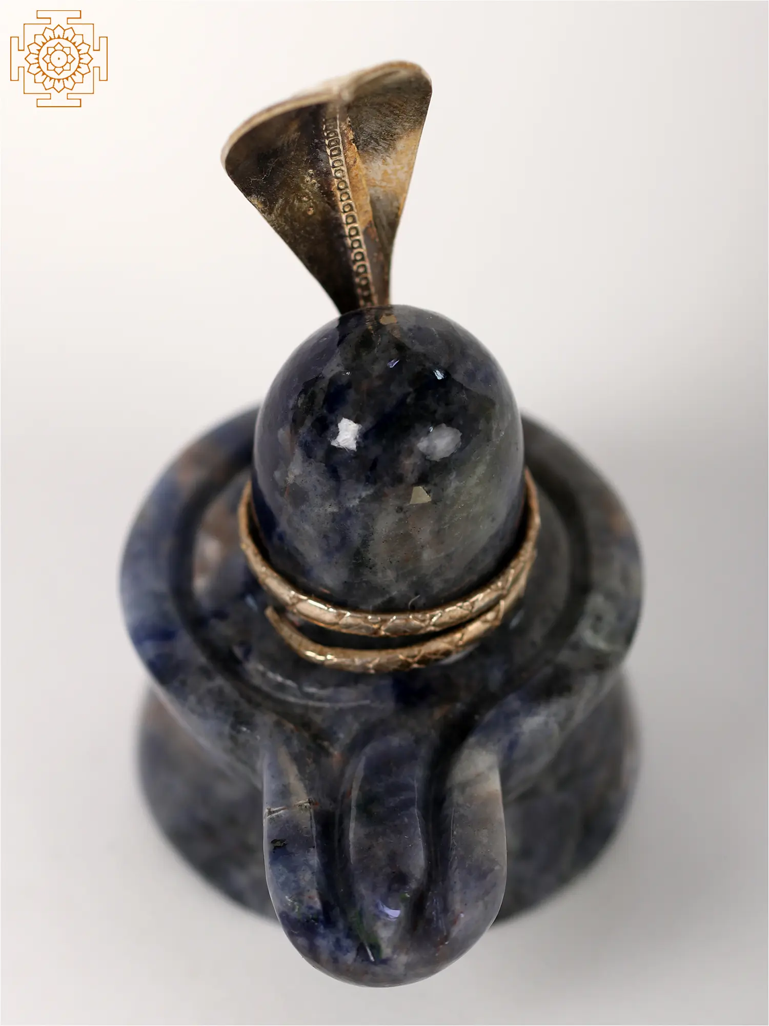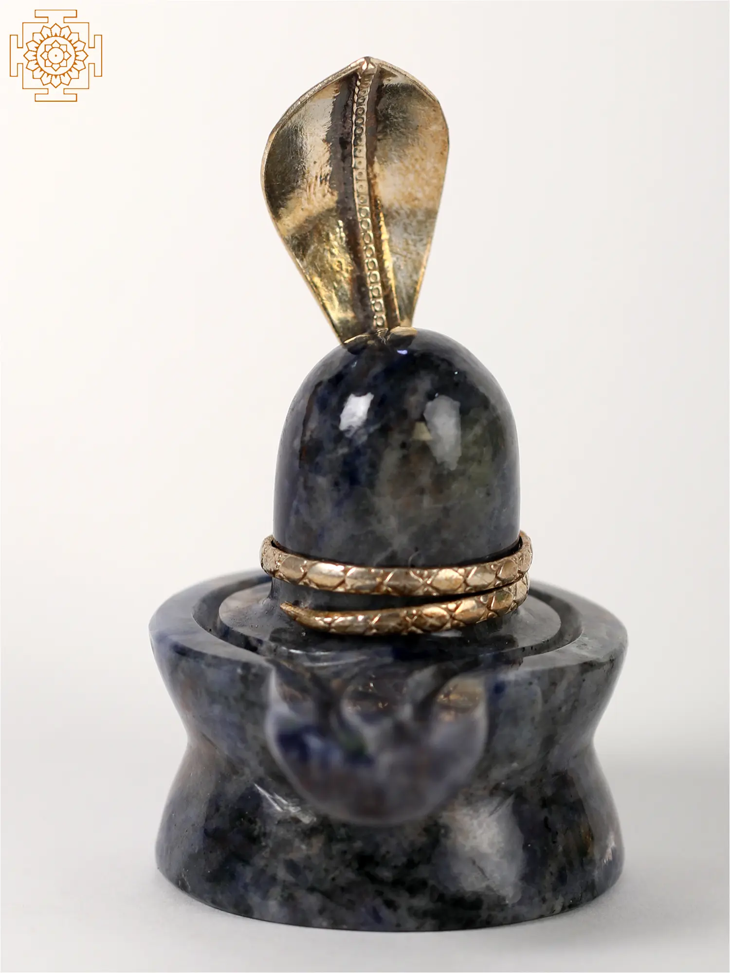 Shivling with a brass snake head is a sacred symbol, signifying “Lord Shiva”, the deity of destruction and transformation. This iconic representation combines the “Lingam”, representing Shiva’s divine energy, with a serpent’s head, symbolising his mastery over time and death. Devotees believe that worshipping this unique idol brings blessings of protection, rejuvenation, and spiritual awakening. This one-of-a-kind combination of Natural Blue Gemstone and Metalwork results in a stunning and potent spiritual artefact that is perfect for home altars or meditation spaces.