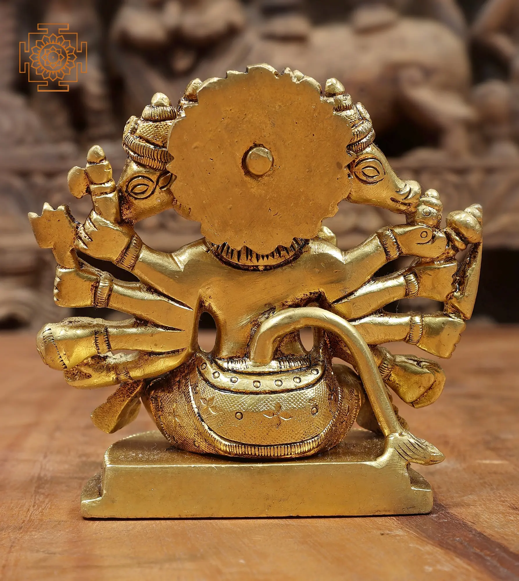 The Panchmukhi Hanuman is revered for his five faces, each representing a different aspect of his divine persona. The central face, that of Lord Hanuman, symbolises unwavering devotion. To his right, the face of Lord Narasimha embodies the fearless courage to confront any adversity. On his left, the face of Lord Garuda signifies swift action and flight, granting the ability to overcome obstacles with grace. The face of Lord Varaha, situated above, presents the power to dive deep into the unknown realms of life, while the face of Lord Hayagriva, below, represents wisdom and intellect.