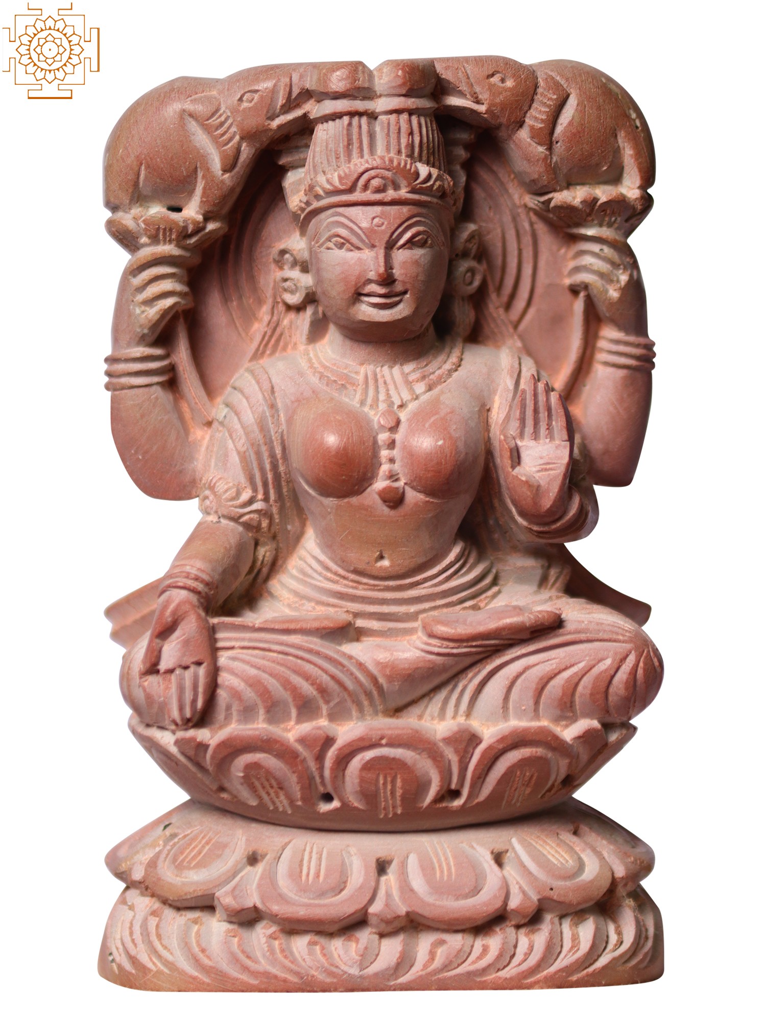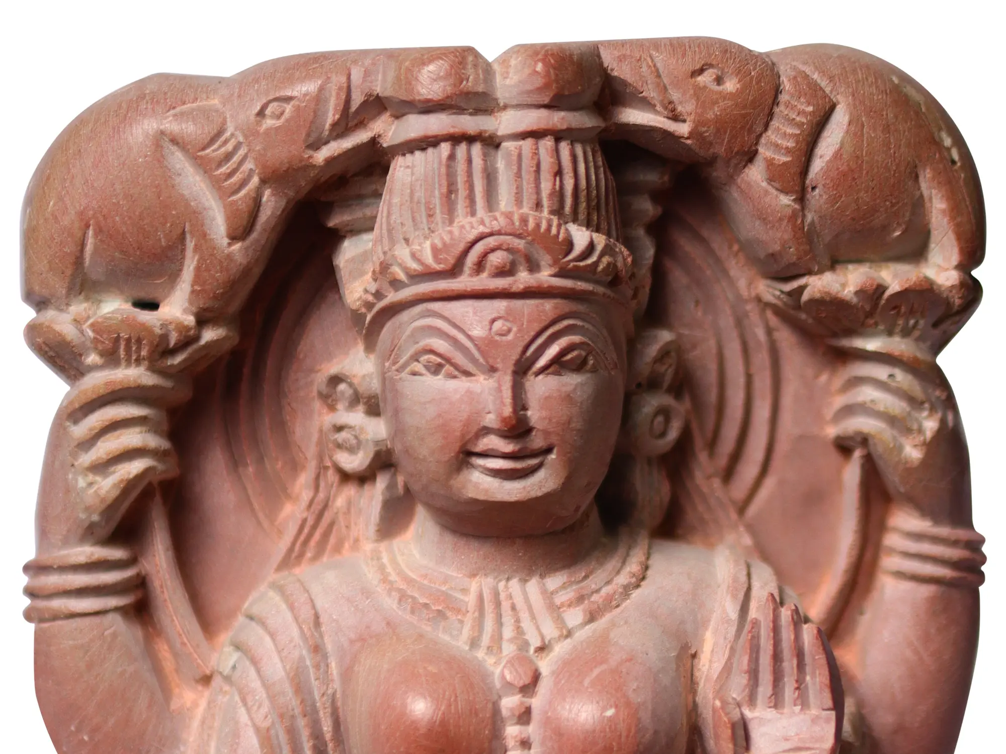 Carved from a beautiful pink stone, this figurine possesses a unique earthy charm. The subtle variations in the stone's hue add depth and character to the artwork. The intricate carving is evident in every detail, from the delicate folds of her garments to the fine features of her face and the majestic forms of the elephants. The artistry of Odisha, a region known for its rich tradition of stone carving, is beautifully showcased in this piece. Each stroke of the chisel has brought forth the divine essence of the Goddess, creating a timeless artifact that will be cherished for generations. This statue is not merely an object of devotion but a testament to the enduring artistry and spiritual heritage of India.